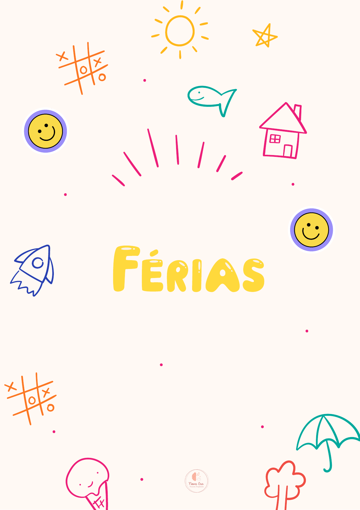 <p>"O maior recurso natural que temos são as</p><p>mentes de nossas crianças."</p><p>Walt Disney</p><p>@novaerarecursos</p><p>ATIVIDADES</p><p>DE</p><p>Qual coelhinho vai chegar nas</p><p>cenouras primeiro?</p><p>Hora do Jogo!Hora do Jogo!</p><p>Hora do Jogo!</p><p>Ajude o cãozinho a encontrar a saída.</p><p>E depois pinte.</p><p>LIGUE OS</p><p>PONTOS!</p><p>LIGUE OS</p><p>PONTOS!</p><p>E depois pinte.</p><p>2.</p><p>Encontre os erros</p><p>1.</p><p>Caça palavra dos monstrinhos das emoções.</p><p>Encontre cada emoção no quadro abaixo.</p><p>Encontre as palavras e descubra o que</p><p>precisa ter nas férias.</p><p>A M I G O S</p><p>F M S F E S</p><p>E F O I A</p><p>L</p><p>GO</p><p>Á</p><p>Ç</p><p>H</p><p>L</p><p>I</p><p>E</p><p>S</p><p>I</p><p>TL</p><p>US</p><p>O</p><p>Q</p><p>R</p><p>B</p><p>R</p><p>A</p><p>D</p><p>C</p><p>F</p><p>R</p><p>I JI O</p><p>D</p><p>E</p><p>H R</p><p>F</p><p>Ú J</p><p>L</p><p>O</p><p>A</p><p>E</p><p>A</p><p>A</p><p>D</p><p>A</p><p>D E</p><p>E</p><p>T</p><p>(A</p><p>m</p><p>ig</p><p>os</p><p>, f</p><p>el</p><p>ic</p><p>id</p><p>ad</p><p>e,</p><p>r</p><p>is</p><p>ad</p><p>a)</p><p>S</p><p>Baú do Tesouro</p><p>Escreva no pergaminho quais</p><p>são os seus tesouros.</p><p>O que é, o que é que sobe quando a chuva desce?</p><p>Desafios</p><p>O que é, o que é que quando esquenta pula no ar, estoura e vira do avesso?</p><p>O que é, o que é que só anda com as pernas atrás da orelha?</p><p>O que é, o que é que só pode ser usado depois de quebrado?</p><p>Desafios</p><p>O que é, o que é que tem coroa, mas não é rei, tem espinho, mas não é rosa?</p><p>O que é, o que é que quanto mais seca, mais se molha?</p><p>CHEG</p><p>ARAM AS ESPERADAS</p><p>CHECKLIST DAS FÉRIAS</p><p>Descansar</p><p>Organizar os brinquedos</p><p>Assistir um filme</p><p>Ler um livro (com ajuda da família se necessário).</p><p>Brincar bastante</p><p>Fazer elogios para os familiares</p><p>Ajudar em alguma tarefa em casa</p><p>Se divertir</p><p>Dançar</p><p>O que mais não pode faltar nas suas férias?</p>