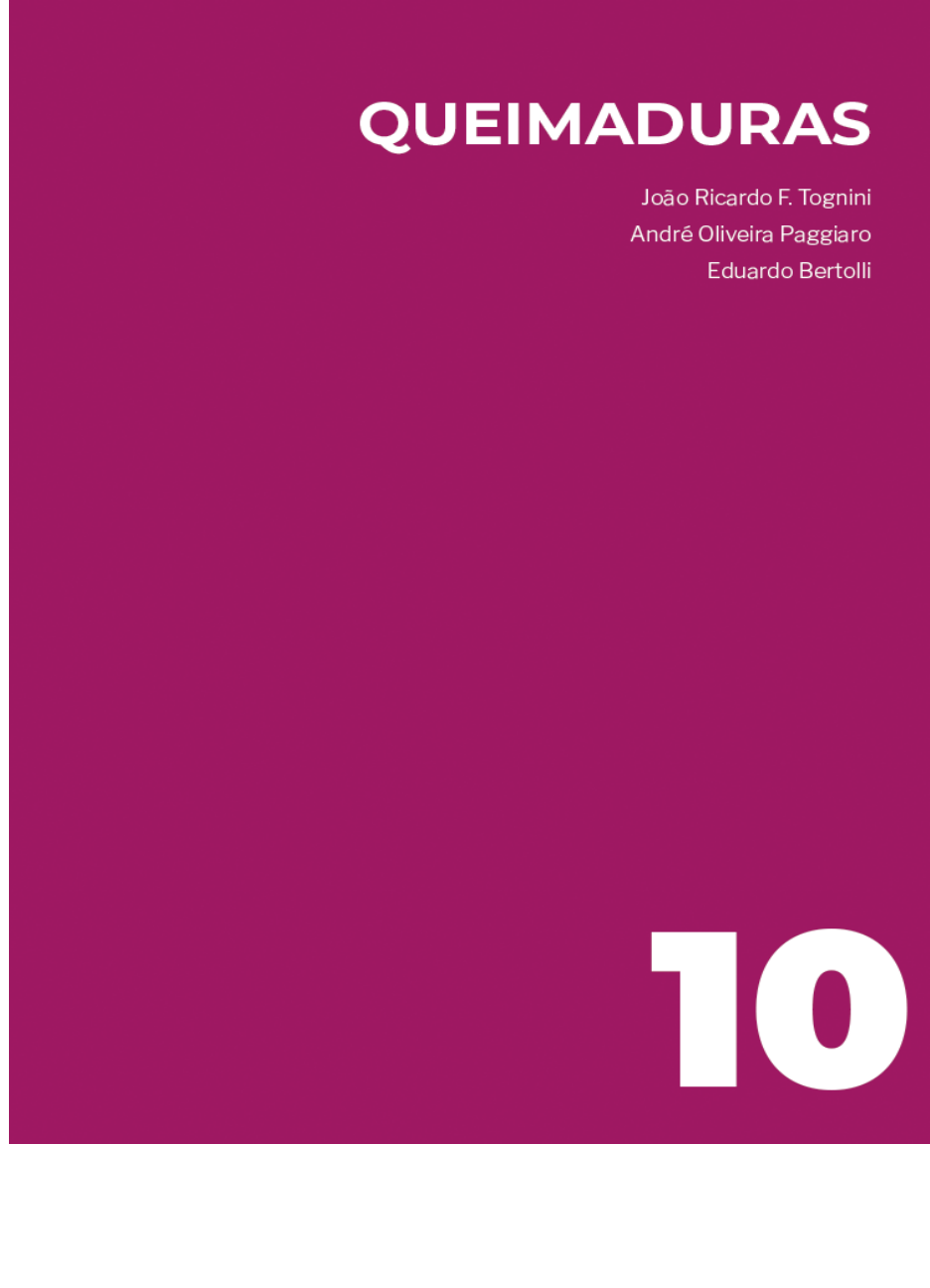 <p>Como fazer o</p><p>atendimento primário no</p><p>atendimento de uma</p><p>vítima queimada?</p><p>10.1 INTRODUÇÃO</p><p>As queimaduras são causas frequentes de trauma em todas as</p><p>idades, mas são mais comuns nos extremos de idade, com</p><p>liberação de mediadores celulares e humorais, que determinam</p><p>alteração das permeabilidades capilar, metabólica e imunológica,</p><p>levando a distúrbio hidroeletrolítico, desnutrição e infecção.</p><p>Podem ser causadas por uma série de agentes físicos, químicos,</p><p>radiação e eletricidade. Temperaturas muito baixas também</p><p>podem causar lesões semelhantes a queimaduras. Na população</p><p>adulta, são mais encontradas em homens, principalmente em</p><p>razão dos acidentes de trabalho.</p><p>10.2 CLASSIFICAÇÃO</p><p>A principal classificação utilizada para as queimaduras considera</p><p>a profundidade da lesão. São consideradas de espessura parcial</p><p>aquelas em que há preservação da integridade de alguma porção</p><p>das camadas da pele e de espessura total quando todas essas</p><p>camadas estão lesadas (Figura 10.2).</p><p>Figura 10.1 - Estrutura da pele</p><p>Fonte: adaptado de Anton Nalivayko.</p><p>Figura 10.2 - Camadas da pele</p><p>Legenda: (A) camada superficial; (B) camada média; (C) camada profunda; (D)</p><p>queimadura de primeiro grau; (E) queimadura de segundo grau; (F) queimadura</p><p>de terceiro grau.</p><p>Fonte: Claudio Van Erven Ripinskas.</p><p>Quadro 10.1 - Graus de queimadura</p><p>Fonte: Primeiro atendimento em queimaduras: a abordagem do dermatologista,</p><p>2005.</p><p>Figura 10.3 - Graus de queimadura</p><p>Fonte: Claudio Van Erven Ripinskas.</p><p>As lesões de queimaduras causadas pelo calor são divididas em</p><p>zonas:</p><p>▶ Coagulação central: são tecidos do centro da queimadura que</p><p>estão inviáveis, com lesão irreversível;</p><p>▶ Estase intermediária: caracteriza-se, inicialmente, por dilatação</p><p>dos vasos sanguíneos e difusão capilar. Depois de 24 a 48 horas,</p><p>os capilares dilatados são obstruídos, resultando na conversão</p><p>desses tecidos na zona de coagulação, cuja lesão pode ser</p><p>reversível com tratamento apropriado: resfriamento, reposição de</p><p>líquidos e cuidados intensivos;</p><p>▶ Hiperemia externa: é formada por tecidos edemaciados viáveis.</p><p>10.3 FISIOPATOLOGIA DAS LESÕES</p><p>TÉRMICAS</p><p>A lesão térmica exerce efeitos deletérios sobre os diferentes</p><p>sistemas do organismo, sendo proporcional à extensão da</p><p>queimadura (Figura 10.4). Ocorrem alterações bifásicas na função</p><p>orgânica, com hipofunção inicial e hiperfunção posterior, exceto</p><p>no sistema imune, em que a sequência é inversa. As alterações</p><p>metabólicas e as perdas líquidas nas queimaduras de segundo</p><p>grau profundas são as mesmas das queimaduras de terceiro grau.</p><p>Figura 10.4 - Fisiopatologia das lesões térmicas</p><p>Fonte: elaborado pelo autor.</p><p>10.3.1 Alterações hemodinâmicas</p><p>Logo após a lesão térmica, predominam as alterações no sistema</p><p>cardiovascular. Com a liberação de substâncias vasoativas que</p><p>partem da área traumatizada, há modificação nas relações de</p><p>pressão transvasculares com a permeabilidade capilar,</p><p>promovendo a perda de líquidos e proteínas para o extravascular,</p><p>com consequente hipotensão. Clinicamente, esse fato se</p><p>evidencia pelo edema, que costuma atingir o seu pico entre 36 e</p><p>48 horas. Inicialmente, o débito cardíaco diminui</p><p>proporcionalmente ao tamanho da queimadura em associação ao</p><p>aumento da resistência vascular periférica.</p><p>Se não for realizada reposição hídrica adequada após a lesão</p><p>térmica, o quadro de desidratação e perda de líquido para o</p><p>terceiro espaço aumenta o risco de choque hipovolêmico,</p><p>podendo ser agravado pela perda contínua de água pela</p><p>superfície queimada, além de levar à redução da perfusão renal,</p><p>com evolução para oligúria e insuficiência renal aguda.</p><p>10.3.2 Alterações hematológicas</p><p>Além da perda de plasma inicial, observa-se destruição imediata</p><p>de eritrócitos em proporção direta com a extensão da</p><p>queimadura. Há uma perda contínua variável, entre 8 e 12% da</p><p>massa eritrocitária por dia, de acordo com o efeito da lise de</p><p>células lesadas pelo calor e pela trombose microvascular nas</p><p>áreas de tecido lesado que sofreram necrose. Outro fator</p><p>atribuído à redução dos eritrócitos é o desvio do metabolismo</p><p>proteico, favorecendo a construção de uma nova pele, em</p><p>detrimento da formação de novas hemácias.</p><p>10.3.3 Alterações endócrinas</p><p>No início, há um padrão endócrino-catabólico caracterizado por</p><p>níveis elevados de glucagon, cortisol e catecolaminas e por níveis</p><p>diminuídos de insulina e tri-iodotironina (T3). Após a hidratação,</p><p>há inversão hormonal e aumento do anabolismo.</p><p>10.3.4 Alterações gastrintestinais</p><p>No início da lesão, o trato gastrintestinal responde com quadro de</p><p>íleo paralítico, principalmente com queimaduras de mais de 25%</p><p>da Superfície Corpórea Queimada (SCQ). Após o terceiro e até o</p><p>quinto dia, há retorno da motilidade gastrintestinal.</p><p>Um risco comum do grande queimado é o desenvolvimento de</p><p>lesões das mucosas gástrica e duodenal, secundárias à isquemia</p><p>focal, com risco de formação de úlceras de Curling, além da</p><p>probabilidade de hemorragia digestiva.</p><p>10.3.5 Alterações imunológicas</p><p>Atualmente, a principal causa de morte do paciente grande</p><p>queimado são as infecções. Além da perda da barreira mecânica</p><p>natural da pele, a presença de tecido necrótico favorece a</p><p>colonização por micro-organismos e as secreções do exsudato</p><p>contêm det