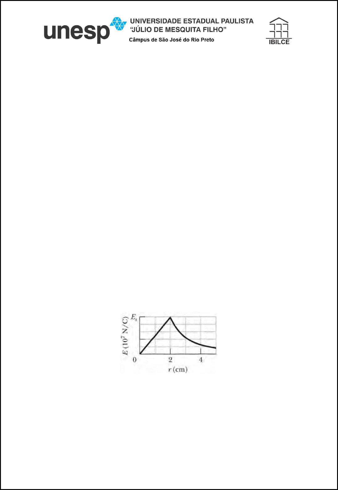 <p>1ª Lista de exercícios – Física II – Turma da Química</p><p>Capítulo 23 – Lei de Gauss</p><p>7) Uma carga pontual de 1,8 μC está no centro de uma superfície gaussiana cúbica de 55 cm de aresta. Qual é o</p><p>fluxo elétrico através da superfície?</p><p>13) Observa-se experimentalmente que o campo elétrico em uma certa região da atmosfera terrestre aponta</p><p>verticalmente para baixo. A uma altitude de 300 m, o campo tem um módulo de 60,0 N/C. A uma altitude de</p><p>200 m, o módulo é 100 N/C. Determine a carga em excesso contida em um cubo com 100 m de aresta e faces</p><p>horizontais a 200 e 300 m de altitude.</p><p>17) Uma esfera condutora uniformemente carregada com 1,2 m de diâmetro possui uma densidade superficial</p><p>de cargas 8,1 μC/m2. (a) Determine a carga da esfera. (b) Determine o fluxo elétrico através da superfície da</p><p>esfera.</p><p>18) O campo elétrico nas vizinhanças do tambor carregado de uma fotocopiadora tem um módulo E de 2,3 X</p><p>105 N/C. Qual é a densidade superficial de cargas, supondo que o tambor é feito de material condutor?</p><p>44) A Fig. 23-48 mostra o módulo do campo elétrico do lado de dentro e do lado de fora de uma esfera com</p><p>uma distribuição uniforme de cargas positivas em função da distância do centro da esfera. A escala do eixo</p><p>vertical é definida por Es = 5,0 X 107 N/C. Qual é a carga da esfera?</p><p>46) Uma carga pontual produz um fluxo elétrico de -750 N.m2/C através de uma superfície esférica gaussiana de</p><p>10,0 cm de raio com centro na carga. (a) Se o raio da superfície gaussiana é multiplicado por dois, qual é o novo</p><p>valor do fluxo? (b) Qual é o valor da carga pontual?</p><p>58) Uma placa infinita de espessura insignificante, situada no plano xy, possui uma densidade superficial de</p><p>cargas uniforme p = 8,0 nC/m2 . Determine o fluxo elétrico através de uma esfera gaussiana com centro na</p><p>origem e 5,0 cm de raio.</p>