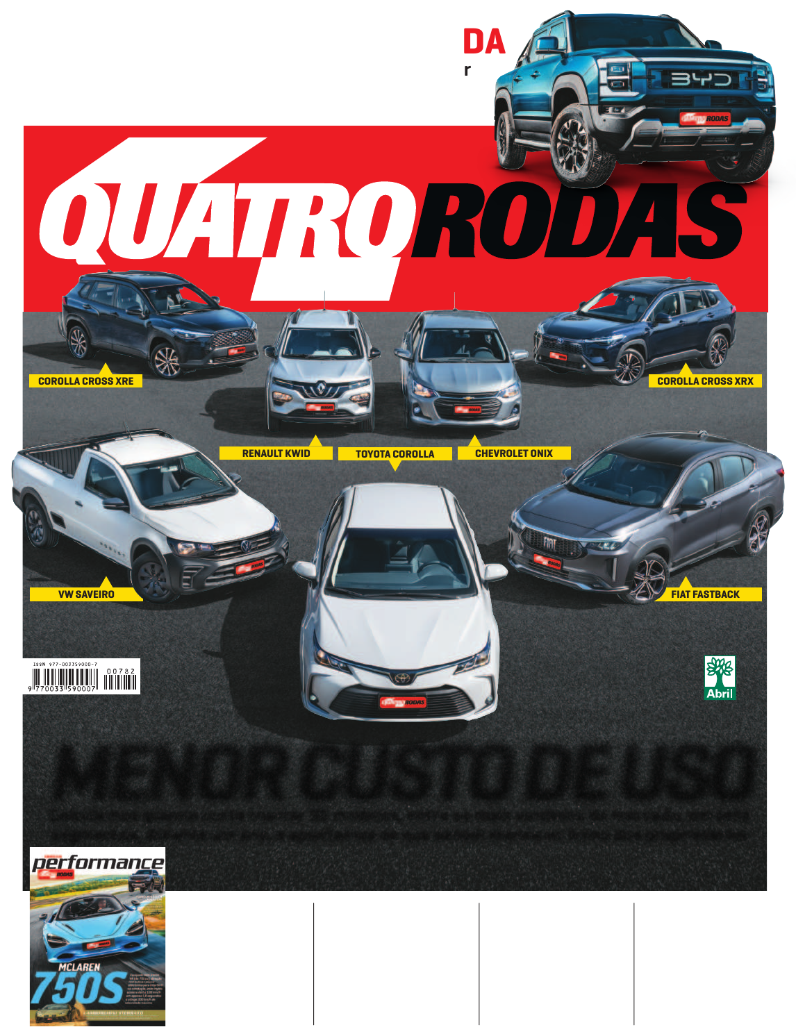 <p>PORSCHE</p><p>MACAN</p><p>GWM ORA 03 x</p><p>HYUNDAI CRETA</p><p>Três propostas de</p><p>esportividade</p><p>extrema: McLaren</p><p>750S, Lamborghini</p><p>Sterrato e picape</p><p>Ford Ranger Raptor</p><p>Mal chegaram, as</p><p>marcas chinesas (são</p><p>duas) já falam em</p><p>converter seu motor</p><p>("mais eficiente do</p><p>mundo") em flex</p><p>Na nova geração, o</p><p>SUV se tornou elétrico.</p><p>Mas, no Brasil, ela será</p><p>oferecida junto com a</p><p>anterior, equipada com</p><p>motor V6 biturbo</p><p>Pelo mesmo preço,</p><p>você ficaria com</p><p>o elétrico ou com o</p><p>carro a combustão.</p><p>Veja como foi esse</p><p>comparativo</p><p>ESPECIAL</p><p>PERFORMANCE</p><p>OMODA &</p><p>JAECOO</p><p>Com soluções técnicas originais, BYD Shark quer entrar</p><p>em um dos segmentos mais disputados, bem servidos</p><p>e com compradores mais fiéis de nosso mercado</p><p>NOVA PICAPE CHINESA HÍBRIDA</p><p>MENOR CUSTO DE USO</p><p>Calculamos quanto custa manter 35 modelos, entre os mais vendidos do mercado, em sete</p><p>segmentos, durante um ano, e apontamos os que pesam menos no bolso dos proprietários</p><p>FIAT FASTBACKVW SAVEIRO</p><p>CHEVROLET ONIXRENAULT KWID TOYOTA COROLLA</p><p>COROLLA CROSS XRXCOROLLA CROSS XRE</p><p>INÊS 249</p><p>MENOR CUSTO DE USO</p><p>34</p><p>BYD SHARK</p><p>24</p><p>SUMÁRIO</p><p>4 QUATRO RODAS JUNHO</p><p>BYD SHARK</p><p>24 Nova picape híbrida traz</p><p>soluções técnicas originais.</p><p>Mas o design remete à linha</p><p>Ford</p><p>ORA 03 x HYUNDAI</p><p>CRETA</p><p>28 São diferentes, além de</p><p>um ser elétrico e o outro a</p><p>combustão. Mas custam o</p><p>mesmo</p><p>MENOR CUSTO DE USO</p><p>34 Já fez as contas de</p><p>quanto fica manter as</p><p>despesas que seu carro gera?</p><p>Nós fizemos</p><p>ESPECIAL</p><p>PERFORMANCE</p><p>43 Aceleramos dois</p><p>esportivos, McLaren 750S e</p><p>Lamborghini Sterrato, e a</p><p>picape Ranger Raptor</p><p>OMODA & JAECOO</p><p>56 Os nomes são estranhos.</p><p>Mas essas marcas nasceram</p><p>para mercados como o nosso</p><p>TOYOTA HILUX SRX</p><p>62 Nova versão teve a</p><p>dinâmica aperfeiçoada e</p><p>recebeu retoques no visual</p><p>VW SAVEIRO ROBUST</p><p>66 Descobrimos que, além de</p><p>preço, versão básica tem maior</p><p>robustez (como o nome diz)</p><p>SEÇÕES</p><p>05 Carta ao Leitor | 08 Viva-Voz | 14 Via Expressa | 23 Testes | 74 Clássicos</p><p>76 Longa Duração | 80 Auto-Serviço | 92 Tabela | 96 Opinião | 98 Top Ten</p><p>Edição 782 | Junho 2024 | www.quatrorodas.com.br</p><p>VW SAVEIRO ROBUST62 TOYOTA HILUX 66</p><p>GWM ORA 03 x HYUNDAI CRETA</p><p>28</p><p>ESPECIAL PERFORMANCE</p><p>OMODA & JAECOO</p><p>43</p><p>56</p><p>INÊS 249</p><p>JUNHO QUATRO RODAS 5</p><p>CARTA AO LEITOR</p><p>Paulo Campo Grande</p><p>Redator-chefe</p><p>pcg@abril.com.br</p><p>Paulo Campo Grande</p><p>Redator-chefe</p><p>pcg@abril.com.br</p><p>“O ÚLTIMO CARRO A SER</p><p>PRODUZIDO NO MUNDO</p><p>SERÁ UM ESPORTIVO.”</p><p>Não sei o que Ferdinand Porsche</p><p>pensava quando pronunciou</p><p>essa frase título desta Carta. Mas</p><p>penso que ele quis dizer que, vencidos</p><p>todos os argumentos a favor dos auto-</p><p>móveis, a última justificativa que res-</p><p>taria seria o desejo de se dirigir um es-</p><p>portivo. Um tipo de carro que não</p><p>precisa de prova racional para existir,</p><p>porque tem a mais poderosa alegação</p><p>a seu favor, que é o prazer que um es-</p><p>portivo pode proporcionar. E, sendo</p><p>um argumento sentimental, não pode</p><p>ser contestado pela razão.</p><p>Não que os outros carros não te-</p><p>nham esse atributo. Mas, nos esporti-</p><p>vos, as emoções são maiores, indes-</p><p>critíveis, no mais das vezes.</p><p>Sempre me lembro dessa frase do</p><p>Porsche quando vejo marcas como a</p><p>McLaren anunciarem seus últimos</p><p>carros a combustão, como o McLaren</p><p>750S, mostrado no Especial Perfor-</p><p>mance, na página 43, avaliado pelo</p><p>colaborador Joaquim Oliveira, no cir-</p><p>cuito do Estoril, em Portugal.</p><p>A aposentadoria dos motores a</p><p>combustão não significa o fim dos</p><p>tempos, porém. Os novos esportivos</p><p>elétricos estão aí, com centenas de ca-</p><p>valos, para provar. E se quando venci-</p><p>dos todos os desafios ambientais e</p><p>energéticos, alguém alegar que não há</p><p>mais espaço para os carros nas ruas,</p><p>restarão os autódromos e as pistas par-</p><p>ticulares para receber os esportivos.</p><p>Talvez o Porsche, visionário que</p><p>era, prenunciasse o dia em que as ci-</p><p>dades estariam tão congestionadas de</p><p>modo que as pessoas só conseguis-</p><p>sem se deslocar usando meios de</p><p>transporte coletivos. Mas, voltando ao</p><p>presente, onde os automóveis ainda</p><p>são a melhor invenção para se ir do</p><p>ponto A ao ponto B, esta edição traz</p><p>também o prêmio bem pé no chão</p><p>que é o Menor Custo de Uso, que leva</p><p>em consideração um aspecto bem</p><p>real dos veículos, no uso diário. É a</p><p>hora da verdade, na qual deixam-se</p><p>as emoções de lado por um tempo</p><p>para saber quais os modelos do mer-</p><p>cado pesam menos no orçamento.</p><p>Este ano, o Menor Custo de Uso pas-</p><p>sou a incluir nos cálculos a deprecia-</p><p>ção dos carros, como um preço a se</p><p>pagar pela propriedade do veículo no</p><p>primeiro ano. Essa variável foi deter-</p><p>minante em alguns dos casos analisa-</p><p>dos, como mostra a reportagem que</p><p>começa na página 34 e ficou a cargo</p><p>do repórter Eduardo Passos.</p><p>Além desse olhar mais profundo,</p><p>ampliamos também as categorias</p><p>contempladas, incluindo os híbridos</p><p>e os elétricos. Nosso objetivo é entre-</p><p>gar sempre a melhor informação, es-</p><p>tando atentos aos leitores e ao merca-</p><p>do. Porque mesmo quem tem um</p><p>esportivo que custa muitos milhares</p><p>de reais na garagem deve prestar</p><p>ate