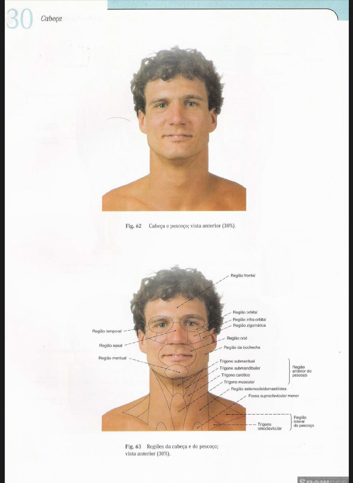 <p>30 Cabeça Fig. 62 Cabeça e pescoço; vista anterior (30%). Região frontal Região orbital Região infra-orbital Região zigomática Região temporal Região oral Região nasal Região da bochecha Região mentual submentual Trigono submandibular Região anterior do carótico pescoço muscular Região Fossa supraclavicular menor Região lateral do pescoço omoclavicular Fig. 63 Regiões da cabeça e do pescoço; vista anterior (30%).</p><p>Regiões da Cabeça e do Pescoço 31 BIBLIOTECA Fig. 64 Cabeça e pescoço; vista lateral (30%). Região parietal Região frontal Região temporal Região orbital Região nasal Região Região occipital Região infra-orbital Região oral Região parotideomassetérica Região da bochecha Região mentual Trigono submandibular Região Região anterior do pescoço Trígono carótico Região posterior do pescoço Trigono muscular Região Trigono lateral omoclavicular do pescoço Fossa supraclavicular menor Regão deltóidea Fig. 65 Regiões da cabeça e do pescoço; vista lateral (30%).</p><p>32 Cabeça Fronte Násio Órbita Arco zigomático Abertura piriforme Gnátio Fig. 66 Crânio; Orientado no plano órbito-meatal (POM ou horizontal alemão); vista anterior (70%).</p><p>Ossos do Crânio 33 Sutura internasal Frontal, Osso nasal Escama frontal Proc. frontal Sutura frontonasal Sutura frontolacrimal Sutura frontomaxilar Sutura esfenofrontal Margem supra-orbital Forame supra-orbital Sutura coronal Parietal Parietal, esfenoidal Sutura Asa maior esfenoparietal Frontal, Asa maior, Parte orbital Face orbital Frontal, Proc. zigomático Temporal Fissura Sutura frontozigomática orbital superior Asa menor Lacrimal Asa maior Sutura esfenozigomática Zigomático Fissura orbital inferior Sutura nasomaxilar Margem infra-orbital Forame infra-orbital Sutura zigomaticomaxilar Concha nasal média Etmóide Septo nasal, parte óssea Vômer Concha nasal inferior Proc. alveolar Ramo da Espinha nasal anterior Sutura intermaxilar Forame mentual Corpo da mandibula Frontal Temporal Vômer Osso nasal Concha nasal inferior Etmóide Maxila Mandibula Parietal Lacrimal Esfenóide Fig. 67 Crânio; vista anterior (70%).</p><p>34 Cabeça Fronte Ptério* Occipúccio Astério* Arco zigomático Gnátio* Gônio* Fig. 68 Crânio; Orientado no plano órbito-meatal (POM ou horizontal alemão); vista lateral (80%). *Em Antropologia empregam-se como os chamados pontos de mensuração.</p><p>Ossos do Crânio 35 Parietal Sutura escamosa coronal Sutura Linha temporal superior Sutura esfenoescamosa Linha temporal inferior Escama frontal Linha temporal parietal Sutura esfenozigomática Sutura Sutura escamosa frontozigomática orbital Sutura parieto- Sutura mastóidea frontolacrimal Lacrimal Sutura Sutura lacrimo- maxilar (Sutura escamo- Osso nasal mastóidea) Sutura naso- maxilar Espinha Sutura occipitomastóidea nasal anterior (Sutura Sutura Poro acústico externo zigomatico- maxilar Côndilo occipital Proc. estilóide Sutura Proc. condilar temporo- Proc. coronóide da Base da mandibula mentual Corpo da Forame mentual Frontal Lacrimal Temporal Parietal Maxila Occipital Esfenóide Osso nasal Etmóide Fig. 69 Crânio; vista lateral (80%).</p><p>36 Cabeça Parietal Fossa mandibular articular Parte escamosa Forame espinhoso Fissura timpanoescamosa Temporal, Proc. zigomático Fissura petro escamosa Forame oval Meato acústico externo Asa maior Crista infratemporal Bainha do processo estilóide Proc. temporal Fissura Forame lacerado timpanomastóidea Proc. mastóide Fissura orbital inferior Forame zigomatico- Forame facial mastóideo Maxila, Fissura Proc. zigomático petro- (Crista timpânica alveolar) Forame infra-orbital Proc. Fossa estilóide Maxila Canal carótico Fissura pterigo- maxilar Proc. Forame Lâmina lateral jugular Proc. Lâmina medial Canal do Espinha nasal nervo hipoglosso anterior Canal pterigóideo condilar Côndilo Forame occipital incisivo Forame magno Corpo Atlas, Arco posterior Maxila, Tubérculo faríngeo Proc. palatino Forame Atlas, Arco anterior esfeno- palatino Lâmina do arco da vértebra Palatino, horizontal Dente Forame palatino maior Proc. espinhoso Linha milo-hióidea Forame lacerado Proc. articular inferior Sulco milo-hióideo Forame transversário Lig. esfenomandibular Proc. transverso, posterior Forame da mandibula Lig. estilomandibular Proc. transverso, anterior Canal carótico Fig. 70 Crânio; após retirada de metade da mandíbula e metade superior da coluna cervical; vista lateral por baixo (80%).</p><p>COB Ossos do Crânio 37 Sutura sagital Forame parietal Forame parietal Sutura Parietal (Osso interparietal; Osso sutural) Ossos suturais Sutura (Sutura occipital escamosa transversa, Var.) Sutura Temporal parietomastóidea Occipital Sutura Forame mastóideo Proc. mastóide Incisura mastóidea Linha nucal superior Proc. estilóide (Crista occipital externa) Linha nucal inferior Protuberância occipital externa Fig. 71 Crânio; vista posterior (70%). * Em Antropologia empregam-se como os chamados pontos de mensuração.</p><p>38 Cabeça Ossos nasais frontal Sutura coronal Linha temporal superior Parietal Bregma* Linha temporal inferior parietal Vértice* Sutura sagital Forames parietais Sutura Escama occipital Occipúcio Fig. 72 Crânio; vista superior (80%). Em Antropologia empregam-se como os chamados pontos de mensuração.</p><p>UFPE CCB Ossos do Crânio 39 BIBLIOTECA Crista frontal Sutura do seio sagital superior Frontal Fovéolas granulares Sutura coronal Sulcos arterio- SOS e venosos Parietal Lâmina interna Lâmina externa Sulco do seio sagital superior Sutura Occipital Fig. 73 Calvária; vista por baixo (80%).</p><p>40 Cabeça Vértice* Bregma* Lambda* Násio* Básio* Fig. 74 Crânio; Corte paramediano; vista medial (80%). * Em Antropologia empregam-se como os chamados pontos de mensuração.</p><p>Ossos do Crânio 41 Forame parietal Sulcos arteriosos Sutura coronal Dorso da sela Temporal, Parte escamosa Sela turca Sutura escamosa Lâmina cribriforme e Forames