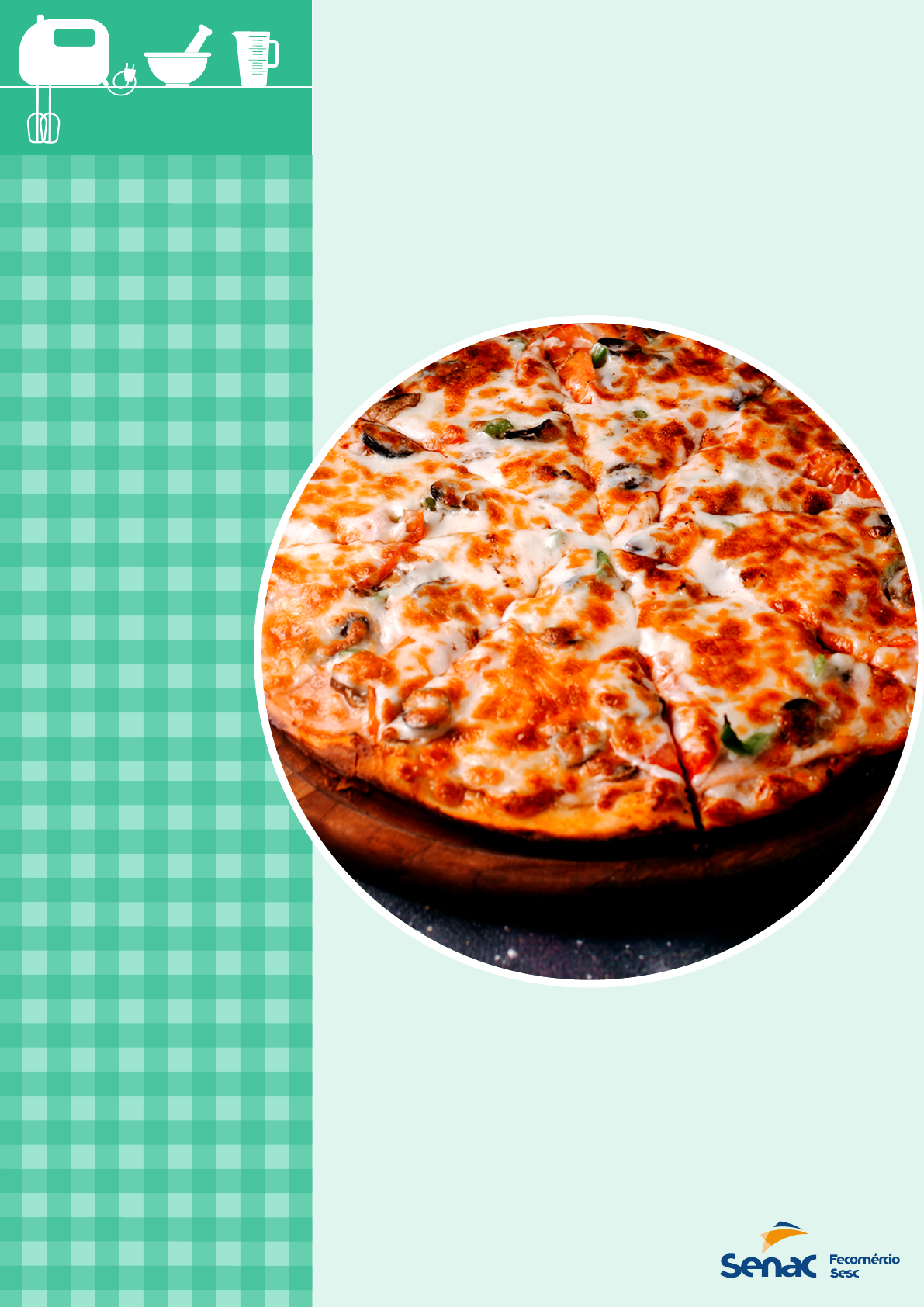 <p>FICHAS</p><p>TÉCNICAS</p><p>Preparo</p><p>de Pizzas</p><p>Sumário</p><p>Focaccia tradicional ........................................................................................................................................ 03</p><p>Massa básica .................................................................................................................................................. 04</p><p>Massa com óleo de milho............................................................................................................................... 05</p><p>Massa de longa fermentação ......................................................................................................................... 06</p><p>Massa integral ................................................................................................................................................ 07</p><p>Molho de pizza .............................................................................................................................................. 08</p><p>Molho de tomate ........................................................................................................................................... 09</p><p>Molho de tomate pelado ................................................................................................................................ 10</p><p>Pide turca ....................................................................................................................................................... 11</p><p>Pizza abobrinha .............................................................................................................................................. 12</p><p>Pizza à moda ................................................................................................................................................... 13</p><p>Pizza atum peruana ........................................................................................................................................ 14</p><p>Pizza bacon ..................................................................................................................................................... 15</p><p>Pizza banana caramelizada ............................................................................................................................ 16</p><p>Pizza calábria .................................................................................................................................................. 17</p><p>Pizza chocolate, pimenta e sorvete ................................................................................................................ 18</p><p>Pizza chocolate e morango ............................................................................................................................. 19</p><p>Pizza la parma ................................................................................................................................................ 20</p><p>Pizza portuguesa ............................................................................................................................................ 21</p><p>Pizza primavera .............................................................................................................................................. 22</p><p>Pizza shitake e poró ........................................................................................................................................ 23</p><p>03</p><p>Focaccia tradicional</p><p>Massa básica</p><p>1,9</p><p>3h</p><p>Agosto/2022</p><p>Chef Luciano Avellar</p><p>Ingredientes Quantidade Medida Pré-preparo</p><p>Farinha de trigo 000 1 kg Peneirar</p><p>Fermento biológico fresco 0,06 kg</p><p>Leite integral 0,3 L</p><p>Água filtrada 0,3 L</p><p>Sal refinado 0,02 kg</p><p>Açúcar refinado 0,04 kg</p><p>Manteiga sem sal 0,1 kg</p><p>Azeite de oliva 0,08 L</p><p>Sal grosso 0,006 kg</p><p>Alecrim fresco 0,25 maço Desfolhar</p><p>1º</p><p>2º</p><p>3º</p><p>4º</p><p>5º</p><p>6º</p><p>Elaborada em</p><p>FICHA TÉCNICA DE PREPARO</p><p>Receita</p><p>Categoria</p><p>Rendimento</p><p>Tempo médio de preparo</p><p>Curiosidades</p><p>Validada por</p><p>Passos</p><p>Em uma tigela, colocar o fermento e 50 ml da água. Misturar com uma colher até que o fermento esteja diluído.</p><p>Continuar misturando com a colher e adicionar o restante da água, o leite, o açúcar e a manteiga.</p><p>Retirar a massa da tigela e modelar as focaccias em assadeiras com um pouco de azeite. Espalhar sal grosso e alecrim por</p><p>cima, cobrir com plástico e levar para fermentar novamente até dobrarem de tamanho.</p><p>Assar a 180°C por 20-25 minutos ou até que estejam douradas.</p><p>Adicionar a farinha de trigo, aos poucos, misturando sempre. Quando a massa começar a pesar, transferir para a bancada</p><p>enfarinhada, adicionar o sal refinado e começar a sovar. Aplicar sova vigorosa por 10 minutos.</p><p>Quando a massa estiver sovada e bem lisa, dividir em porções de 250g, bolear e colocar em uma tigela untada com azeite,</p><p>depois cobrir com plástico filme e levar para fermentar por 20-30 minutos em um local reservado.</p><p>Focaccia tradicional</p><p>04</p><p>Massa básica</p><p>Massa básica de pizza</p><p>1,700 kg</p><p>3h</p><p>Agosto/2022</p><p>Chef Luciano Avellar</p><p>Ingredientes Quantidade Medida Pré-preparo</p><p>Farinha de trigo 000 1 kg Peneirar</p><p>Água filtrada 0,6 L</p><p>Fermento biológico fresco 0,03 kg</p><p>Sal refinado 0,015 kg</p><p>1º</p><p>2º</p><p>3º</p><p>4º</p><p>5º</p><p>6º</p><p>Elaborada em</p><p>FICHA TÉCNICA DE PREPARO</p><p>Receita</p><p>Categoria</p><p>Rendimento</p><p>Tempo médio de preparo</p><p>Curiosidades</p><p>Adicionar a farinha de trigo, aos poucos, misturando sempre. Quando a massa começar a pesar, transferir para a bancada</p><p>enfarinhada, adicionar o sal e começar a sovar. Aplica