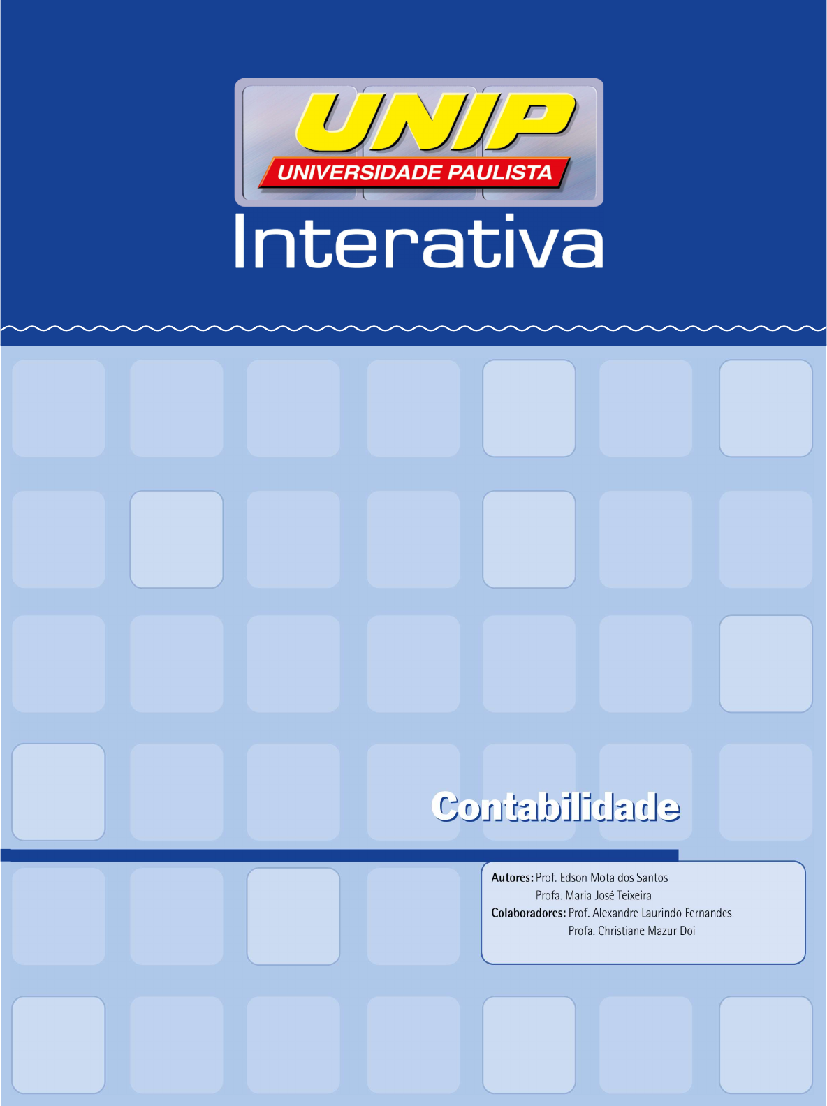 <p>UNIP UNIVERSIDADE PAULISTA Interativa Contabilidade Autores: Prof. Edson Mota dos Santos Profa. Maria José Teixeira Colaboradores: Prof. Alexandre Laurindo Fernandes Profa. Christiane Mazur Doi</p><p>Professores conteudistas: Edson Mota dos Santos / Maria José Teixeira Edson Mota dos Santos Graduado em Ciências Contábeis pela Universidade Ibirapuera em 1989. Pós-graduado em Gerência Financeira em 1992 e mestre em Administração de Empresas em 2000 pela mesma universidade. Cursou doutorado na Florida Christian University em 2011. Professor titular da Universidade Paulista (UNIP). Maria José Teixeira Mestre e graduada em Ciências Contábeis pela Pontifícia Universidade Católica de São Paulo e licenciada pela Faculdade de Educação Campos Salles. Experiência nas áreas de contabilidade societária, contabilidade tributária, custos e controladoria. Coordenadora-geral do curso de Ciências Contábeis e professora adjunta da Universidade Paulista (UNIP). Dados Internacionais de Catalogação na Publicação (CIP) S237c Santos, Edson Mota dos Contabilidade / Edson Mota dos Santos. Maria José Teixeira. São Paulo: Editora Sol, 2022. 148 il. Nota: este volume está publicado nos Cadernos de Estudos e Pesquisas da UNIP, Série Didática, ISSN 1517-9230. 1. Patrimônio. 2. Demonstrações. 3. I. Teixeira, Maria José. II. Título. CDU 657 22 Todos os direitos reservados. Nenhuma parte desta obra pode ser reproduzida ou transmitida por qualquer forma e/ou quaisquer meios (eletrônico, incluindo fotocópia e gravação) ou arquivada em qualquer sistema ou banco de dados sem permissão escrita da Universidade Paulista.</p><p>Prof. Dr. João Carlos Di Genio Reitor Profa. Sandra Miessa Reitora em Exercício Profa. Dra. Marilia Ancona Lopez Vice-Reitora de Graduação Profa. Dra. Marina Ancona Lopez Soligo Vice-Reitora de Pós-Graduação e Pesquisa Profa. Dra. Claudia Meucci Andreatini Vice-Reitora de Administração Prof. Dr. Paschoal Laercio Armonia Vice-Reitor de Extensão Prof. Fábio Romeu de Carvalho Vice-Reitor de Planejamento e Finanças Profa. Melânia Dalla Torre Vice-Reitora de Unidades do Interior Unip Interativa Profa. Elisabete Brihy Prof. Marcelo Vannini Prof. Dr. Luiz Felipe Scabar Prof. Ivan Daliberto Frugoli Material Didático Comissão editorial: Profa. Dra. Christiane Mazur Doi Dra. Angélica L. Carlini Profa. Dra. Ronilda Ribeiro Apoio: Profa. Cláudia Regina Baptista Profa. Deise Alcantara Carreiro Projeto gráfico: Prof. Alexandre Ponzetto Revisão: Ricardo Duarte Ana Fazzio</p><p>Sumário Contabilidade APRESENTAÇÃO 9 INTRODUÇÃO 10 Unidade I 1 CONCEITO, OBJETO E OBJETIVO DA CONTABILIDADE 13 1.1 Conceito de contabilidade 13 1.2 Objeto da contabilidade 14 1.3 Objetivo da contabilidade 15 2 ESTUDO DA FORMAÇÃO DO PATRIMÔNIO E DO RESULTADO 16 2.1 Introdução ao balanço patrimonial 16 2.1.1 Ativo 16 2.1.2 Passivo 16 2.1.3 Patrimônio líquido 17 2.1.4 Equação fundamental do patrimônio 17 2.2 Estudo das contas 18 2.2.1 Conceito 18 2.2.2 Classificação das contas 19 2.3 Apuração do resultado do exercício 20 2.4 Escrituração: registro das operações contábeis 21 2.4.1 Livros contábeis 21 2.4.2 Lançamentos contábeis 22 2.4.3 Método das partidas dobradas 23 2.4.4 Fórmulas de lançamento contábil 24 2.4.5 Lançamento no livro diário de operações que envolvem contas de ativo, passivo e patrimônio líquido 24 2.4.6 Lançamento no livro-razão de operações que envolvem contas de ativo, passivo e patrimônio líquido 25 2.4.7 Lançamento no livro diário de operações que envolvem contas de ativo, passivo, patrimônio líquido, receitas e despesas 26 2.4.8 Exemplo de lançamento no livro diário e no livro-razão de operações que envolvem contas de ativo, passivo, patrimônio líquido, receitas e despesas 28 2.4.9 Regimes contábeis: regime de caixa e regime de competência 35</p><p>Unidade 3 DEMONSTRAÇÕES CONTÁBEIS 44 3.1 Balanço patrimonial 46 3.1.1 Conceito e classificação 46 3.1.2 Estrutura do balanço patrimonial 48 3.1.3 Ativo 48 3.1.4 Passivo 52 3.1.5 Patrimônio líquido 53 3.2 Demonstração do resultado do exercício (DRE) 56 3.2.1 Conceito da DRE 56 3.2.2 Dispositivo legal da DRE 57 3.2.3 Estrutura da DRE 57 3.2.4 Contas da DRE 58 3.3 Demonstração do resultado abrangente (DRA) 62 3.3.1 Características da DRA 62 3.3.2 Estrutura da DRA 63 4 DEMONSTRAÇÕES CONTÁBEIS 64 4.1 Demonstração das mutações do patrimônio líquido (DMPL) 64 4.1.1 Obrigatoriedade 64 4.1.2 Conceito e utilidade da DMPL 64 4.1.3 Estrutura da DMPL 65 4.2 Demonstração dos fluxos de caixa (DFC) 70 4.2.1 Conceito da DFC 70 4.2.2 Estrutura da DFC 70 4.2.3 Métodos de elaboração da DFC 73 Demonstração do valor adicionado (DVA) 83 4.3.1 Obrigatoriedade 83 4.3.2 Conceito e objetivo da DVA 84 4.3.3 Estrutura da DVA 85 4.4 Notas explicativas 86 Unidade III 5 ATIVIDADE PRÁTICA: PARTE 92 5.1 Enunciado do exercício 92 5.2 Resolução do exercício 95 6 ATIVIDADE PRÁTICA: PARTE 101 6.1 Apresentação das demonstrações contábeis 101 Unidade IV 7 ANÁLISE DAS DEMONSTRAÇÕES CONTÁBEIS 114 7.1 Objetivos e usuários das demonstrações contábeis 115 7.1.1 Objetivos 115 7.1.2 Usuários 115</p><p>7.2 Ajustes das demonstrações contábeis para fins de análise 116 7,3 Demonstrações (relatórios) contábeis utilizadas para análise 116 7.4 Técnicas de análise das demonstrações contábeis 117 7.4.1 Análise vertical: balanço patrimonial 118 7.4.2 Análise vertical: DRE 121 7.4.3 Análise horizontal: balanço patrimonial 123 7.4.4 Análise horizontal: DRE 125 8 ANÁLISE POR INDICADORES 127 8.1 Indicadores de endividamento ou de estrutura de capitais 128 8.1.1 Participação de capital de terceiros 128 8.1.2 Composição do endividamento 129 8.1.3 Imobilização do patrimônio líquido 129 8.1.4 Imobilização de recursos não correntes 130 8.1.5 Dependência financeira 130 8.1.6 Independência financeira 130 8.2 Indicadores de liquidez 131 8.2.1 Liquid