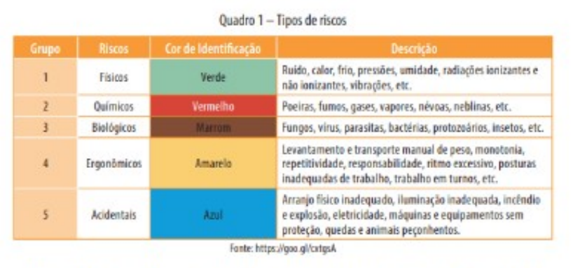 <p>Unidade 2 – BIOSSEGURANÇA E PRIMEIROS SOCORROS</p><p>A Área da Saúde está intimamente ligada à Vigilância Sanitária (VS), que define ações capazes de eliminar, diminuir ou prevenir riscos à saúde e de intervir nos problemas sanitários decorrentes do meio ambiente, da produção e da circulação de bens e da prestação de serviços de interesse da saúde”</p><p>As ações desenvolvidas pela Vigilância Sanitária são de caráter educativo (preventivo), normativo (regulamentador), fiscalizador e, em última instância, punitivo. A Vigilância Sanitária tem atuação no nível federal, nos estados e nos municípios, e tem as seguintes ações/fiscalização: I. Proteger o ambiente e defender o desenvolvimento sustentável; II. Saneamento básico nas residências de qualquer tipo de construção; III. Cuidar da qualidade de alimentos, água e bebidas para consumo humano; IV. Medicamentos, equipamentos, imunobiológicos e outros insumos de interesse para a saúde; V. Ambiente e processos de trabalho e saúde do trabalhador; VI. Serviços de Assistência à Saúde, como SUS (Sistema Único de Saúde); VII. Produção, transporte, guarda e utilização de outros bens, substâncias e produtos psicoativos, tóxicos e radiativos; VIII. Sangue e hemoderivados; IX. Radiações de qualquer natureza; X. Portos, aeroportos e fronteiras (BRASIL, 216, p. 42). Na área da saúde a VS, tem atuação (alimentos, cosméticos, medicamentos, saneantes domissanitários e produtos correlatos), certificando se estes estão próprios para os seres vivos, desta forma os laboratórios de Análises Clínicas, as Clínicas Estéticas (CE) e Salões de Beleza (SB) estão vinculados diretamente ao órgão.</p><p>Análise da pele= Biológico</p><p>Auxílio o médico dermatologista e cirurgião plástico nos tratamentos pós procedimentos dermatológicos = Biológico</p><p>Auxílio os setores de dermatologia em ambulatórios hospitalares dos centros de tratamento de queimaduras = Biológico</p><p>Depilação eletrônica= Físico (radiação não ionizante),</p><p>Drenagem linfática corporal = Ergonômico (esforço de mãos e braços de forma contínua)</p><p>Esfoliação corporal = Ergonômica</p><p>impeza de pele profunda= Biológico</p><p>Massagem mecânica = Ergonômico</p><p>Massagens cosméticas= Ergonômico</p><p>- Massagens cosméticas = Ergonômico</p><p>- Massagens relaxantes e aplicação da cosmetologia apropriada = Ergonômico</p><p>- Procedimentos pré e pós cirúrgicos como drenagem linfática = Ergonômico</p><p>Os riscos biológicos são: vírus, bactérias, parasitas, protozoários, fungos e bacilos, e são classificados em: • Classe 1: Agentes que não apresentam riscos para o manipulador, nem para o cliente</p><p>Classes 2: Apresentam risco moderado para o manipulador e fraco para o cliente, e há sempre um tratamento preventivo</p><p>Classe 3: São os agentes que apresentam risco grave para o manipulador e moderado para o cliente, sendo que as lesões ou os sinais clínicos são graves e nem sempre há tratamento</p><p>Classe 4: Risco grave para o manipulador e para o cliente, não existe tratamento e os riscos em caso de propagação são bastante graves</p><p>A Ergonomia é o estudo das relações entre o homem e seu ambiente de trabalho, em que os recursos e as técnicas da Engenharia devem ser usados para ajustar as partes biológicas humanas e as atividades que ela desenvolve. Os riscos ergonômicos podem afetar partes físicas e psicológicas do profissional, causando doenças e desconforto. São eles: esforço físico, levantamento de peso, postura inadequada, controle rígido de produtividade, situação de estresse, trabalhos em período noturno, jornada de trabalho prolongada, monotonia e repetitividade e imposição de rotina intensa</p><p>Os riscos ergonômicos são: LER/DORT, cansaço físico, dores musculares, hipertensão arterial, alteração do sono, diabetes, doenças nervosas, taquicardia, doenças do aparelho digestivo (gastrite e úlcera), tensão, ansiedade, problemas de coluna, etc</p><p>: LER, significa lesões por esforços repetitivos e DORT Distúrbios Osteomusculares Relacionados ao Trabalho.</p><p>Temperatura ambiente: a temperatura de conforto: no verão, deverá variar de 23°C a 26°C e, no inverno, entre 20 e 22ºC; • Postura estática durante atividade de categorias (Tabela 1) 12 a 17: o profissional deve ter uma maca com regulagem que varia entre 50cm e 85 cm de altura e deve proporcionar ao profissional postura correta e que lhe seja confortável.</p><p>Estresse: o excesso de trabalho e algum tipo de tensão muscular pode leva o profissional esteticista a tencionar tendões e músculos das mãos, braços, pernas e coluna, durante a atividade desenvolvida. Procure fazer sessões de relaxamento e alongamentos nos intervalos de atendimento a clientes.</p><p>Plano de Gestão da Qualidade e Biossegurança.</p><p>1. Elaborar um cronograma de reuniões do time (deve ser composto por todos os funcionários da CE, desde o pessoal de limpeza, até o proprietário), levantando os problemas que cada um dos participantes aponte; levantamento de soluções, objetivos e metas.</p><p>2. 2. Elaborar o Quadro , com envolvidos, responsabilidade de cada um e correções.</p><p>3. 3. Elaborar o Quadro – Cronograma de Cursos de Aperfeiçoamento/Reciclagem, com envolvidos, responsabilidade de cada um e avaliação.</p><p>Existem inúmeros modelos de Plano de Gestão da Qualidade e Biossegurança (PGQB), o importante é que o líder do time tenha consciência crítica, saiba ouvir, tomar decisões, saiba agir e realizar autoavaliações. Dessa forma, o PGQB terá sucesso, haverá a ligação científica tecnológica, mesclada à prática de trabalho com a segurança</p><p>Os maiores problemas que ocorrem em CE, são: • Queimaduras: » Por excesso de Raios Ultravioletas (UV), assim como o perigo das câmaras de bronzeamento artificial e das lâmpadas artifici