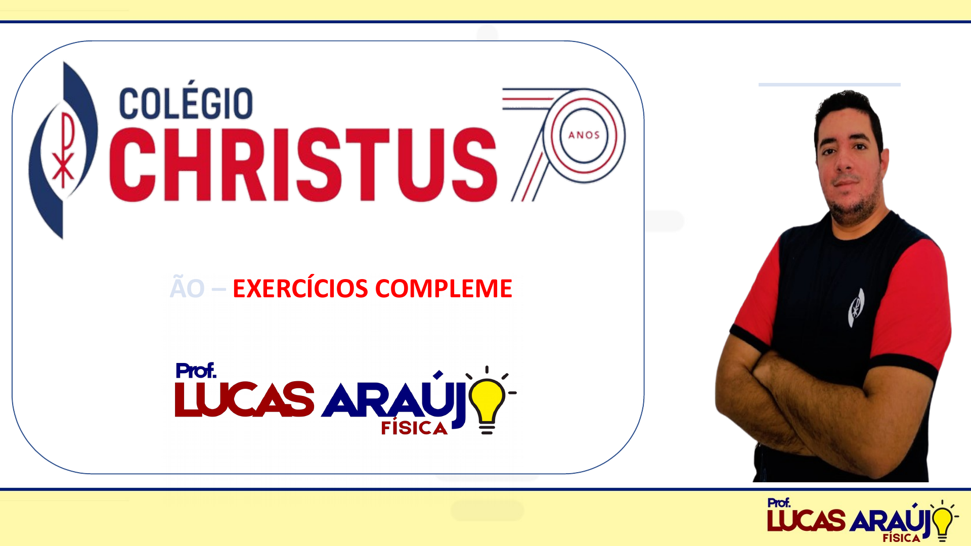 (O movimento, o equilíbrio e a descoberta de leis físicas) GRAVITAÇÃO – EXERCÍCIOS COMPLEMENTARES FÍSICA EXERCÍCIO 01 Considere o raio médio da órbita de Plutão (planeta-anão) cem vezes raio médio da órbita de Mercúrio e 40 vezes o raio médio da órbita da Terra. Sabendo que a duração aproximada do ano de Mercúrio é de três meses terrestres e que a velocidade orbital da Terra tem intensidade igual a 30 km/s, determine: a) a duração do ano de Plutão expressa em anos terrestres; b) a intensidade da velocidade orbital de Plutão. EXERCÍCIO 02 Sabemos que a Constante da Gravitação vale, aproximadamente, 6,7 · 10–11 N · m2/kg2. Nessas condições, qual é a ordem de grandeza, em newtons, da força de atração gravitacional entre dois navios de 200 toneladas de massa cada um, separados por uma distância de 1,0 km? EXERCÍCIO 03 Em determinado instante, três corpos celestes A, B e C têm seus centros de massa alinhados e distanciados, conforme mostra o esquema abaixo: Sabendo que as massas de A, B e C valem, respectivamente, 5M, 2M e M, determine a relação entre as intensidades das forças gravitacionais que B recebe de A e de C. EXERCÍCIO 04 Duas partículas de massas respectivamente iguais a M e m estão no vácuo, separadas por uma distância d. A respeito das forças de interação gravitacional entre as partículas, podemos afirmar que: a) têm intensidade inversamente proporcional a d; b) têm intensidade diretamente proporcional ao produto M m; c) não constituem entre si um par ação-reação; d) podem ser atrativas ou repulsivas; e) teriam intensidade maior se o meio fosse o ar.