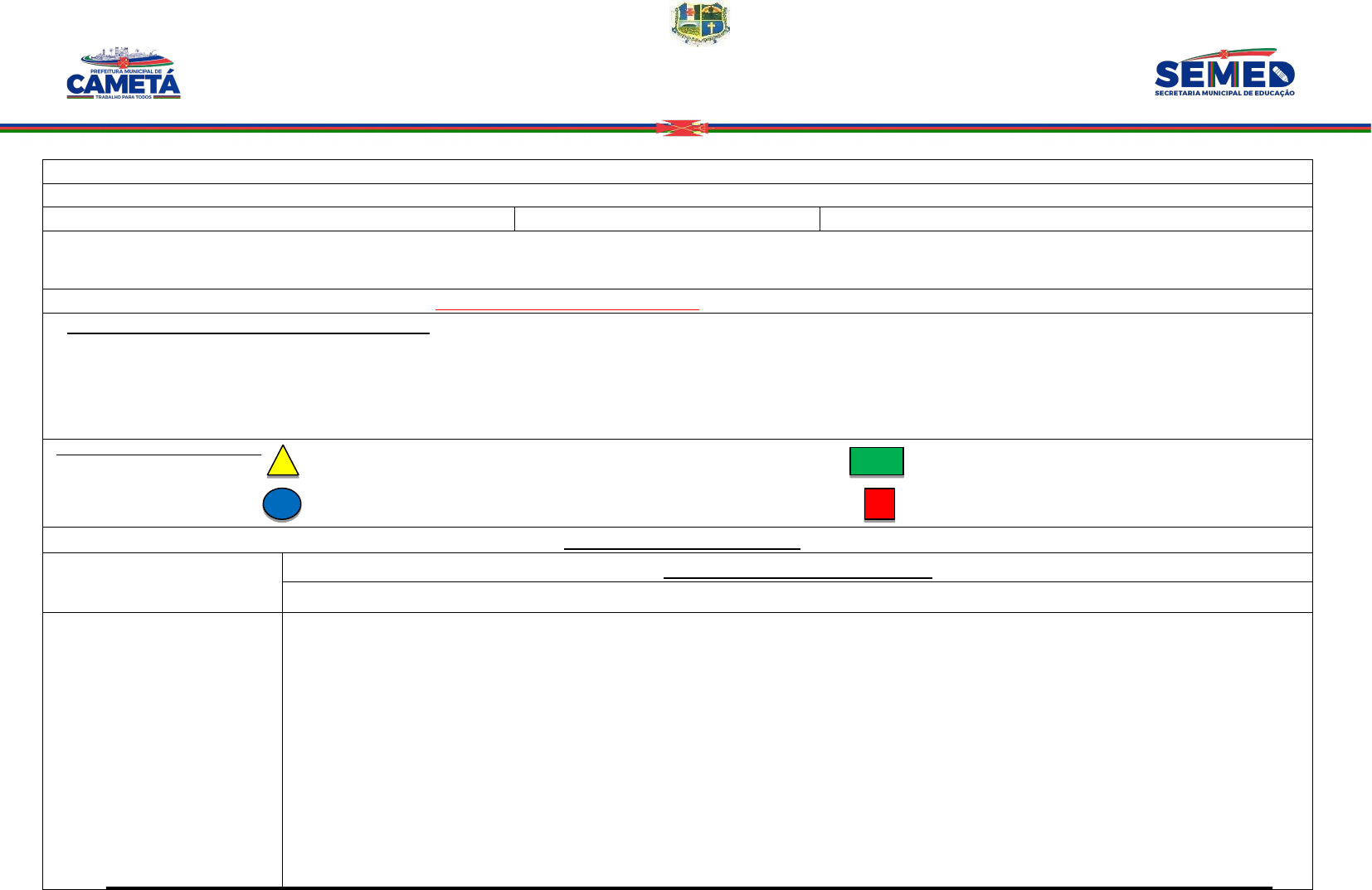 <p>SERVIÇO PÚBLICO MUNICIPAL</p><p>PREFEITURA MUNICIPAL DE CAMETÁ</p><p>SECRETARIA MUNICIPAL DE EDUCAÇÃO</p><p>DEPARTAMENTO PEDAGÓGICO</p><p>Escola: Escola Municipal de Ensino Infantil e Fundamental Gracinda Peres</p><p>Professor (a): Sebastião Júnior Moreira Lopes</p><p>Etapa de Ensino: Ensino Fundamental II</p><p>Turma: 8º ano</p><p>Período de execução: 29/02 á 30/06 de 2024</p><p>EIXO (S) TEMÁTICOS:</p><p>1° e 2° SEMESTRE ( x ) : 2024</p><p>ÁREA DE CONHECIMENTO: CIÊNCIAS HUMANAS</p><p>Princípio(s) Curricular(es) Norteador(es):</p><p>( x ) Respeito às Diversas Culturas Amazônicas e Suas Inter-Relações no Espaço e no Tempo.</p><p>( ) Educação para a Sustentabilidade Ambiental, Social e Econômica.</p><p>( X ) A Interdisciplinaridade e a Contextualização no Processo Ensino Aprendizagem</p><p>EIXO (s) ESTRUTUTANTE (s):</p><p>( x ) ESPAÇO / TEMPO E SUAS TRANSFORMAÇÕES ( x ) VALORES À VIDA SOCIAL</p><p>( x ) LINGUAGEM E SUAS FORMAS COMUNICATIVAS ( x ) CULTURA E IDENTIDADE</p><p>PLANO DE ENSINO DOCENTE</p><p>ELEMENTOS DO PED</p><p>CAMPONENTE CURRICULAR</p><p>GEOGRAFIA</p><p>COMPETÊNCIAS ESPECÍFICAS DA ÁREA</p><p>GE. Utilizar os conhecimentos geográficos para entender a interação sociedade/natureza e exercitar o interesse e o espírito de investigação e de resolução de problemas.</p><p>GE. Estabelecer conexões entre diferentes temas do conhecimento geográfico, reconhecendo a importância dos objetos técnicos para a compreensão das formas como os seres humanos fazem uso dos recursos da natureza ao longo da história.</p><p>GE. Desenvolver autonomia e senso crítico para compreensão e aplicação do raciocínio geográfico na análise da ocupação humana e produção do espaço, envolvendo os princípios de analogia, conexão, diferenciação, distribuição, extensão, localização e ordem.</p><p>GE. Desenvolver o pensamento espacial, fazendo uso das linguagens cartográficas e iconográficas, de diferentes gêneros textuais e das geotecnologias para a resolução de problemas que envolvam informações geográficas.</p><p>GE. Desenvolver e utilizar processos, práticas e procedimentos de investigação para compreender o mundo natural, social, econômico, político e o meio técnico-científico e informacional, avaliar ações e propor perguntas e soluções (inclusive tecnológicas) para questões que requerem conhecimentos científicos da Geografia.</p><p>GE. Construir argumentos com base em informações geográficas, debater e defender ideias e pontos de vista que respeitem e promovam a consciência socioambiental e o respeito à biodiversidade e ao outro, sem preconceitos de qualquer natureza.</p><p>GE. Agir pessoal e coletivamente com respeito, autonomia, responsabilidade, flexibilidade, resiliência e determinação, propondo ações sobre as questões socioambientais, com base em princípios éticos, democráticos, sustentáveis e solidários.</p><p>OBJETO DE CONHECIMENTO</p><p>· Distribuição da população mundial e deslocamentos populacionais</p><p>· Diversidade e dinâmica da população mundial e local</p><p>· Corporações e organismos internacionais e do Brasil na ordem econômica mundial</p><p>· Os diferentes contextos e os meios técnico e tecnológico na produção</p><p>· Transformações do espaço na sociedades urbano-industrial na América Latina</p><p>· Cartografia: anamorfose, croquis e mapas temáticos da América e África</p><p>· Identidades e interculturalidades regionais: Estados Unidos da América, América espanhola e portuguesa e África</p><p>· Diversidade ambiental e as transformações nas paisagens na América Latina</p><p>HABILIDADES SUGERIDAS</p><p>(EF08GE01) Descrever as rotas de dispersão da população humana pelo planeta e os principais fluxos migratórios em diferentes períodos da história, discutindo os fatores históricos e condicionantes físico-naturais associados à distribuição da população humana pelos continentes</p><p>(EF08GE02) Relacionar fatos e situações representativas da história das famílias do Município em que se localiza a escola, considerando a diversidade e os fluxos migratórios da população mundial.</p><p>(EF08GE03) Analisar aspectos representativos da dinâmica demográfica, considerando características da população (perfil etário, crescimento vegetativo e mobilidade espacial).</p><p>(EF08GE04) Compreender os fluxos de migração na América Latina (movimentos voluntários e forçados, assim como fatores e áreas de expulsão e atração) e as principais políticas migratórias da região.</p><p>(EF08GE05) Aplicar os conceitos de Estado, nação, território, governo e país para o entendimento de conflitos e tensões na contemporaneidade, com destaque para as situações geopolíticas na América e na África e suas múltiplas regionalizações a partir do pós-guerra.</p><p>(EF08GE06) Analisar a atuação das organizações mundiais nos processos de integração cultural e econômica nos contextos americano e africano, reconhecendo, em seus lugares de vivência, marcas desses processos.</p><p>(EF08GE07) Analisar os impactos geoeconômicos, geoestratégicos e geopolíticos da ascensão dos Estados Unidos da América no cenário internacional em sua posição de liderança global e na relação com a China e o Brasil.</p><p>(EF08GE08) Analisar a situação do Brasil e de outros países da América Latina e da África, assim como da potência estadunidense na ordem mundial do pós- guerra.</p><p>(EF08GE09) Analisar os padrões econômicos mundiais de produção, distribuição e intercâmbio dos produtos agrícolas e industrializados, tendo como referência os Estados Unidos da América e os países denominados de Brics (Brasil, Rússia, Índia, China e África do Sul).</p><p>(EF08GE10) Distinguir e analisar conflitos e ações dos movimentos sociais brasileiros, no campo e na cidade, comparando com outros movimentos sociais existentes nos países latino-