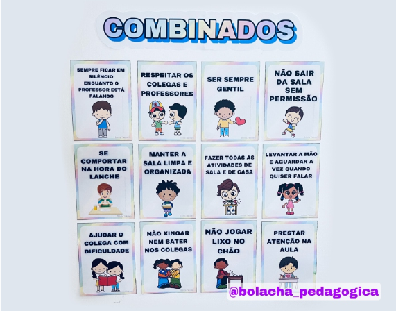 <p>Instagram: @bolacha_pedagogica</p><p>Para mais recursos gratuitos, acesse: www.bolachapedagogica.com</p><p>Combinados da sala</p><p>Imprimir em papel mais firme, recortar, montar e plastificar</p><p>Para que o recurso tenha uma maior durabilidade e também evite</p><p>o desbotamento, plastifique. Pode usar contact.</p><p>Instagram: @bolacha_pedagogica</p><p>Para mais recursos gratuitos, acesse: www.bolachapedagogica.com</p><p>Combinados da sala</p><p>Imprimir em papel mais firme, recortar, montar e plastificar</p><p>Direitos Autorais</p><p>Este material foi produzido pela Pâmela Fumagalli, autora e criadora do portal</p><p>bolachapedagogica.com.</p><p>Este material está sendo disponibilizado gratuitamente no site, não sendo autorizada a</p><p>venda ou alteração do arquivo seja de todo o conteúdo ou parte dele.</p><p>Caso tenha a intenção de indicar este material para qualquer pessoa, ao invés de</p><p>compartilhar o arquivo, sugerimos que deve ser compartilhado o link do site</p><p>www.bolachapedagogica.com para que o interessado obtenha o material a partir do site.</p><p>A venda ou alteração deste material ou parte dele por pessoa física, jurídica, sites, blogs,</p><p>canais, páginas/perfis “sociais” sem a autorização previa da autora, incorre em violação de</p><p>direito autoral conforme Código Penal Art 184, e haverá a denúncia em órgão de proteção</p><p>global como DMCA o que poderá acarretar em penalizações judiciais, bloqueio de sua conta</p><p>em perfil social e bloqueio de conta do Google Adsense.</p><p>Material Disponibilizado Gratuitamente</p><p>Recursos, ferramentas e ideias</p><p>pedagógicas!</p><p>O portal preferido dos</p><p>professores da educação</p><p>@bolacha_pedagogica</p><p>Apoie o projeto compartilhando o endereço:</p><p>www.bolachapedagogica.com</p><p>Venda Proibida</p><p>Se este material te ajudou de alguma forma, compartilhe as</p><p>artes nas redes sociais e marque o perfil</p><p>Página 1</p><p>Página 2</p><p>Página 3</p><p>Página 4</p><p>Página 5</p><p>Página 6</p><p>Página 7</p><p>Página 8</p><p>Página 9</p>
