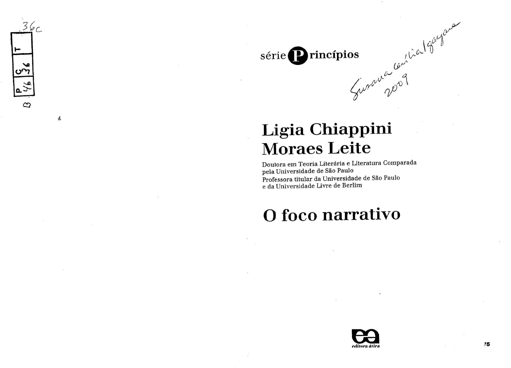 <p>36c on série P rincípios Ligia Chiappini Moraes Leite Doutora em Teoria Literária e Literatura Comparada pela Universidade de São Paulo Professora titular da Universidade de São Paulo e da Universidade Livre de Berlim O foco narrativo editora 15</p><p>Ligia Chiappini Moraes Leite Sumário Diretor editorial adjunto Fernando Paixão Editor adjunto Carlos S. Mendes Rosa Editora assistente Tatiana Corrêa Pimenta Revisão Ivany Picasso Batista (coord.) Estagiária Bianca Santana ARTE Edição Antonio Paulos Assistente Claudemir Camargo Capa e projeto gráfico Homem de Mello & Troia Design Editoração eletrônica Moacir K. Matsusaki ORIGINAL Direção Benjamin Abdala Junior e Samira Youssef Campedelli Preparação de texto José Pessoa de Figueiredo 1. Narração, ficção e valor 5 CIP-BRASIL. Origens - Platão e Aristóteles: narrar e 5 SINDICATO NACIONAL DOS EDITORES DE LIVROS, RJ. Hegel e a objetividade épica 9 L554f Kayser: narração e convenção 11 11.ed. A teoria do foco narrativo: Henry James e Percy Lubbock 12 Leite, Ligia Chiappini Moraes. 1945- foco narrativo / Ligia Chiappini Moraes Leite. 11.ed. São Paulo A crítica a Lubbock: Wayne C. Booth e o "autor implícito" 15 Ática, 2007 As "visões" de Jean Pouillon 19 96p. - (Princípios ; 4) Revisando as "visões": Maurice-Jean Lefebve 21 Inclui bibliografia comentada A análise estrutural da narrativa: Roland Barthes ISBN 978-85-08-10789-6 e Tzvetan Todorov 23 1. Ficção Técnica. 2. Ponto de vista (Literatura). 3. Narrativa (Retórica). I. Título. II. 2. A tipologia de Norman Friedman 25 06-2560. Autor onisciente intruso 26 CDD 808.3 CDU 82-3 Narrador onisciente neutro 32 "Eu" como testemunha 37 ISBN 978 85 08 10789-6 (aluno) IMPORTANTE: Ao livro, você remunera e reco- Narrador-protagonista 43 ISBN 978 85 08 10790-2 (professor) nhece o trabalho do o de muitos outros profissionais Onisciência seletiva múltipla 47 envolvidos na produção editorial e na comercialização das editores revisores, diagramadores, ilustradores, gráficos, Onisciência seletiva 54 livreiros, entre outros. Ajude- 2007 nos a combater a Ela gera desemprego, prejudica Modo dramático 58 edição a difusão da cultura e encarece os livros que você compra. Câmera 62 impressão Impressão e acabamento: Gráfica da Ave-Maria Análise mental, monólogo interior e fluxo de consciência 66 Todos os direitos reservados pela Editora Ática, 2007 3. Narração, ficção e história 71 Av. Otaviano Alves de Lima, 4400 São Paulo, SP CEP 02909-900 A objetividade contestada: a moderna opção do lirismo 71 Tel.: (11) 3990-2100 Fax: (11) 3990-1784 Internet: www.atica.com.br www.aticaeducacional.com.br História e ficção: a concepção aristotélica e seus desdobramentos 75 EDITORA</p><p>A historiografia e o escamotear do narrador 78 Conclusão: uma questão de ponto de vista 86 1 Narração, 4. Vocabulário crítico 87 ficção e valor 5. Bibliografia comentada 91 Origens - Platão e Aristóteles: narrar e imitar Histórias são narradas desde sempre. Forma vaga de que disponho para marcar, sem datar, o início da ÉPICA no sentido de uma narração de fatos, presenciados ou vi- vidos por alguém que tinha a autoridade para narrar, al- guém que vinha de outros tempos ou de outras terras, tendo, por isso, experiência a comunicar e conselhos a dar a seus ouvintes atentos. 2 Assim, desde sempre, entre os fatos narrados e o público, se interpôs um narrador. No decorrer da HISTÓRIA, porém, as HISTÓRIAS narra- das pelos homens foram-se complicando, e o NARRADOR foi mesmo progressivamente se ocultando, ou atrás de outros narradores, ou atrás dos fatos narrados, que parecem cada vez mais, com o desenvolvimento do romance, narrarem-se 1 Os versaletes destacam os conceitos principais. 2 Sobre a narrativa primitiva, ver BENJAMIN, Walter. o narrador. In: - et alii. Textos escolhidos. São Paulo, Abril Cultural, 1983. (Os pensadores.)</p><p>6 7 a si próprios; ou, mais recentemente, atrás de uma voz que curso longo, alternar IMITAÇÃO e NARRAÇÃO e só imitar nos fala, velando e desvelando, ao mesmo tempo, narrador diretamente aquelas ações, tipos e gestos nobres: e personagem, numa fusão que, se os apresenta diretamente ao leitor, também os distancia, enquanto os dilui. 3 há uma maneira de falar e contar que acompanha o Quem narra, narra o que viu, o que viveu, o que verdadeiro homem honesto, quando tem alguma coisa a testemunhou, mas também o que imaginou, o que sonhou, dizer; e há uma outra, diferente, à qual se prende e se o que desejou. Por isso, NARRAÇÃO e FICÇÃO praticamente conforma sempre o homem de natureza e educação con- nascem juntas. trárias (...). homem ponderado, segundo me parece, E. M. Forster assim define o homem criado pela FIC- quando tiver de referir, numa narração, uma frase ou uma ÇÃO, ou o homo fictus: ação de um homem bom, procurará exprimir-se como se fosse esse homem e não se envergonhará de tal sobretudo se imitar qualquer aspecto de firmeza e de sa- Geralmente nasce, é capaz de morrer, requer pouco ali- bedoria. Imitará menos vezes e menos bem o seu modelo mento ou sono, está incansavelmente ocupado com relações quando este tiver falhado, sob o efeito da doença, do humanas, e o mais importante podemos saber mais da embriaguez ou de qualquer outro acidente. E, quando sobre ele do que sobre qualquer dos nossos semelhantes, tiver de falar de um homem indigno dele, não se permitirá porque seu criador e narrador é um Estivéssemos pre- imitá-lo a sério, a não ser de passagem, quando esse homem parados para uma hipérbole, a esta altura, poderiamos ex- tiver feito qualquer coisa de bem clamar: Se Deus pudesse contar a estória do Universo, o Universo se tornaria 4 Pelo trecho citado, dá para perceber que a distinção Eis aí um exemplo de escritor que, num determinado entre imitar e narrar (que voltaremos a encontrar séculos momento, como tantos outros na história da FICÇÃO, sen- mais tard