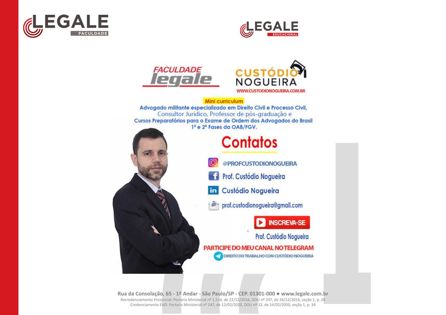 <p>Rua da Consolação, 65 - 1º Andar - São Paulo/SP - CEP. 01301-000 ● www.legale.com.br</p><p>Recredenciamento Presencial: Portaria Ministerial nº 1.514, de 22/12/2016, DOU nº 247, de 26/12/2016, seção 1, p. 26</p><p>Credenciamento EAD: Portaria Ministerial nº 247, de 12/02/2020, DOU nº 32, de 14/02/2020, seção 1, p. 34Beatriz Boaventura Souza - 06634655596</p><p>ACESSO AO PODER JUDICIÁRIO</p><p>Art. 791 - Os empregados e os empregadores poderão reclamar pessoalmente perante a Justiça do Trabalho e acompanhar as suas</p><p>reclamações até o final.</p><p>§ 1º - Nos dissídios individuais os empregados e empregadores poderão fazer-se representar por intermédio do sindicato, advogado,</p><p>solicitador, ou provisionado, inscrito na Ordem dos Advogados do Brasil.</p><p>§ 2º - Nos dissídios coletivos é facultada aos interessados a assistência por advogado.</p><p>§ 3o A constituição de procurador com poderes para o foro em geral poderá ser efetivada, mediante simples registro em ata de</p><p>audiência, a requerimento verbal do advogado interessado, com anuência da parte representada.</p><p>Alcance?</p><p>Súmula nº 425 do TST</p><p>JUS POSTULANDI NA JUSTIÇA DO TRABALHO. ALCANCE. Res. 165/2010, DEJT divulgado em 30.04.2010 e 03 e 04.05.2010. O jus</p><p>postulandi das partes, estabelecido no art. 791 da CLT, limita-se às Varas do Trabalho e aos Tribunais Regionais do Trabalho, não</p><p>alcançando a ação rescisória, a ação cautelar, o mandado de segurança e os recursos de competência do Tribunal Superior do Trabalho.</p><p>DECLARAÇÃO DE POBREZA</p><p>ASSISTÊNCIA JUDICIÁRIA ≠ JUSTIÇA GRATUITA</p><p>ASSISTÊNCIA JUDICIÁRIA, instituição que dá às pessoas pobres os meios de pleitear em juízo.</p><p>Art. 5º, LXXIV, CF - o Estado prestará assistência jurídica integral e gratuita aos que comprovarem insuficiência de recursos;</p><p>Quem Presta Assistência Jurídica Integral e Gratuita?</p><p>As Defensorias Públicas e; os Convênios com a OAB (http://www.oabsp.org.br/informacoesuteis/enderecos-para-assistencia-judiciaria)</p><p>Rua da Consolação, 65 - 1º Andar - São Paulo/SP - CEP. 01301-000 ● www.legale.com.br</p><p>Recredenciamento Presencial: Portaria Ministerial nº 1.514, de 22/12/2016, DOU nº 247, de 26/12/2016, seção 1, p. 26</p><p>Credenciamento EAD: Portaria Ministerial nº 247, de 12/02/2020, DOU nº 32, de 14/02/2020, seção 1, p. 34Beatriz Boaventura Souza - 06634655596</p><p>JUSTIÇA GRATUITA – Declaração de Pobreza</p><p>Art. 790, § 3º É facultado aos juízes, órgãos julgadores e presidentes dos tribunais do trabalho de qualquer instância conceder, a</p><p>requerimento ou de ofício, o benefício da justiça gratuita, inclusive quanto a traslados e instrumentos, àqueles que perceberem salário</p><p>igual ou inferior a 40% (quarenta por cento) do limite máximo dos benefícios do Regime Geral de Previdência Social.</p><p>§ 4º O benefício da justiça gratuita será concedido à parte que COMPROVAR insuficiência de recursos para o pagamento das custas do</p><p>processo.</p><p>REFORMA TRABALHISTA</p><p>Da Exigência de Comprovação do Estado de Pobreza</p><p>àqueles que percebam SALÁRIO superior a 40% do teto dos benefícios do INSS</p><p>NOVA REDAÇÃO</p><p>Art. 790, § 4º O benefício da justiça gratuita será concedido à parte que COMPROVAR insuficiência de recursos para o pagamento das</p><p>CUSTAS DO PROCESSO.</p><p>Art. 790, § 4º da CLT</p><p>VERSUS</p><p>Art. 99, § 3º do CPC e Art. 4º, §1º da Lei 7.510/86 e Súmula 463, I do TST</p><p>Qual é a Norma mais Favorável ao empregado? Art 99, § 3º do CPC e Art. 4º, §1º da Lei 7.510/86.</p><p>Rua da Consolação, 65 - 1º Andar - São Paulo/SP - CEP. 01301-000 ● www.legale.com.br</p><p>Recredenciamento Presencial: Portaria Ministerial nº 1.514, de 22/12/2016, DOU nº 247, de 26/12/2016, seção 1, p. 26</p><p>Credenciamento EAD: Portaria Ministerial nº 247, de 12/02/2020, DOU nº 32, de 14/02/2020, seção 1, p. 34Beatriz Boaventura Souza - 06634655596</p><p>O direito Material do Trabalho é marcado pela desigualdade entre as partes, daí o princípio protetivo na vertente NORMA MAIS FAVORÁVEL,</p><p>servir para equilibrar a relação de Direito Material.</p><p>O CPC NÃO EXIGE A COMPROVAÇÃO DO ESTADO DE POBREZA!</p><p>Art. 99 – CPC - O pedido de gratuidade da justiça pode ser formulado na petição inicial, na contestação, na petição para ingresso de</p><p>terceiro no processo ou em recurso.</p><p>§ 3o Presume-se verdadeira a alegação de insuficiência deduzida exclusivamente por pessoa natural.</p><p>§ 4o A assistência do requerente por advogado particular não impede a concessão de gratuidade da justiça.</p><p>Art. 4º da Lei 7.510/86 - A parte gozará dos benefícios da assistência judiciária, mediante simples afirmação, na própria petição inicial,</p><p>de que não está em condições de pagar as custas do processo e os honorários de advogado, sem prejuízo próprio ou de sua família.</p><p>§ 1º Presume-se pobre, até prova em contrário, quem afirmar essa condição nos termos desta lei, sob pena de pagamento até o décuplo</p><p>das custas judiciais.</p><p>Pedir aplicação da Súmula 463 do c. TST.</p><p>Súmula nº 463 do TST</p><p>ASSISTÊNCIA JUDICIÁRIA GRATUITA. COMPROVAÇÃO (conversão da Orientação Jurisprudencial nº 304 da SBDI-1, com alterações</p><p>decorrentes do CPC de 2015) - Res. 219/2017, DEJT divulgado em 28, 29 e 30.06.2017 – republicada - DEJT divulgado em 12, 13 e</p><p>14.07.2017</p><p>I – A partir de 26.06.2017, para a concessão da assistência judiciária gratuita à pessoa natural, basta a declaração de hipossuficiência</p><p>econômica firmada pela parte ou por seu advogado, desde que munido de procuração com poderes específicos para esse fim (art. 105</p><p>do CPC de 2015);</p><p>II – No caso de pessoa jurídica, não basta a mera declaração: 