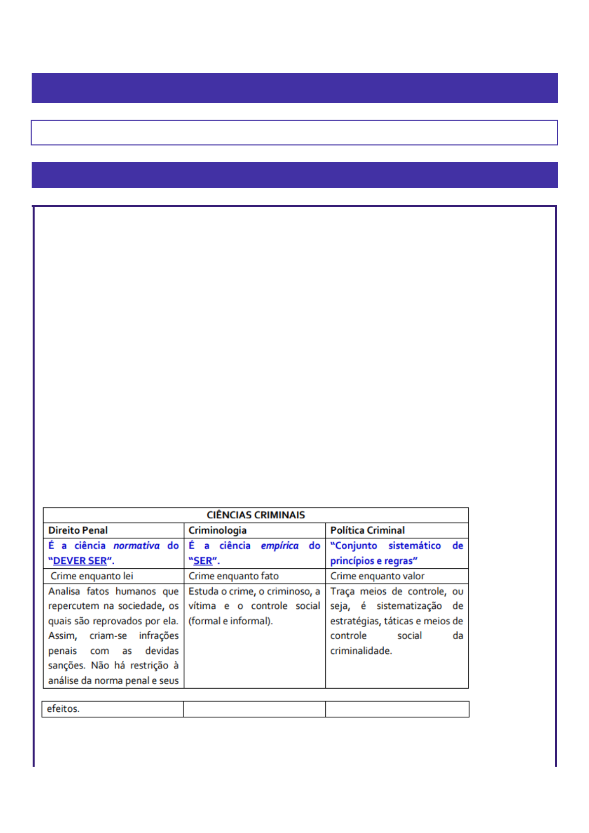 <p>TRILHA DE DISCIPLINA – PC-SP</p><p>Matéria: Criminologia</p><p>TAREFA 1</p><p>Criminologia</p><p>Estudo integral da aula 00; e resolução de questões.</p><p>Link: https://www.estrategiaconcursos.com.br/app/dashboard/cursos/234155/aulas</p><p>Pessoal, daremos início agora ao estudo da Criminologia para o concurso da PC-SP. Para o</p><p>estudo da nossa disciplina utilizaremos o material completo.</p><p>Faça anotações/marcações pontuais em seu material para auxiliar na revisão.</p><p>OBS! Vá resolvendo as questões conforme forem aparecendo no decorrer da aula. Registre as</p><p>questões que errou ou respondeu sem certeza para revisar futuramente.</p><p>Nesta tarefa estudaremos conceito, método, objeto e finalidade da Criminologia.</p><p>Para começar, saiba diferenciar Política Criminal e Criminologia.</p><p>Em seguida, tenha em mente que a criminologia é uma ciência social, filiada à Sociologia, e não</p><p>uma ciência social independente, desorientada, ela não é teorética.</p><p>Memorize que a Criminologia é a ciência que estuda:</p><p>1</p><p>-as causas e as concausas da criminalidade e da periculosidade preparatória da criminalidade;</p><p>-as manifestações e os efeitos da criminalidade e da periculosidade preparatória da</p><p>criminalidade;</p><p>-apolítica a propor, assistencialmente, à etiologia* da criminalidade e da periculosidade</p><p>preparatória da criminalidade, suas manifestações e seus efeitos.</p><p>#VAICAIR! Segundo Sutherland, que faz parte das teorias sociológicas , “A Criminologia é um</p><p>conjunto de conhecimentos que estudam o fenômeno e as causas da criminalidade, a</p><p>personalidade do delinquente e sua conduta delituosa e a maneira de ressocializá-lo.”</p><p>Saiba que a criminologia não estuda apenas o crime, mas também as circunstâncias sociais, a</p><p>vítima, o criminoso, o prognóstico delitivo, etc.</p><p>Não vá para a prova sem saber as principais características da criminologia moderna:</p><p>-caracterização do crime como problema;</p><p>-ampliação do objeto do estudo da criminologia (examinando não só o crime e o criminoso, mas</p><p>também a vítima e o controle social);</p><p>-o saber criminológico tem seu enfoque na prevenção e não exclusivamente na obsessão de</p><p>repressão;</p><p>-preocupação com tratamento é substituída pela intervenção, por consistir em noção mais</p><p>dinâmica e complexa do fenômeno delitivo;</p><p>-não renuncia a uma análise etiológica do delito (de investigação da criminogênese, ou seja, das</p><p>causas do delito).</p><p>2</p><p>3</p><p>TAREFA 2</p><p>Criminologia</p><p>Revisão da aula 00.</p><p>Link: https://www.estrategiaconcursos.com.br/app/dashboard/cursos/234155/aulas</p><p>Pessoal, sabemos que a revisão é tão importante quanto o estudo regular da disciplina. Sendo</p><p>assim, antes de avançarmos no conteúdo, faremos uma revisão do que foi estudado nas tarefas</p><p>anteriores.</p><p>Leia suas anotações/marcações.</p><p>Refaça as questões que registrou.</p><p>OBS: não hesite em voltar à teoria se sentir dúvidas ao final da revisão, ok?</p><p>4</p><p>TAREFA 3</p><p>Criminologia</p><p>Resolução de questões do Estratégia Sistema de Questões.</p><p>Pessoal, estudamos a teoria, revisamos e agora, para aprofundarmos ainda mais nossos estudos,</p><p>vamos resolver uma bateria de questões do nosso Sistema de Questões.</p><p>Resolva as questões 01 a 15.</p><p>Acesse o caderno através do Link: http://questo.es/3r8s3f</p><p>OBS: não hesite em voltar à teoria se sentir dúvidas ao final da revisão, ok?</p><p>5</p><p>http://questo.es/3r8s3f</p><p>TAREFA 4</p><p>Criminologia</p><p>Estudo integral da aula 01; e resolução de questões.</p><p>Link: https://www.estrategiaconcursos.com.br/app/dashboard/cursos/234155/aulas</p><p>Pessoal, daremos início agora ao estudo da Criminologia para o concurso da PC-SP. Para o</p><p>estudo da nossa disciplina utilizaremos o material completo.</p><p>Faça anotações/marcações pontuais em seu material para auxiliar na revisão.</p><p>OBS! Vá resolvendo as questões conforme forem aparecendo no decorrer da aula. Registre as</p><p>questões que errou ou respondeu sem certeza para revisar futuramente.</p><p>Nesta tarefa estudaremos conceito, método, objeto e finalidade da Criminologia</p><p>(continuação).</p><p>#VAICAIR! Criminologia pode ser definida como ciência autônoma, empírica e interdisciplinar,</p><p>que se preocupa em estudar, por meio de métodos biológicos e sociológicos, o crime/delito, o</p><p>criminoso/delinquente, a vítima e o controle social, com escopo de controle e prevenção da</p><p>criminalidade, tratando do crime como problema social.</p><p>Continue o estudo e compreenda também os conceitos de: ciência autônoma, empirismo e</p><p>interdisciplinaridade.</p><p>Tenha em mente que Criminologia não é:</p><p>- Não é teorética/abstrata;</p><p>- Não é normativa/jurídica;</p><p>- Não é ciência do “dever ser;</p><p>- Não é uma ciência exata.</p><p>Estude com atenção ramos que pode ser dividida a Criminologia moderna: criminologia geral e</p><p>criminologia clínica.</p><p>A cientificidade defende que a Criminologia tem o condão de fornecer informações dotadas de</p><p>confiabilidade e validade sobre o crime.</p><p>Tenha em mente que o estudo da Criminologia apoia-se em quatro elementos essenciais (4</p><p>objetos): o delito, o delinquente, a vítima e o controle social.</p><p>6</p><p>#VAICAIR! CRIME: pode ser entendido como fato típico, antijurídico e culpável. O agente só</p><p>pode ser condenado por uma conduta que seja perfeitamente adequada a um tipo penal. Essa</p><p>conduta é chamada de típica. Se não houver correspondência entre o fato praticado e a</p><p>descrição legal, a conduta será atípica e, portanto, não será considerado crime. Para a</p><p>criminologia o conceito de crime é mais abrangente, eis que o considera