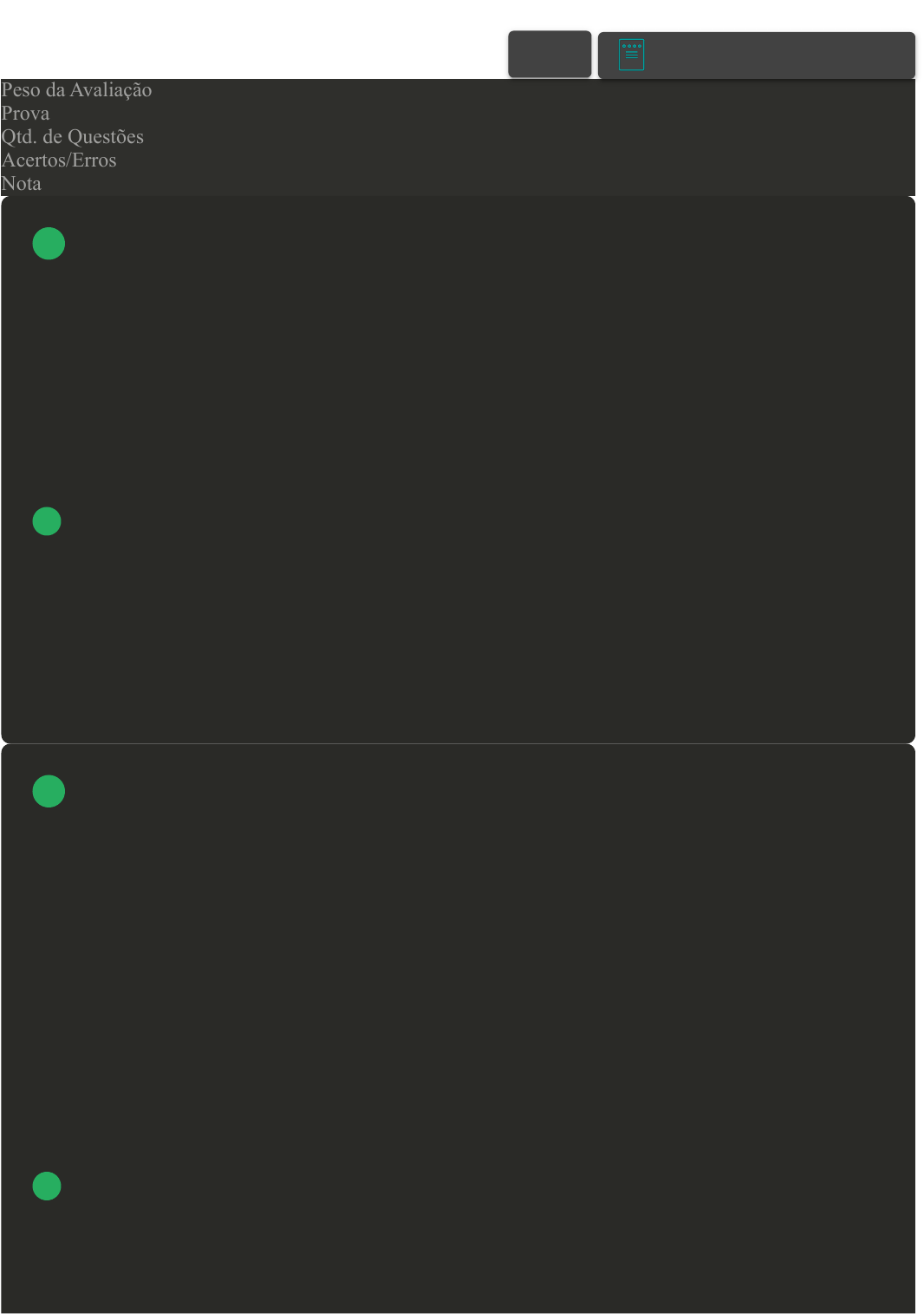 <p>Prova Impressa</p><p>GABARITO | Avaliação I - Individual (Cod.:955419)</p><p>Peso da Avaliação 2,00</p><p>Prova 81919273</p><p>Qtd. de Questões 10</p><p>Acertos/Erros 10/0</p><p>Nota 10,00</p><p>Paciente do sexo feminino, 45 anos de idade, apresentou os seguintes resultados para o hemograma:</p><p>Hemácias = 4.000.000/mm3 Hemoglobina = 10 g/dL Hematócrito = 30% V.C.M. = 75 fL H.C.M. =</p><p>25 pg C.H.C.M. = 33,3 g/dL R.D.W. = 14%. De acordo com o hemograma, classifique as alterações</p><p>morfológicas dos eritrócitos dessa paciente, depois, classifique V para as sentenças verdadeiras e F</p><p>para as falsas:</p><p>( ) Hemácias normociticas e normocromicas.</p><p>( ) Hemácias microciticas e hipocromicas.</p><p>( ) Hemácias macrocíticas e hipercromicas .</p><p>( ) Hemácias microciticas e hipercromicas.</p><p>Assinale a alternativa que apresenta a sequência CORRETA:</p><p>A F - V - F - F.</p><p>B V - F - F - F.</p><p>C F - F - F - V.</p><p>D F - F - V - F.</p><p>Para avaliar o funcionamento das células hematopoiéticas geralmente é solicitado exame de</p><p>mielograma, que é feito através de uma punção aspirativa da medula óssea. Segundo a bula do</p><p>fabricante Laborclin, em 2018, a técnica para esfregaços de medula (May Grunwald-Giemsa) segue</p><p>um modo de preparo. Com base no procedimento de preparação do esfregaço de medula óssea,</p><p>ordene os itens a seguir:</p><p>I- Escorrer o metanol e cobrir o esfregaço com o corante de May Grunwald puro, homogeneizar e</p><p>deixar atuar durante 3 minutos.</p><p>II- Lavar a lâmina cuidadosamente com água destilada e deixar secar.</p><p>III- Preparar o esfregaço com o fragmento de medula coletado e fixar o material cobrindo a lâmina</p><p>com metanol e deixar atuar por 3 minutos.</p><p>IV- Cobrir a lâmina com a mistura de Giemsa (15 partes de corante para 10 partes de água destilada),</p><p>homogeneizar e deixar atuar por 12-15 minutos.</p><p>V- Adicionar 1 mL de água destilada, homogeneizar e deixar atuar por 1 minuto e escorrer o corante</p><p>sem lavar a lâmina.</p><p>Assinale a alternativa que apresenta a sequência CORRETA:</p><p>A III - I - V - IV - II.</p><p>B I - III - IV - II - V.</p><p>C III - IV - I - V - II.</p><p>VOLTAR</p><p>A+ Alterar modo de visualização</p><p>1</p><p>2</p><p>10/05/2024, 16:20 Avaliação I - Individual</p><p>about:blank 1/5</p><p>D II - III - I - V - IV.</p><p>Paciente do sexo masculino, 27 anos de idade, apresentou os seguintes resultados para hemograma:</p><p>Hemácias = 4,98 milhões/mm3 Hemoglobina = 14,6 g/dL Hematócrito = 42,6% V.C.M. = 91,1 fL</p><p>H.C.M. = 31,1 pg C.H.C.M. = 34,2 g/dL R.D.W. = 13%. De acordo com o hemograma, classifique as</p><p>alterações morfológicas dos eritrócitos desse paciente, depois, classifique V para as sentenças</p><p>verdadeiras e F para as falsas:</p><p>( ) Hemácias normocíticas e normocrômicas.</p><p>( ) Hemácias microciíicas e hipocrômicas.</p><p>( ) Hemácias macrocíticas e hipercrômicas.</p><p>( ) Hemácias microcíticas e hipercrômicas.</p><p>Assinale a alternativa que apresenta a sequência CORRETA:</p><p>A F - V - F - F.</p><p>B F - F - F - V.</p><p>C V - F - F - F.</p><p>D F - F - V - F.</p><p>O ferro executa muitas funções importantes no corpo. É envolvido primeiramente em transferência do</p><p>oxigênio dos pulmões aos tecidos. Contudo, o ferro igualmente joga um papel no metabolismo como</p><p>um componente de algumas proteínas e enzimas. Com base no exposto, analise as sentenças a seguir:</p><p>I- O tecido que mais consome ferro no organismo é a medula óssea e as hemácias.</p><p>II- O ferro é de extrema importância para o processo de maturação da linhagem eritroide na</p><p>eritropoiese.</p><p>III- A transferritina é a responsável por realizar o transporte do ferro para a circulação.</p><p>IV- No interior do eritroblasto, a mitocôndria usa o ferro para síntese de Heme e de clusters Fe-S.</p><p>Assinale a alternativa CORRETA:</p><p>A Somente a sentença I está correta.</p><p>B As sentenças I, II, III e IV estão corretas.</p><p>C Somente a sentença III está correta.</p><p>D Somente a sentença II está correta.</p><p>Poiquilocitose é um termo que pode aparecer no hemograma e que significa aumento no número de</p><p>poiquilócitos circulantes no sangue, que são hemácias que possuem formato anormal.</p><p>3</p><p>4</p><p>5</p><p>10/05/2024, 16:20 Avaliação I - Individual</p><p>about:blank 2/5</p><p>FONTE DA IMAGEM: https://www.flickr.com/photos/hematologia/3805762464/. Acesso em: 18 jun.</p><p>2021.</p><p>Com base na imagem em anexo, assinale a alternativa CORRETA:</p><p>A Estomátocitos.</p><p>B Dacriócitos.</p><p>C Codócitos.</p><p>D Drepanócitos.</p><p>O ferro é um mineral presente em diversos alimentos e de extrema importância para o organismo.</p><p>Sobre o papel do ferro, analise as sentenças a seguir:</p><p>I- O ferro (Fe2+) é encontrado nas carnes vermelhas e que é bem absorvido pelo organismo.</p><p>II- A hemoglobina adere a menor quantidade de ferro, e o restante migra para as proteínas que jogam</p><p>para a ferritina e hemossiderina.</p><p>III- O ferro (Fe³+) é encontrado nas verduras, grãos e cereais, porém é uma absorção mais lenta, pois</p><p>o organismo precisa convertê-lo para o Fe²+ pela ação enzimática da acidez presente no pH do</p><p>estômago.</p><p>Assinale a alternativa CORRETA:</p><p>A As sentenças I e II estão corretas.</p><p>B As sentenças I e III estão corretas.</p><p>C As sentenças II e III estão corretas.</p><p>D Somente a sentença II está correta.</p><p>É um parâmetro laboratorial que avalia o percentual de ocupação de um eritrócito em um grau de</p><p>volume total da circulação sanguínea, além de ajudar a medir um valor proporcional a molécula de</p><p>hemoglobina ali circulante.</p><p>Assinale a alternativa CORRETA que apresenta o parâmetro laboratorial descrito:</p><p>A</p><p>6</p><p>7</p><p>10/05/