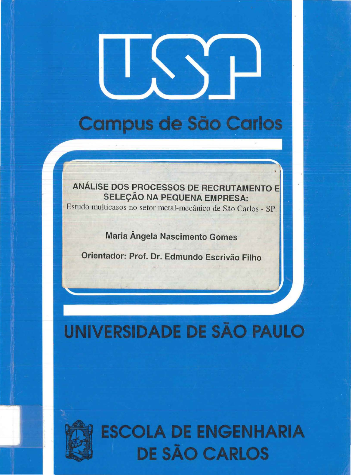 <p>ANÁLISE DOS PROCESSOS DE RECRUTAMENTO</p><p>SELEÇÃO NA PEQUENA EMPRESA:</p><p>Estudo multicasos no setor metal-mecânico de São Carlos- SP.</p><p>Maria Ângela Nascimento Gomes</p><p>Orientador: Prof. Dr. Edmundo Escrivão Filho</p><p>UNIVERSIDADE DE SÃO PAULO</p><p>ESCOLA DE ENGENHARIA DE SÃO CARLOS</p><p>PÓS-GRADUAÇÃO EM ENGENHARIA DE PRODUÇÃO</p><p>Serviço de Pós-Gradução EESC/USP</p><p>EXEMPLAR REVISADO.,,</p><p>· . Q5 / 4.1J / CfJ Data de entrada no Serv1ço .................... ~ .. .</p><p>ANÁLISE DOS PROCESSOS DE RECRUTAMENTO E</p><p>SELEÇÃO NA PEQUENA EMPRESA:</p><p>Estudo multicasos no setor metal-mecânico de São Carlos - SP</p><p>Maria Ângela do Nascimento Gomes</p><p>Autora</p><p>Dissertação apresentada à Escola de</p><p>Engenharia de São Carlos - USP, como parte</p><p>dos requisitos para obtenção do título de Mestre</p><p>em Engenharia de Produção.</p><p>Prof. Doutor Edmundo Escrivão Filho</p><p>Orientador</p><p>São Carlos - 2000</p><p>CIIIL \ c : f . f f: '(.</p><p>Cutt. j/\ 1</p><p>G633a</p><p>Gomes, Maria Ângela do Nascimento</p><p>Análise dos processos de recrutamento e seleção na</p><p>pequena e mpresa ~ estudo multicasos no setor meta</p><p>mecânico de São Carl os - SP I Maria Ângela do</p><p>Nascimento Gomes . -- São Carlos, 2000 .</p><p>Dissertação (Mestrado) -- Escola de Engenharia de</p><p>São Carlos-Universidade de São Paulo, 2000 .</p><p>Área : Engenharia de Produção .</p><p>Orientador : Prof . Dr . Edmundo Escrivão Filho .</p><p>1 . Recrutamento de pessoal . 2 . Seleção de pessoal .</p><p>3 . Pequenas empresas . I . Título .</p><p>~~Nossos corações precisam conhecer o mundo da razão,</p><p>e a razão tem de ser orientada por um coração informado"</p><p>Bruno Bettelheim.</p><p>DEDICATÓRIA</p><p>Aos amores de minha vida,</p><p>FRANCISCO E MAR/NA.</p><p>AGRADECIMENTOS</p><p>Ao professor Doutor Edmundo Escrivão Filho, em especial, pela orientação</p><p>fornecida e empenho dispensado durante a realização do trabalho, o que</p><p>certamente permitiu a conclusão com êxito desta pesquisa.</p><p>Aos diretores e coordenadores de recursos humanos das empresas pesquisadas</p><p>pelas informações cedidas e pelo apoio demonstrado.</p><p>Aos professores do Departamento de Engenharia de Produção e aos funcionários</p><p>que direta ou indiretamente colaboraram para a realização deste trabalho.</p><p>À minha querida mãe, Maria José. em especial, e à toda minha família pelo</p><p>grande valor dado aos estudos, que formaram a base do conhecimento em</p><p>minha vida.</p><p>A o meu pai, Antônio Hipólito (in memorian). que sempre esteve presente em</p><p>meus pensamentos.</p><p>Aos colegas contemporâneos de curso de pós - graduação pela convivência</p><p>agradável.</p><p>Ao meu grande companheiro, Francisco e à minha querida filha, Marina, pelo</p><p>carinho, compreensão e incentivo demonstrados durante esta fase de minha</p><p>vida.</p><p>SUMÁRIO</p><p>LISTA DE FIGURAS</p><p>LISTA DE QUADROS E TABElA i i</p><p>RESUMO iií</p><p>ABSTRACT i v</p><p>1 - INTRODUÇÃO</p><p>1 .1 Caracterização do tema da pesquisa 03</p><p>1 .2 Formulação do problema da pesquisa 06</p><p>1 .3 Objetivos da pesquisa 07</p><p>1.3.1 Objetivo geral 07</p><p>1.3.2 Objetivos específicos 07</p><p>1 .4 Justificativa da pesquisa 08</p><p>2- A FUNÇÃO RECURSOS HUMANOS</p><p>2.1 Introdução 09</p><p>2.2 Conceitos importantes 10</p><p>2.3 Evolução histórica das relações humanas 11</p><p>2.4 Surgimento da função rec ursos humanos 13</p><p>2.5 Evolução da função recur.:;os humanos 14</p><p>2.61mportância da função recursos humanos 15</p><p>2. 7 Políticas de recursos humanos 16</p><p>2.8 O perfil dos profissionais de recursos humanos 20</p><p>2.9 Perspectivas futuras paras os recursos humanos 23</p><p>•I</p><p>2.1 O Cenário dos recursos humanos no Brasil 26</p><p>.,</p><p>3- RECRUTAMENTO E SELEÇÃO DE RECURSOS HUMANOS</p><p>3.1 Introdução 28</p><p>3.2 Recrutamento de recursos humanos 30</p><p>3.2.1 Conceito de recrutamento 30</p><p>3.2.2 Fases do recrutamento 31</p><p>3.2.3 Tipos de recrutamento 32</p><p>3.2.4 Principais fontes de recrutamento 37</p><p>3.3 Seleção de recursos humanos 38</p><p>3.3.1 Conceito de seleção 38</p><p>3.3.2 Importância da seleção de recursos humanos 39</p><p>3.3.3 Técnicas de seleção de recursos humanos 40</p><p>3.3.4 Vantagens da seleção de recursos humanos 42</p><p>3.3.5 Seleção e motivação 43</p><p>3.4 A qualificação e o novo perfil do trabalhador 44</p><p>3.5 Tendências para o recrutamento e seleção de recursos humanos 47</p><p>4 - A PEQUENA EMPRESA</p><p>4.1 Introdução</p><p>4.2 Definição e classificação da pequena empresa</p><p>4.3 A pequena empresa e suas especificidades</p><p>4.4.Setores que as pequenas empresas mais atuam</p><p>4.5 Vantagens e desvantagens da pequena empresa</p><p>4.6 Dificuldades enfrentadas pela pequena empresa</p><p>4.7 Principais contribuições da pequena empresa</p><p>4.8 Cenário da pequena empresa no Brasil</p><p>5 - RECRUTAMENTO E SELEÇÃO NA PEQUENA EMPRESA</p><p>49</p><p>51</p><p>53</p><p>55</p><p>56</p><p>58</p><p>62</p><p>63</p><p>5.1 Introdução 66</p><p>5.2 Importância dos recursos humanos na pequena empresa 68</p><p>5.3 Estrutura hierárquica dos recursos humanos na pequena empresa 69</p><p>5.4 Perfil do administrador de recursos humanos na pequena empresa</p><p>5.5 Recrutamento e seleção na pequena empresa</p><p>72</p><p>74</p><p>.,</p><p>5.6 Rotatividade e demissões na pequena empresa</p><p>5.7 A adequação do homem à função</p><p>6 - APRESENTAÇÃO DO TRABALHO DE CAMPO</p><p>6.1 Metodologia</p><p>6.2 Caracterização da pesquisa</p><p>6.3 Questões da pesquisa</p><p>6.4 Variáveis da pesquisa</p><p>6.5 Técnica de coleta de dados</p><p>6.6 Registro dos dados coletados</p><p>6. 7 .Descrição das empresas</p><p>6.7.1 Empresa A</p><p>6. 7.2 Empresa B</p><p>6. 7.3 Empresa C</p><p>6.7.4 Empresa D</p><p