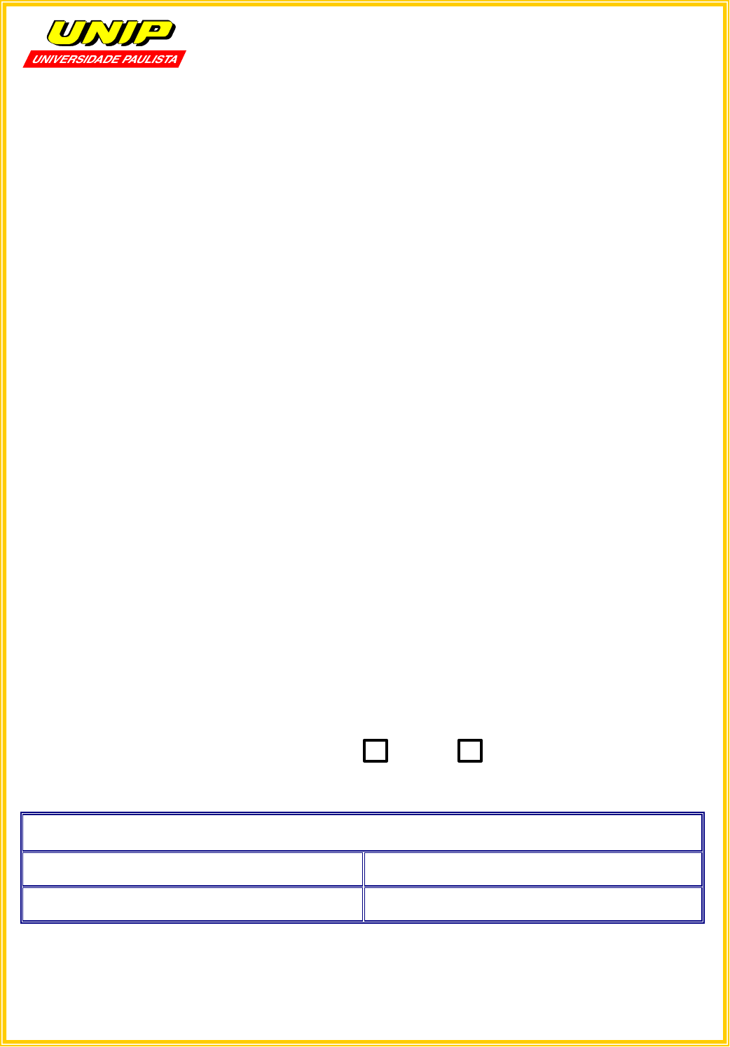 <p>Instituto de Ciências Exatas e Tecnológicas - ICET</p><p>Campus Sorocaba</p><p>ENGENHARIA ____________________</p><p>ATIVIDADES COMPLEMENTARES</p><p>Dependência e/ou Adaptação: Sim Não</p><p>Código da Disciplina: __________ Semestre: __________</p><p>Nome:</p><p>RA.: Turma:</p><p>Carga Horária: Nota:</p><p>Engenharia Civil, Engenharia Mecânica,</p><p>Engenharia de Produção Mecânica, e</p><p>Engenharia de Controle e Automação -</p><p>10º Semestre</p><p>Atividades Complementares</p><p>➢ O QUE SÃO ATIVIDADES COMPLEMENTARES</p><p>➢ OBJETIVOS DAS ATIVIDADES COMPLEMENTARES</p><p>➢ CONTEÚDOS GERAIS</p><p>➢ PONTUAÇÕES DAS ATIVIDADES COMPLEMENTARES</p><p>➢ ORIENTAÇÕES – ELABORAÇÃO DE RELATÓRIOS</p><p>(este guia é exclusivamente para o aluno entender a disciplina Atividades Complementares e não deve ser</p><p>entregue junto com a Ficha de Atividades Complementares)</p><p>Nome:</p><p>Número: Turma</p><p>O QUE SÃO ATIVIDADES COMPLEMENTARES?</p><p>As Atividades Complementares são componentes curriculares que possibilitam o</p><p>reconhecimento, por avaliação de habilidades, conhecimentos e competências do aluno, inclusive</p><p>adquiridas fora do ambiente escolar, incluindo a prática de estudos e atividades independentes,</p><p>transversais, opcionais e de interdisciplinaridade. Estas atividades serão desenvolvidas</p><p>especialmente nas relações com o mundo do trabalho e com as ações de extensão junto à</p><p>comunidade.</p><p>Produções bibliográficas, visitas a centros culturais, visitas técnicas, palestras, simpósios,</p><p>cursos e seminários, leituras, participação em projetos sociais e frequência a peças teatrais e mostras</p><p>cinematográficas fazem parte das Atividades Complementares.</p><p>OBJETIVOS DAS ATIVIDADES COMPLEMENTARES:</p><p>• Complementar a formação profissional, cultural e cívica do aluno por intermédio da realização</p><p>de atividades extracurriculares obrigatórias, presenciais ou à distância.</p><p>• Contribuir para que a formação do futuro egresso seja generalista, humanista, crítica e</p><p>reflexiva.</p><p>• Despertar o interesse dos alunos para temas sociais, ambientais e culturais.</p><p>• Estimular a capacidade analítica do aluno na argumentação de questões e problemas.</p><p>• Auxiliar o aluno na identificação e resolução de problemas, com uma visão ética e humanista.</p><p>• Incentivar o aluno na participação de projetos e ações sociais.</p><p>CONTEÚDOS GERAIS:</p><p>- Produções técnicas, culturais, bibliográficas e artísticas.</p><p>- Visitas a museus, exposições, centros culturais e feiras.</p><p>- Visitas técnicas.</p><p>- Participação em palestras, simpósios, cursos e seminários.</p><p>- Leituras: livros, artigos técnicos, atualidades.</p><p>- Participação em projetos e ações sociais, além de atividades de cunho comunitário.</p><p>- Frequência em peças teatrais e mostras cinematográficas.</p><p>- Programas de nivelamento.</p><p>- Programa de monitoria.</p><p>“HORAS MÍNIMAS” EXIGIDAS PARA APROVAÇÃO: 100 HORAS</p><p>OBSERVAÇÕES IMPORTANTES:</p><p>• TODAS AS ATIVIDADES DEVEM SER RELATADAS NA “FICHA DE ATIVIDADES</p><p>COMPLEMENTARES”.</p><p>• A FICHA DE ATIVIDADES COMPLEMENTARES SÓ PODERÁ SER ENTREGUE</p><p>PESSOALMENTE PELO PRÓPRIO ALUNO, EM DATA INDICADA PELA NA COORDENAÇÃO DO</p><p>CURSO E O ALUNO TEM QUE ASSINAR A LISTA DE PRESENÇA NO ATO DA ENTREGA;</p><p>• TODOS OS RESUMOS DEVEM SER MANUSCRITOS. NÃO SERÃO ACEITOS RESUMOS</p><p>“PRONTOS” OBTIDOS DA INTERNET OU DE OUTRA FONTE DE CONSULTA.</p><p>PONTUAÇÃO – ATIVIDADES COMPLEMENTARES – ICET</p><p>Engenharias - 10º Semestre</p><p>LEITURAS:</p><p>LIVRO (com apresentação de resumo): 03 HORAS</p><p>* ARTIGOS CIENTÍFICOS (com apresentação de resumo): 04 HORAS</p><p>ARTIGOS DE JORNAIS (com apresentação de resumo): 02 HORAS</p><p>ARTIGOS DE REVISTAS (com apresentação de resumo): 02 HORAS</p><p>* ARTIGOS: CIENTÍFICOS</p><p>1) Artigos obtidos em periódicos acessados através das bases de dados da UNIP (EBSCO HOST, IEEE</p><p>XPLORE, WILEY INTERSCIENCE, SciELO, PORTAL CAPES E BIBLIOTECAS DIGITAIS). Áreas</p><p>sugeridas para pesquisa: Tecnologias emergentes; Projetos eletrônicos; Eletrônica analógica e digital;</p><p>Controle e servomecanismos; Robótica; Qualidade; Gestão em projetos; Vibração Mecânica; e/ou</p><p>temas relacionados aos planos de ensino de cada curso.</p><p>2) Deverá ser anexado uma cópia do(s) artigo(s) utilizado(s).</p><p>CURSOS EXTRACURRICULARES</p><p>Realizados em empresas (vale a carga horária do curso, limitado a 60 HORAS)</p><p>FILMES:</p><p>CINEMA (com apresentação da resumo e comprovante de entrada): 02 HORAS</p><p>DOCUMENTÁRIOS (com apresentação de resumo e comprovante): 02 HORAS</p><p>DVD (com apresentação de resumo e comprovante): 02 HORAS</p><p>* Anexar as cópias das capas.</p><p>PALESTRAS:</p><p>UNIP: 02 HORAS</p><p>EXTERNAS (com apresentação de comprovante de presença): 02 HORAS.</p><p>EXPOSIÇÕES:</p><p>Com apresentação de comprovante original de entrada e fotos (ACOMPANHADO DE</p><p>RESUMO): 04 HORAS</p><p>FEIRAS:</p><p>Com apresentação de comprovante original de entrada e fotos (ACOMPANHADO DE</p><p>RESUMO): 04 HORAS</p><p>VISITAS A MUSEUS:</p><p>Com apresentação de comprovante original de entrada e fotos (ACOMPANHADO DE</p><p>RESUMO): 02 HORAS</p><p>PEÇAS TEATRAIS:</p><p>Com apresentação de comprovante original de entrada e resumo: 02 HORAS</p><p>BANCAS DE TCC (TRABALHO DE CONCLUSÃO DE CURSO)</p><p>Com apresentação de comprovante original e resumo: 02 HORAS</p><p>BANCAS DE MESTRADO E DOUTORADO</p><p>Com apresentação de comprovante original e resumo: 04 HORAS</p><p>INICIAÇÃO CIENTÍFICA</p><p>Com apresentação de comprovante original e resumo: 04 HORAS</p><p>MONITORIA</p><p>Com apresentação de comprovante original e resumo: 04 HORAS</p><p>INTERCÂMIBIO</p><p>Com apresentaç