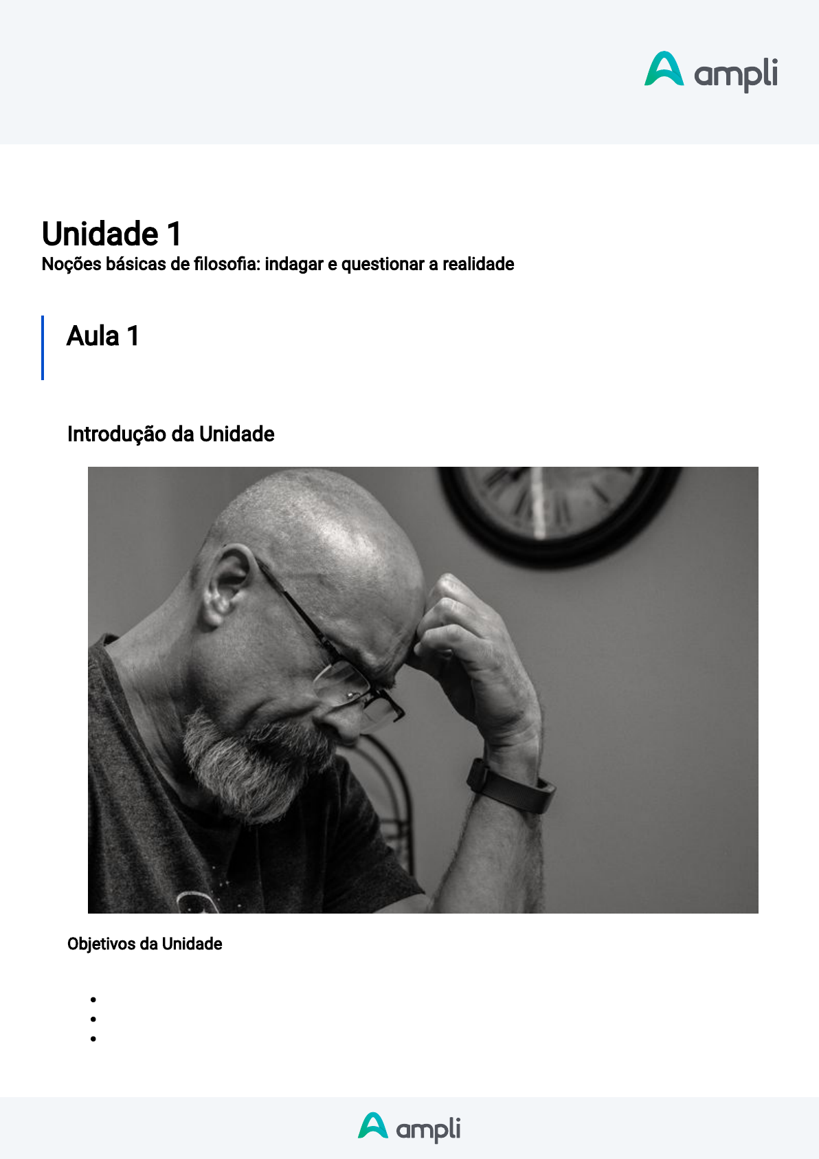 <p>Disciplina</p><p>Introdução à Filosofia</p><p>Unidade 1</p><p>Noções básicas de �loso�a: indagar e questionar a realidade</p><p>Aula 1</p><p>Senso Comum</p><p>Introdução da Unidade</p><p>Objetivos da Unidade</p><p>Ao longo desta Unidade, você irá discutir as noções básicas da �loso�a.</p><p>de�nir o que é senso comum e suas características;</p><p>discutir a origem da Filoso�a e os principais pensadores da Antiguidade;</p><p>demonstrar aspectos que de�nem a ciência.</p><p>Disciplina</p><p>Introdução à Filosofia</p><p>Olá, estudante!</p><p>Possivelmente você já ouviu falar das meninas lobo, Amala e Kamala, encontradas, em 1920, nas</p><p>proximidades de uma �oresta na Índia. Supõe-se que elas haviam se afastado de seus pais e,</p><p>embrenhando-se na �oresta, foram “raptadas” por uma espécie de lobo que tem proximidade de</p><p>convivência com humanos. Desse modo, com o passar do tempo, elas adaptaram-se à vida com</p><p>os lobos. Esse caso é interessante, pois ilustra o quanto somos fruto da educação, do contexto,</p><p>da cultura etc., a que nos encontramos inseridos. Segundo relatos, essas meninas não falavam,</p><p>apenas rosnavam, não caminhavam de modo ereto, comiam carne crua colocadas no chão e</p><p>sem usar as mãos, uivavam para lua, não choravam e nem riam e não tinham nenhuma</p><p>expressão facial.</p><p>Não somos totalmente determinados pelos elementos externos, mas, com certeza, somos</p><p>in�uenciados parcialmente, em maiores ou menores graus. Nossa infância, nossa família, nossa</p><p>escola, nossos amigos etc., tudo isso repercute em nosso modo de ser. A primeira repercussão</p><p>se dá pelo senso comum, contudo, essa modalidade de conhecimento não é a única. A ela se</p><p>somam visões religiosas, �losó�cas e cientí�cas, resultando em um amálgama de visões de</p><p>mundo que, embora muito presentes, nem sempre são percebidas.</p><p>Nessa primeira unidade trabalharemos, portanto, as seguintes modalidades de conhecimento:</p><p>senso comum (δόξα [doxa], para os gregos) e �loso�a e ciência (επιστήμη [episteme], para os</p><p>gregos), mostrando que o conhecimento transforma os nossos pensamentos e acaba nos</p><p>transformando também, assim como toda a nossa vida.</p><p>Para isso, nos valeremos da contribuição do �lósofo norte-americano Hilary Putnam (1926-2016)</p><p>que problematiza a questão do conhecimento, da verdade e da certeza por meio de uma �cção</p><p>conhecida como Cérebros em cuba (PUTNAM,1992, p. 28). Ele propõe imaginarmos que</p><p>transplantes de cérebros já fossem possíveis e, assim como acontece com transplantes de</p><p>corações, seria necessário preservá-los em condições especiais até o momento da cirurgia. Os</p><p>cérebros, então, �cariam nas cubas de um laboratório cientí�co e, para não parar o seu</p><p>funcionamento/pensamento, seriam ligados a terminais nervosos (circuitos elétricos) que</p><p>criariam, por intermédio de um programa de computador, uma realidade virtual. Desse modo,</p><p>esses cérebros não teriam consciência de que se encontram nessa situação e jamais se</p><p>reconheceriam vivendo uma realidade virtual e não real. E já imaginou se você fosse esse</p><p>cérebro? Como você pode ter absoluta certeza de que você não se encontra nessa situação?</p><p>Videoaula: introdução</p><p>Este conteúdo é um vídeo!</p><p>Para assistir este conteúdo é necessário que você acesse o AVA pelo</p><p>computador ou pelo aplicativo. Você pode baixar os vídeos direto no aplicativo</p><p>para assistir mesmo sem conexão à internet.</p><p>Assista o vídeo de introdução à Filoso�a.</p><p>Disciplina</p><p>Introdução à Filosofia</p><p>Introdução da Aula</p><p>Qual é o foco da aula?</p><p>Nesta aula, você re�etirá sobre o senso comum.</p><p>Objetivos gerais de aprendizagem</p><p>Ao longo desta aula, você irá:</p><p>relatar o que é conhecimento e suas modalidades;</p><p>demonstrar as características do senso comum;</p><p>interpretar o Mito da Caverna de Platão.</p><p>Situação-problema</p><p>Você sabia que, o planeta terra tem, aproximadamente, 4,5 bilhões de anos e que o ser humano, o</p><p>Homo Sapiens, deve ter surgido entre 100 e 150 mil anos apenas? E que somente há 38 mil anos</p><p>o ser humano aprendeu a falar? Ou seja, durante dois terços da existência da nossa espécie nós</p><p>não nos comunicávamos verbalmente. O que, do ponto de vista anatômico-�siológico, está</p><p>relacionado à ausência do osso hioide.</p><p>Disciplina</p><p>Introdução à Filosofia</p><p>Nesse sentido, o que é a fala? É uma vibração das ondas que chegam até ao nosso ouvido e, por</p><p>meio da ação de três ossos – martelo, bigorna e estribo – sobre a cóclea, damos sentidos a</p><p>essas ondas. Portanto, poderíamos cogitar que jamais saberemos se todos nós ouvimos do</p><p>mesmo jeito, sabemos apenas que damos o mesmo sentido às vibrações que chegam aos</p><p>nossos ouvidos. Isso nos ajuda a percebermos que até mesmo as coisas mais básicas, aquelas</p><p>que nos parecem inquestionáveis, podem sim ser questionadas. Esse é um dos papéis da</p><p>�loso�a, questionar até mesmo o que parece óbvio. Como diz Paulo Ghiraldelli,</p><p>“é desbanalizar o banal” (GHIRALDELLI, 2019).</p><p>E mais, você já percebeu que as letras não têm som algum e nem signi�cado em si, mas que</p><p>somos nós que atribuímos sons e sentidos a elas? Já se deu conta de que elas não passam de</p><p>riscos ou sinais e que somente se tornam palavras quando as juntamos, as pronunciamos e as</p><p>associamos a objetos e realidades que são construídas na nossa mente e que fazemos isso há</p><p>apenas 6 mil anos?</p><p>O mesmo pode estar acontecendo com o mundo à nossa volta, ele pode não ter nenhum sentido</p><p>(o chamado niilismo nietzschiano – nihil em latim é nada, nenh