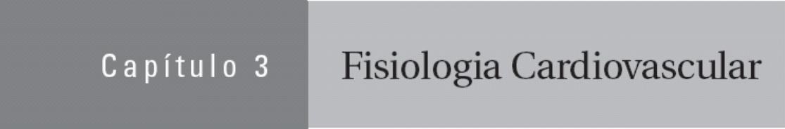 <p>I.</p><p>■■</p><p>■1.2.</p><p>3.4.</p><p>5.6.</p><p>7.</p><p>8.</p><p>9.</p><p>II.</p><p>1.</p><p>■■</p><p>■</p><p>■</p><p>Circuito do sistema cardiovascular (Figura 3.1)</p><p>A. O débito cardíaco do coração esquerdo é igual ao débito cardíaco do coração direito.</p><p>O débito cardíaco do lado esquerdo do coração corresponde ao fluxo sanguíneo sistêmico O</p><p>débito cardíaco do lado direito do coração corresponde ao fluxo sanguíneo pulmonar.</p><p>B. Direção do fluxo sanguíneo</p><p>O sangue flui ao longo do seguinte trajeto: Dos pulmões para o átrio esquerdo pela veia pulmonar</p><p>Do átrio esquerdo para o ventrículo esquerdo por meio da valva atrioventricular esquerda (valva</p><p>mitral) Do ventrículo esquerdo para a artéria aorta por meio da valva aórtica Da artéria aorta para</p><p>as artérias sistêmicas e os tecidos (i. e., cerebral, coronário, renal, esplâncnico, muscular</p><p>esquelético e cutâneo) Dos tecidos para as veias sistêmicas e as veias cavas superior e inferior</p><p>Das veias cavas (sangue venoso misto) para o átrio direito Do átrio direito para o ventrículo</p><p>direito por meio da valva atrioventricular direita (valva tricúspide) Do ventrículo direito para a</p><p>artéria pulmonar por meio da valva pulmonar Da artéria pulmonar para os pulmões, para sua</p><p>oxigenação</p><p>Hemodinâmica</p><p>A. Componentes da rede vascular sistêmica*</p><p>Artérias sistêmicas</p><p>Levam o sangue oxigenado até os tecidos Apresentam paredes espessas, com grande quantidade</p><p>de tecido elástico e músculo liso</p><p>Estão sob pressão alta</p><p>O volume sanguíneo contido nas artérias é denominado volume estressado.</p><p>100</p><p>2.</p><p>■■</p><p>■</p><p>■■</p><p>■</p><p>3.</p><p>■</p><p>■■</p><p>■</p><p>4.</p><p>■</p><p>5.</p><p>■</p><p>■■</p><p>FIGURA 3.1 Circuito do sistema cardiovascular.</p><p>Arteríolas</p><p>São os menores ramos das artérias Constituem o local de maior resistência no sistema</p><p>cardiovascular</p><p>Apresentam parede de músculo liso, que é extensamente inervada por fibras nervosas</p><p>autônomas A resistência arteriolar é regulada pelo sistema nervoso autônomo (SNA) São</p><p>encontrados receptores α1-adrenérgicos nas arteríolas das circulações cutânea, esplâncnica e</p><p>renal São encontrados receptores β2-adrenérgicos nas arteríolas do músculo esquelético.</p><p>Capilares</p><p>Apresentam as maiores áreas de superfície e de seção transversa total</p><p>Consistem em uma única camada de células endoteliais circundadas por uma lâmina basal</p><p>Têm paredes finas Constituem o local de trocas de nutrientes, água e gases.</p><p>Vênulas</p><p>São formadas pela fusão dos capilares.</p><p>Veias</p><p>Reúnem-se progressivamente para formar veias maiores. As veias de maior calibre, as veias</p><p>cavas superior e inferior, retornam o sangue ao coração Apresentam paredes finas Estão sob</p><p>101</p><p>■■</p><p>■</p><p>■</p><p>■</p><p>■</p><p>■</p><p>■</p><p>■■</p><p>■</p><p>■</p><p>pressão baixa</p><p>Contêm a maior proporção de sangue no sistema cardiovascular O volume sanguíneo</p><p>contido nas veias é denominado volume não estressado</p><p>Têm receptores α1-adrenérgicos.</p><p>B. Velocidade do fluxo sanguíneo</p><p>Pode ser expressa pela seguinte equação: v = Q/A</p><p>em que:</p><p>v = velocidade (cm/s)</p><p>Q = fluxo sanguíneo (mℓ/min)</p><p>A = área de seção transversa (cm2) A velocidade é diretamente proporcional ao</p><p>fluxo de sangue e inversamente proporcional à área transversal, em qualquer nível</p><p>do sistema cardiovascular Por exemplo, a velocidade do fluxo sanguíneo é maior</p><p>na aorta (área transversal pequena) do que na soma de todos os capilares (grande</p><p>área transversal). A menor velocidade do fluxo sanguíneo nos capilares possibilita</p><p>condições ideais para a troca de substâncias através da parede capilar.</p><p>C. Fluxo sanguíneo</p><p>Pode ser expresso pela seguinte equação:</p><p>em que:</p><p>Q = fluxo ou débito cardíaco (mℓ/min) ΔP = gradiente de pressão (mmHg) R =</p><p>resistência vascular periférica total (mmHg/mℓ/min) A equação para o fluxo</p><p>sanguíneo (ou débito cardíaco) é análoga à lei de Ohm para os circuitos elétricos (I</p><p>= V/R), em que o fluxo é análogo à corrente elétrica e a pressão é análoga à</p><p>voltagem O gradiente de pressão (ΔP) impulsiona o fluxo sanguíneo Por</p><p>conseguinte, o sangue flui de um local de alta pressão para outro de baixa pressão</p><p>O fluxo sanguíneo é inversamente proporcional à resistência dos vasos sanguíneos.</p><p>D. Resistência</p><p>A equação de Poiseuille resulta em fatores que modificam a resistência dos vasos sanguíneos.</p><p>em que:</p><p>R = resistência</p><p>102</p><p>■</p><p>■</p><p>■</p><p>1.</p><p>a.</p><p>■■</p><p>■</p><p>■</p><p>b.</p><p>■</p><p>■</p><p>■</p><p>2.</p><p>■■</p><p>■</p><p>a.</p><p>b.3.</p><p>η = viscosidade do sangue</p><p>l = comprimento do vaso sanguíneo r4 = raio do vaso sanguíneo elevado à quarta</p><p>potência A resistência é diretamente proporcional à viscosidade do sangue. Por</p><p>exemplo, o aumento da viscosidade, em consequência de um aumento do</p><p>hematócrito, aumentará a resistência e diminuirá o fluxo sanguíneo A resistência é</p><p>diretamente proporcional ao comprimento do vaso A resistência é inversamente</p><p>proporcional ao raio do vaso sanguíneo elevado à quarta potência. Essa relação é</p><p>de suma importância. Por exemplo, se o raio do vaso sanguíneo diminuir 2 vezes,</p><p>a resistência aumentará 16 (24) vezes, e, consequentemente, o fluxo sanguíneo</p><p>ficará 16 vezes menor.</p><p>Resistências em paralelo ou em série</p><p>A resistência em paralelo é ilustrada pela circulação sistêmica. Cada 