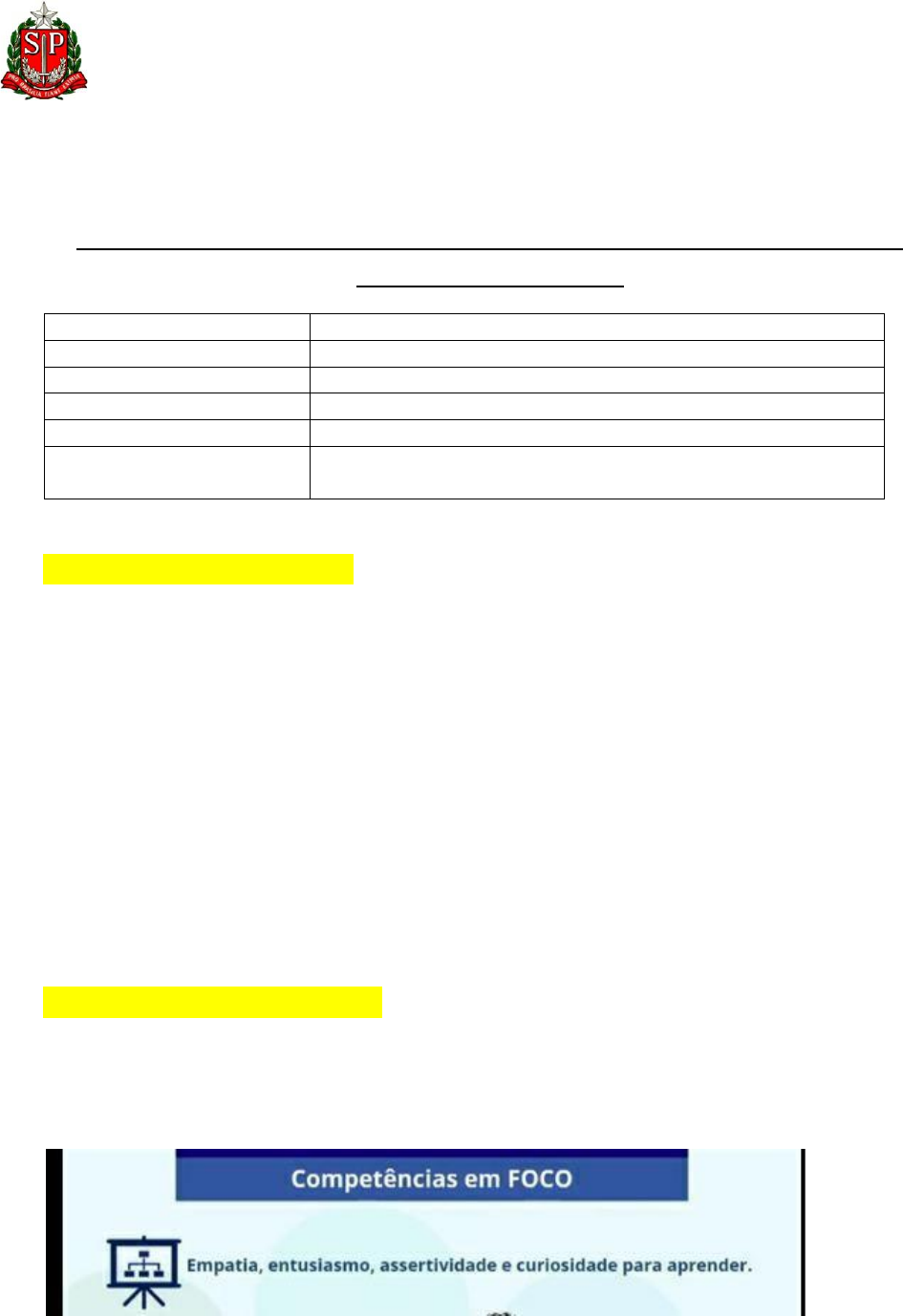 <p>GOVERNO DO ESTADO DE SÃO PAULO</p><p>SECRETARIA DE ESTADO DA EDUCAÇÃO</p><p>DIRETORIA DE ENSINO- REGIÃO MAUÁ</p><p>E.E. José Daneil Silveira</p><p>ROTEIRO DE ESTUDOS E ATIVIDADES PARA PERÍODO DE ENSINO REMOTO-</p><p>ENSINO FUNDAMENTAL</p><p>COMPONENTE CURRICULAR Projeto de vida</p><p>PROFESSOR (A) Elizabete Cruz da Silva Friolani</p><p>TURMAS 7º A, B</p><p>PERÍODO DE REALIZAÇÃO 03/05/2021 à 16/05/2021</p><p>CONTEÚDO Quando tudo começou: Minha Biografia</p><p>HABILIDADE - Compreender a singularidade e o reconhecimento de si por</p><p>meio da história de vida.</p><p>ROTEIRO DE ESTUDOS:</p><p>1) Acompanhar as aulas de matemática pelo aplicativo do centro de mídias</p><p>de SP e no canal cultura educação 2.3;</p><p>2) Anotar a data da aula e o tema com suas observações e exercícios.</p><p>3) As devoluções das atividades serão pelo classroom do aplicativo cmsp</p><p>por meio de arquivos (fotos, Word ,pdf, entre outros).</p><p>4) As dúvidas serão discutidas no chat do aplicativo cmsp e no mural do</p><p>Google classroom.</p><p>ROTEIRO DE ATIVIDADES:</p><p>GOVERNO DO ESTADO DE SÃO PAULO</p><p>SECRETARIA DE ESTADO DA EDUCAÇÃO</p><p>DIRETORIA DE ENSINO- REGIÃO MAUÁ</p><p>E.E. José Daneil Silveira</p><p>QUANDO TUDO COMEÇOU: MINHA BIOGRAFIA</p><p>GOVERNO DO ESTADO DE SÃO PAULO</p><p>SECRETARIA DE ESTADO DA EDUCAÇÃO</p><p>DIRETORIA DE ENSINO- REGIÃO MAUÁ</p><p>E.E. José Daneil Silveira</p><p>RESPOSTA:</p><p>E agora vamos conhecer a biografia de Nelson Mandela: A vida na</p><p>luta contra a segregação racial.</p><p>https://youtu.be/AgL3q2gCwEY</p><p>Vamos saber um pouco da vida do brasileiro João Cândido, o</p><p>almirante negro, que liderou uma rebelião contra castigos corporais</p><p>em navios da marinha do Brasil.</p><p>https://youtu.be/bEM-ysbTZ7g</p><p>Vimos duas histórias com trajetórias diferentes muito embora as</p><p>trajetórias de ambos são muito valorosas e importantes para</p><p>pensarmos que a nossa constante luta deve ser pela igualdade dos</p><p>direitos humanos.</p><p>https://youtu.be/AgL3q2gCwEY</p><p>https://youtu.be/bEM-ysbTZ7g</p><p>GOVERNO DO ESTADO DE SÃO PAULO</p><p>SECRETARIA DE ESTADO DA EDUCAÇÃO</p><p>DIRETORIA DE ENSINO- REGIÃO MAUÁ</p><p>E.E. José Daneil Silveira</p><p>GOVERNO DO ESTADO DE SÃO PAULO</p><p>SECRETARIA DE ESTADO DA EDUCAÇÃO</p><p>DIRETORIA DE ENSINO- REGIÃO MAUÁ</p><p>E.E. José Daneil Silveira</p><p>ESCREVA A SUA BIOGRAFIA NO SEU CADERNO! NÃO SE ESQUEÇA</p><p>DE COLOCAR O NOME E DEIXE FLUIR TODA A IMAGINAÇÃO QUE</p><p>EXISTE DENTRO DE VOCÊ-.</p><p>_</p><p>_</p><p>GOVERNO DO ESTADO DE SÃO PAULO</p><p>SECRETARIA DE ESTADO DA EDUCAÇÃO</p><p>DIRETORIA DE ENSINO- REGIÃO MAUÁ</p><p>E.E. José Daneil Silveira</p><p>II) Assista a aula do CMSP do dia 28/04/2021.</p><p>https://youtu.be/-HTy5fN7ECA</p><p>III) Realize a biografia de quem você conhece e admira e envie para o</p><p>e-mail: friolani@prof.educacao.sp.gov.br ou para o WhatsApp /</p><p>classroom.</p><p>RESPOSTA:</p><p>_</p><p>https://youtu.be/-HTy5fN7ECA</p><p>mailto:friolani@prof.educacao.sp.gov.br</p>