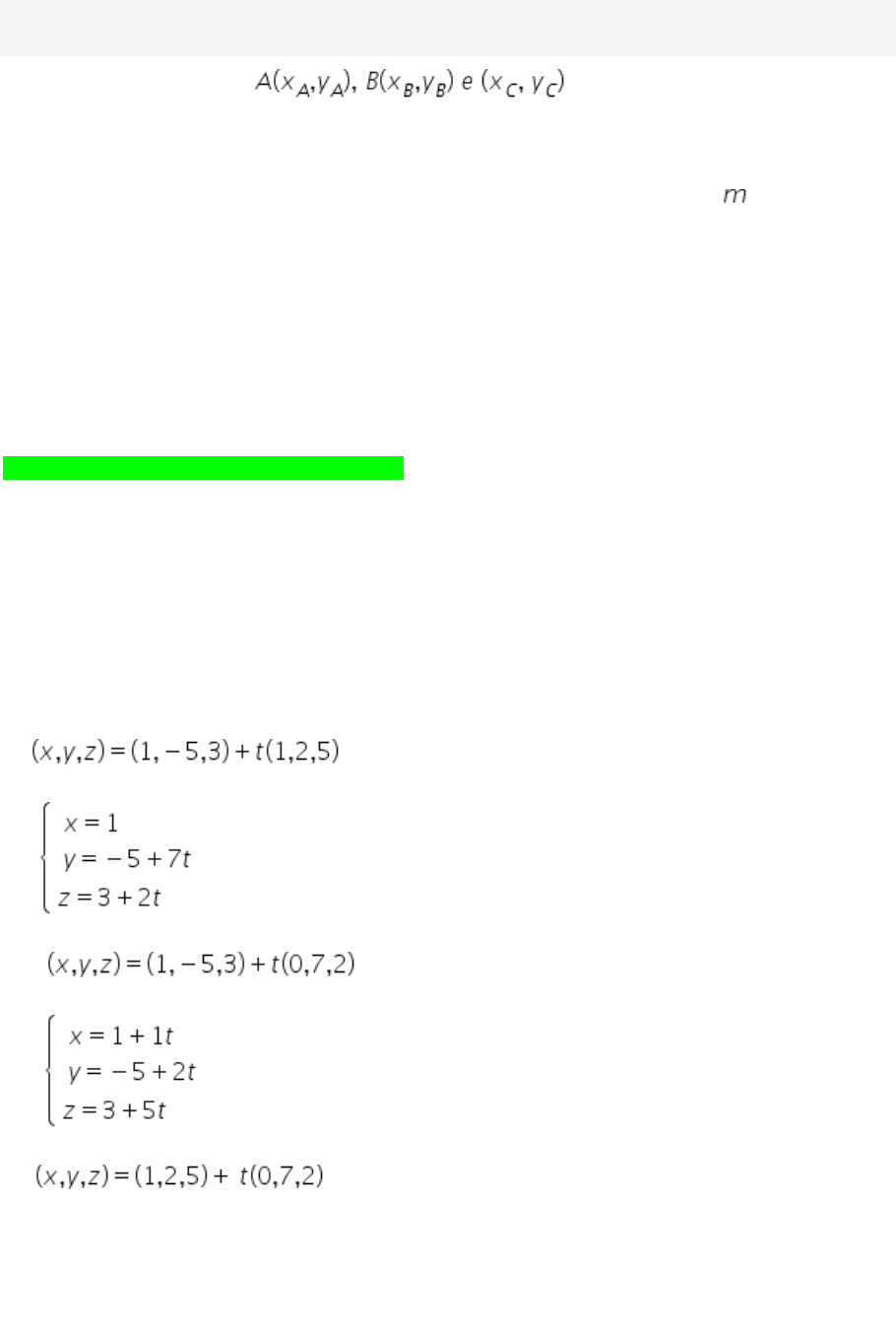 <p>Av1 - Geometria Analítica - UNOPAR</p><p>1) Três pontos podem estar alinhados,</p><p>ou seja, pertencendo à mesma reta. Em caso contrário,</p><p>esses três pontos são vértices de um triângulo. Desta</p><p>forma, determine quais são os valores para , de modo</p><p>que os pontos A (-3,7), B(m,m) e C (3,-2) sejam vértices</p><p>de um triângulo.</p><p>Agora, assinale a alternativa correta:</p><p>Alternativas:</p><p>a) m deve ser diferente de zero.</p><p>b) m deve ser positivo.</p><p>c) m deve ser diferente de um. Correta.</p><p>d) m deve ser negativo.</p><p>e) m deve ser um número racional.</p><p>2)Adutoras são tubulações que levam água de uma fonte até o reservatório, e há menos de</p><p>problemas geográficos sempre seguem em linha reta. Considere que uma adutora foi</p><p>colocada dentro de um rio no ponto (1,-5,3) e que ela atinja o reservatório em linha reta no</p><p>ponto (1,2,5) Quanto a representação do caminho percorrido, foram apresentadas algumas</p><p>equações:</p><p>I-</p><p>II -</p><p>III -</p><p>IV -</p><p>v -</p><p>É correto apenas o que se af irma em.</p><p>Alternativas:</p><p>a) I e IV</p><p>b) II e III Correta.</p><p>c)I</p><p>d)II</p><p>e) V</p><p>3) O ângulo entre duas retas é igual ao ângulo formado pelos vetores paralelos a estas retas.</p><p>Desta forma, o cosseno do ângulo é determinado através da expressão</p><p>. Assim, determine o valor de para que seja de o ângulo</p><p>entre os planos: e .</p><p>Agora. assinale a alternativa correta:</p><p>Alternativas:</p><p>a)2 e 5.</p><p>b)3 e 7.</p><p>c)1 e 7. Correta.</p><p>d)5 e 9.</p><p>e)3 e 5.</p><p>4) Determinar a equação geral do plano que passa pelos pontos e</p><p>e é paralelo ao vetor .</p><p>Agora, assinale a alternativa correta:</p><p>Alternativas:</p><p>a) 2x + 8y + 6z + 2 = 0</p><p>b) 2x + 8y +6z – 2 = 0 correta.</p><p>c) -2x + 8y + 6z + 2 = 0</p><p>d) 2x + 8y – 6z – 2 = 0</p><p>e) -2x + 8y + 6z – 2 = 0</p><p>5) Segundo a Geometria Analítica, dois planos podem se cruzar em uma reta desde que o</p><p>produto escalar entre respectivos vetores normais seja não-nulo. Sejam os planos</p><p>, e , sabendo que as normais podem ser</p><p>escritas como , e , podemos af irmar que:</p><p>I) Os planos e são paralelos.</p><p>II) Os planos e são ortogonais.</p><p>III) Os três planos se encontram no ponto P (3,-5,4).</p><p>É correto apenas o que se af irma em:</p><p>Alternativas:</p><p>a) I.</p><p>b) II.</p><p>c) I e III.</p><p>d) II e III. correta</p><p>e) I, II e III.</p>