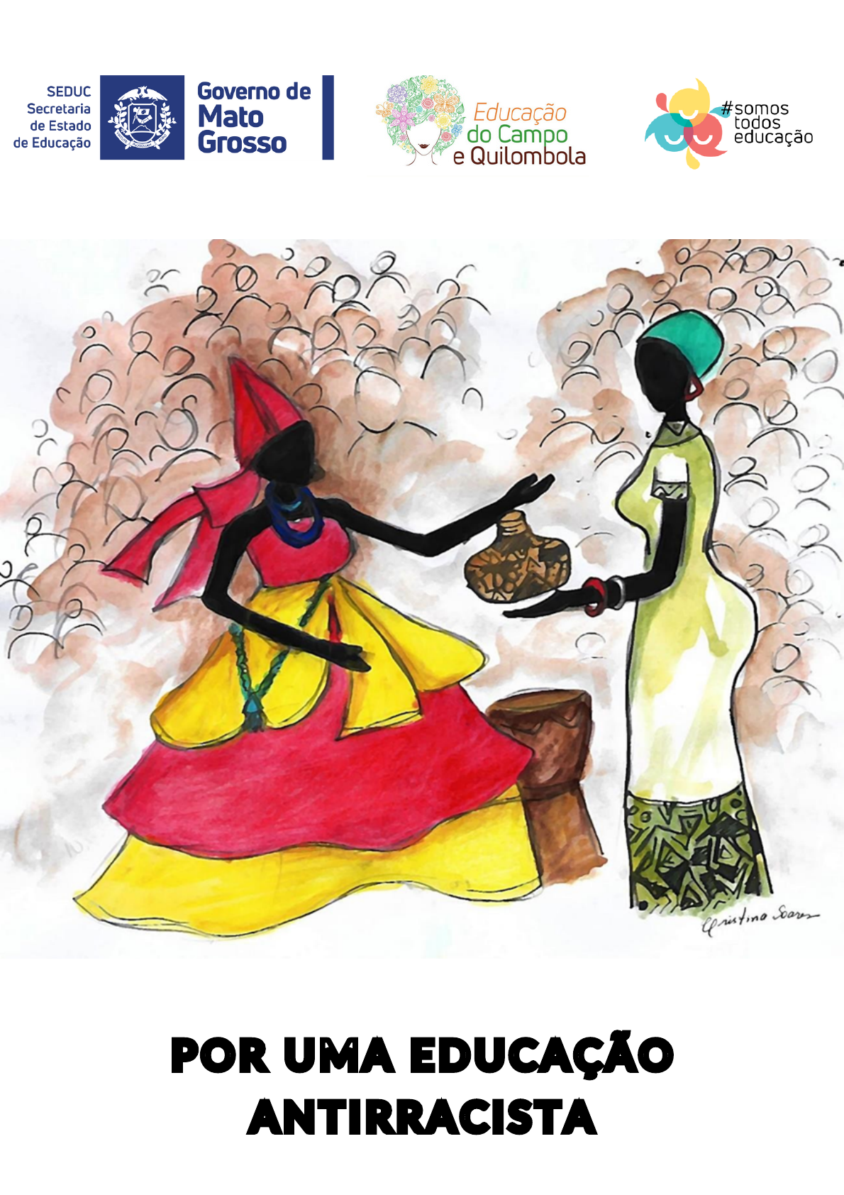 <p>POR UMA EDUCAÇÃO</p><p>ANTIRRACISTA</p><p>POR UMA EDUCAÇÃO</p><p>ANTIRRACISTA</p><p>Mauro Mendes</p><p>Governador</p><p>Otaviano Pivetta</p><p>Vice-governador</p><p>Alan Resende Porto</p><p>Secretário de Estado de Educação</p><p>Amauri Monge Fernandes</p><p>Secretário Adjunto Executivo</p><p>Mozara Zasso Spencer Guerreiro</p><p>Secretária Adjunta de Gestão Educacional</p><p>Andreia dos Reis Juiz</p><p>Superintendente de Diversidades</p><p>Déborah Luiza Moreira Santana Santos</p><p>Coordenadora de Educação do Campo e Quilombola</p><p>GOVERNO DO ESTADO DE MATO GROSSO</p><p>SECRETARIA DE ESTADO DE EDUCAÇÃO</p><p>SECRETARIA ADJUNTA DE GESTÃO EDUCACIONAL</p><p>SUPERINTENDÊNCIA DE DIVERSIDADES</p><p>COORDENADORIA DE EDUCAÇÃO DO CAMPO E QUILOMBOLA</p><p>https://www.escavador.com/sobre/2144864/mozara-zasso-spencer</p><p>Ainoã Rodrigues Chaves</p><p>Alvaro Júnio Bertipaglia da Silva</p><p>Amanda Bruno Nogueira Borges Ribeiro</p><p>Ângela Regina Lana Pinto</p><p>Cleuza Aparecida de Santana Gonçalves</p><p>Déborah Luiza Moreira Santana Santos</p><p>Fernando Rogério Domingos de Siqueira</p><p>Gizelle Prado Silva Fonseca</p><p>Janayna Greyce da Silva</p><p>Luzinéia Guimarães Alencar</p><p>Monika Michelly Aparecida Nunes</p><p>MATO GROSSO. Secretaria de Estado de Educação de Mato Grosso. POR</p><p>UMA EDUCAÇÃO ANTIRRACISTA. Cuiabá: SEDUC/MT, 2023.</p><p>Ângela Regina Lana Pinto</p><p>Déborah Luiza Moreira Santana Santos</p><p>Janayna Greyce da Silva</p><p>Alvaro Júnio Bertipaglia da Silva</p><p>Ângela Regina Lana Pinto</p><p>Cristina Soares</p><p>Suely Dulce de Castilho</p><p>SUMÁRIO</p><p>APRESENTAÇÃO 6</p><p>NOSSAS DIRETRIZES 7</p><p>UM BREVE PANORAMA SOBRE A RAIZ DA</p><p>DESIGUALDADE ÉTNICO-RACIAL 9</p><p>VAMOS COMPREENDER UM POUCO DA POLÍTICA QUE</p><p>INSTITUIU O ESTUDO DAS QUESTÕES ÉTNICO- RACIAIS</p><p>NA ESCOLA? 12</p><p>AFINAL, O QUE CHAMAMOS DE DIVERSIDADE ÉTNICO-</p><p>RACIAL? 15</p><p>CONVIDAMOS A GESTÃO ESCOLAR E OS EDUCADORES</p><p>A IMPLEMENTAREM CURRÍCULO</p><p>ANTIRRACISTA 15</p><p>VAMOS CONHECER COMO RACISMO ORGANIZA AS</p><p>RELAÇÕES SOCIAIS NO PAÍS? 16</p><p>VAMOS PENSAR SOBRE OS ESTIGMAS POR TRÁS DE</p><p>CERTOS VOCABULÁRIOS? 16</p><p>INICIATIVAS QUE PODEM AUXILIAR NO DEBATE DA</p><p>TEMÁTICA ÉTNICO-RACIAL 17</p><p>VAMOS FALAR SOBRE PROTAGONISMO DE MULHERES</p><p>NEGRAS E INDÍGENAS? 18</p><p>QUE TAL CONHECER ALGUNS PESQUISADORES E</p><p>INTELECTUAIS NEGROS E INDÍGENAS? 18</p><p>REFERÊNCIAS 19</p><p>Como parte das Políticas Públicas Educacionais do Estado de Mato</p><p>Grosso, a Seduc-MT, por meio de investimentos em formação para</p><p>professores e materiais didáticos específicos sobre a temática da cultura</p><p>afro-brasileira e indígena, está fortalecendo as práticas pedagógicas no</p><p>âmbito das unidades escolares, potencializando o que preconiza a Lei de</p><p>Diretrizes e Bases da Educação Brasileira (LDB) para a construção de um</p><p>estado de equidade racial.</p><p>Com este horizonte, o presente caderno está dentro do rol das ações</p><p>que a Seduc-MT tem desenvolvido para alcançar uma educação</p><p>democrática, que tem como um dos objetivos auxiliar a implementação</p><p>da cultura de um ensino antirracista. Ação que se soma a diversas outras</p><p>que a Secretaria Adjunta de Gestão Educacional (SAGE), por meio da</p><p>Superintendência de Diversidade (SUDI) e Superintendência de</p><p>Educação Básica (SUEB), tem realizado para concretização dos artigos</p><p>26A e 79B da Lei de Diretrizes e Bases da Educação (LDB).</p><p>A proposta deste material é inspirar os educadores e provocar</p><p>reflexões sobre a urgência de um trabalho pedagógico voltado para a</p><p>concreção da educação antirracista, com isso queremos dar visibilidade</p><p>às narrativas que foram ocultadas no processo histórico de colonização</p><p>APRESENTAÇÃO</p><p>Em comemoração aos 20 anos da</p><p>publicação da Lei 10.639/2003, a</p><p>Secretaria de Estado de Educação de</p><p>Mato Grosso (SEDUC-MT) estabeleceu</p><p>a meta de garantir o ensino de História</p><p>e Cultura Afro-brasileira, Africana e</p><p>Indígena em 100% das escolas do</p><p>Estado e assumiu o compromisso de</p><p>concretizar de fato a educação para as</p><p>relações étnico-raciais.</p><p>do nosso país, cujas raízes estão ligadas ao conceito de</p><p>colonialidade. Deste modo, convidamos os educadores para</p><p>mergulharem na temática e juntos construirmos uma sociedade</p><p>livre do racismo, em que a diversidade seja respeitada e acolhida</p><p>em todas as suas dimensões.</p><p>NOSSAS DIRETRIZES</p><p>Dado que é imprescindível a implementação de uma Política</p><p>Antirracista nas escolas para desvelar as distorções históricas e as</p><p>injustiças praticadas contra a população afrodescendentes e</p><p>indígena, propomos ampliar o olhar sobre as possibilidades</p><p>pedagógicas de colocarmos em prática as Leis 10.639/2003 e</p><p>11.645/2008 e fomentar o debate sobre as histórias de luta e</p><p>protagonismo destes povos, por meio da revalorização de seus</p><p>saberes e fazeres, e do fortalecimento de ações para combater o</p><p>racismo estrutural. Sendo assim, a Política Antirracista que a</p><p>SEDUC-MT está construindo prevê a realização de atividades de</p><p>sensibilização e formação dos profissionais de Educação das</p><p>Escolas Estaduais de Mato Grosso: gestores, professores e</p><p>estudantes (junto ao Grêmio Estudantil).</p><p>O objetivo da política é estimular ações pedagógicas de</p><p>reconhecimento e valorização das histórias e culturas dos afro-</p><p>brasileiros, dos africanos e dos povos indígenas, combater o</p><p>racismo, o preconceito e promover o debate sobre desigualdade</p><p>étnico-racial na escola. Além disso, sabemos que estabelecer as</p><p>bases de um ensino antirracista em nossas unidades escolares é um</p><p>dos princípios det