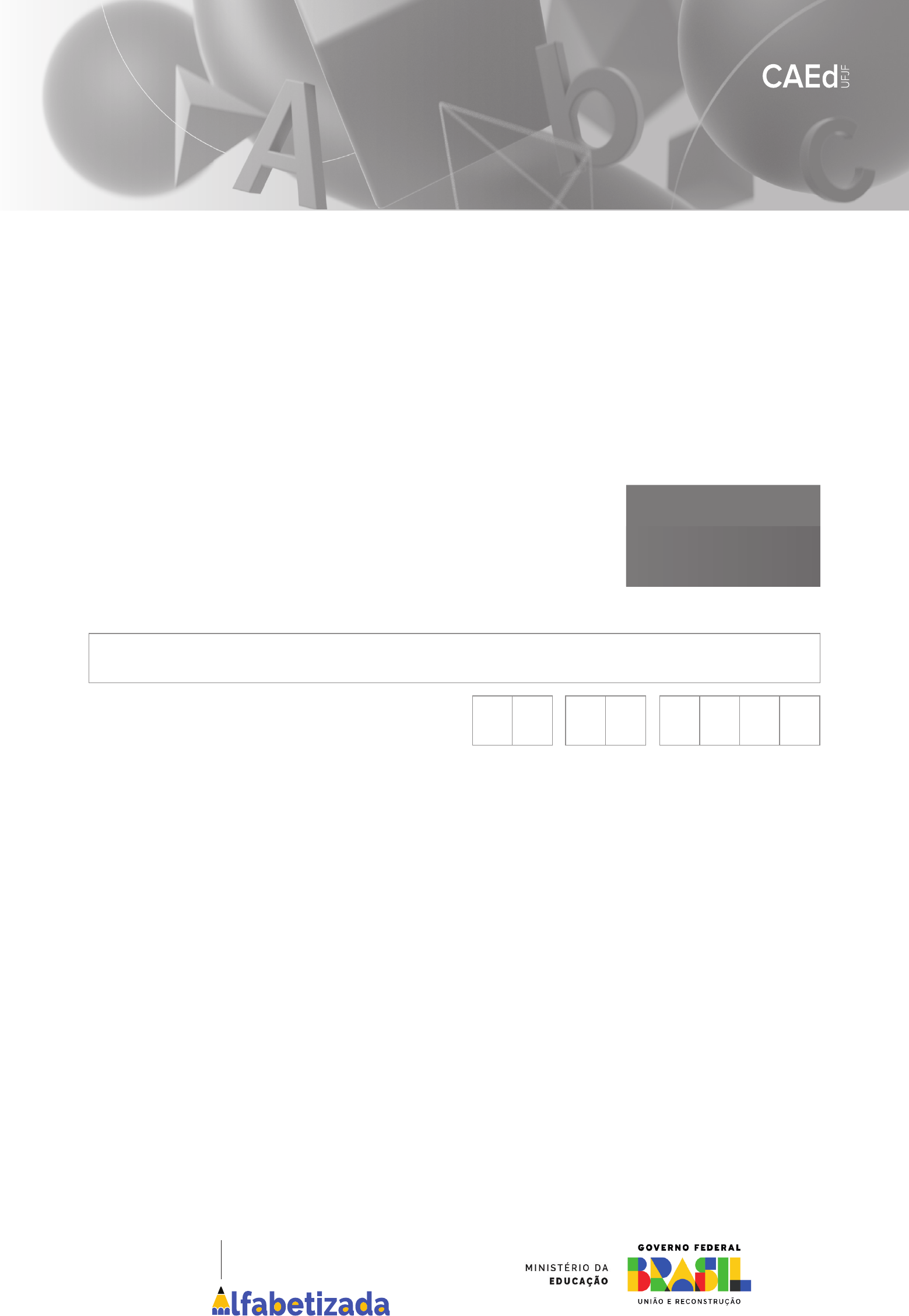 <p>CADERNO</p><p>Data de Nascimento</p><p>do(a) estudante</p><p>Nome do(a) estudante</p><p>E P 0 3 0 1</p><p>AVALIAÇÃO CONTÍNUA DA APRENDIZAGEM</p><p>CICLO II</p><p>Caro(a) estudante,</p><p>Você está participando da Avaliação Contínua da Aprendizagem Ciclo II - 2024.</p><p>Sua participação é muito importante para sabermos como está a nossa educação.</p><p>C Este caderno é composto de questões de Escrita.</p><p>C Responda com calma, procurando não deixar nenhuma questão em branco.</p><p>Bom teste!</p><p>2024</p><p>3º ano do Ensino Fundamental</p><p>ESCRITA</p><p>Criança</p><p>Compromisso</p><p>Nacional</p><p>BL01EP03_ALUNO</p><p>Questão 01 E00067272</p><p>Escreva a palavra que você ouviu.</p><p>EP0301</p><p>1</p><p>BL01EP03_ALUNO</p><p>Questão 02 E00067268</p><p>Escreva a palavra que você ouviu.</p><p>EP0301</p><p>2</p><p>BL01EP03_ALUNO</p><p>Questão 03 E00067264</p><p>Veja a cena abaixo.</p><p>Escreva uma frase contando o que acontece nessa cena.</p><p>EP0301</p><p>3</p><p>BL01EP03_ALUNO</p><p>Questão 04 E030266I7</p><p>Veja os quadrinhos abaixo.</p><p>Disponível em: https://bit.ly/41qVu0Z. Acesso em: 17 mar. 2023. Adaptado para fins didáticos.</p><p>Escreva uma história contando o que acontece nesses quadrinhos.</p><p>EP0301</p><p>4</p>
