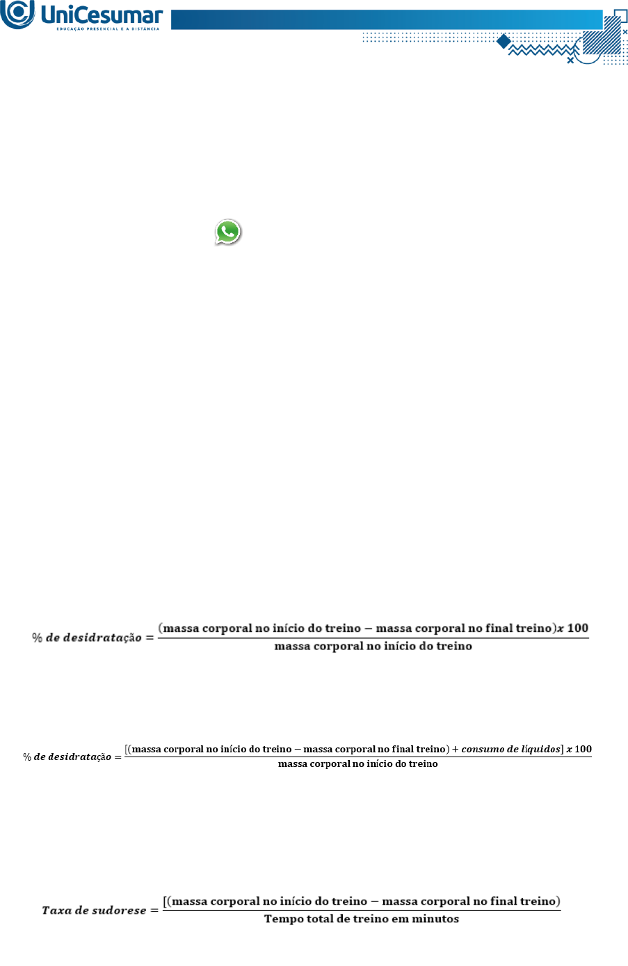 <p>Olá, aluno(a)! Está com dificuldade ou sem tempo para elaborar</p><p>esse MAPA? Iremos te ajudar!</p><p>Entre em contato</p><p>(63) 99129-5554</p><p>MAPA – NUT - NUTRIÇÃO ESPORTIVA - 53_2024</p><p>Hidratação e reposição hídrica em treinos e jogos de futebol</p><p>A prática esportiva do futebol envove ações esportivas de alta intensidade e longa duração</p><p>(dois tempos de 45 min) que resultam na perda de líquidos corporais via sudorese. A taxa</p><p>de sudorese, ou seja, a quantidade de suor eliminada pelo corpo durante a prática</p><p>esportiva, desempenha relação com o desempenho esportivo, bem como na saúde dos</p><p>atletas (Pereira; Oliveira; Bernardi, 2022). Durante os treinos e partidas de futebol, os</p><p>atletas podem perder uma quantidade significativa de líquidos devido à transpiração, que é</p><p>a principal forma de regulação térmica do corpo durante a atividade física (Silva et al.,</p><p>2011). As perdas hídricas, se não forem adequadamente repostas, podem levar o atleta a</p><p>um estado de desidratação, afetando negativamente a saúde e desempenho esportivo dos</p><p>atletas (Peterle et al., 2022).</p><p>A desidratação é mensurada pela seguinte fórmula:</p><p>Entretanto, quando o atleta ingere líquidos durante os treinos/competições, pode-se</p><p>mensurar a desidratação parcial da seguinte forma:</p><p>Outro ponto que também pode ser mensurado é a taxa de sudorese, utilizando a</p><p>seguinte fórmula:</p><p>Por isso, é indispensável que os treinadores estejam atentos à sua taxa de sudorese e</p><p>adotem estratégias adequadas de hidratação e reidratação. A reposição hídrica deve</p><p>ocorrer antes, durante e após os treinos/competições, levando em consideração fatores</p><p>como a intensidade, duração, temperatura e umidade (Carvalho; de Mara, 2010). Os</p><p>profissionais de nutrição esportiva e fisiologistas do exercício desempenham um papel</p><p>fundamental na orientação dos atletas quanto à quantidade e qualidade dos líquidos a</p><p>serem ingeridos, bem como na reposição de eletrólitos perdidos através da transpiração</p><p>(Machado-Moreira et al., 2006)</p><p>Estratégias personalizadas de hidratação, baseadas na taxa de sudorese e nas</p><p>necessidades individuais de cada jogador, são essenciais para garantir um desempenho</p><p>ótimo e prevenir a desidratação (Machado-Moreira et al., 2006; Carvalho; de Mara, 2010;</p><p>Silva et al., 2011; Peterle et al., 2022; Pereira, Oliveira; Bernardi, 2022). A compreensão da</p><p>taxa de sudorese, juntamente com a hidratação e reidratação adequadas tornam-se</p><p>indispensáveis para manutenção da saúde e performance dos atletas. A partir da hidratação</p><p>adequada e individualizada, os atletas podem manter o equilíbrio hidroeletrolítico</p><p>(manutenção ideal do nível de sais minerais, especialmente o sódio e potássio)</p><p>Somado aos pontos supradestacados, o entendimento sobre o equivalente metabólico da</p><p>tarefa (MET – metabolic equivalent task) permite ao nutricionista esportivo quantificar o</p><p>gasto energético dos treinos/competições. Um MET é definido como a taxa metabólica de</p><p>um indivíduo em repouso, que é aproximadamente igual ao consumo de oxigênio de 3,5 mL</p><p>por kg de massa corporal/min. Assim, se uma atividade tem um valor de MET de 4,0,</p><p>significa que o atleta está queimando energia a uma taxa quatro vezes maior do que em</p><p>repouso. Com base nas informações do gasto energético e dos substratos energéticos mais</p><p>utilizados (carboidratos e/ou lipídios) torna-se possível direcionar estratégias nutricionais</p><p>eficientes como pré, intra e pós-treino, caso necessário (ACSM, 2014)</p><p>O gasto energético do treino/jogo pode ser mensurado a partir da seguinte fórmula:</p><p>Considerando os aspectos relacionados a hidratação no futebol, responda as questões</p><p>abaixo baseando-se nas informações do atleta</p><p>Atleta profissional de futebol</p><p>Homem</p><p>Massa corporal: 70 kg</p><p>Massa corporal pós-jogo: 67 kg</p><p>Tempo total de jogo: 90 min</p><p>Ingestão total de isotônicos: 1,5 L</p><p>MET do jogo de futebol: 8,0</p><p>1) Calcule a taxa de desidratação do atleta:</p><p>2) Calcule a taxa de desidratação do atleta considerando uma ingestão de 500 mL de</p><p>isotônico no intervalo do primeiro tempo e 1000 mL ao término do jogo (considere a mesma</p><p>massa corporal inicial e final)</p><p>3) Calcule a taxa de sudorese considerando 90 min de partida</p><p>4) Calcule o gasto energético do jogo (2 tempos de 45 minutos) considerando um</p><p>equivalente metabólico da tarefa (MET) de 8,0.</p><p>Obs: considere a massa corporal do atleta no momento pré-jogo.</p><p>Para esta atividade, você pode realizar os cálculos em uma folha sulfite, e anexá-la como</p><p>imagem no campo indicado.</p><p>Todos os cálculos devem ser apresentados, incluindo fórmulas.</p><p>Na barra de ferramentas superior deste arquivo, clique em: INSERIR > IMAGENS e</p><p>procure em qual lugar de seu computador, a foto de sua resposta foi salva.</p><p>Ou, você ainda pode inserir as fórmulas no próprio documento, a partir de : Inserir></p><p>Equações.</p><p>Você pode utilizar os materiais disponíveis em sua sala do café para a realização desta</p><p>atividade, além de consultar os MDD da disciplina.</p>