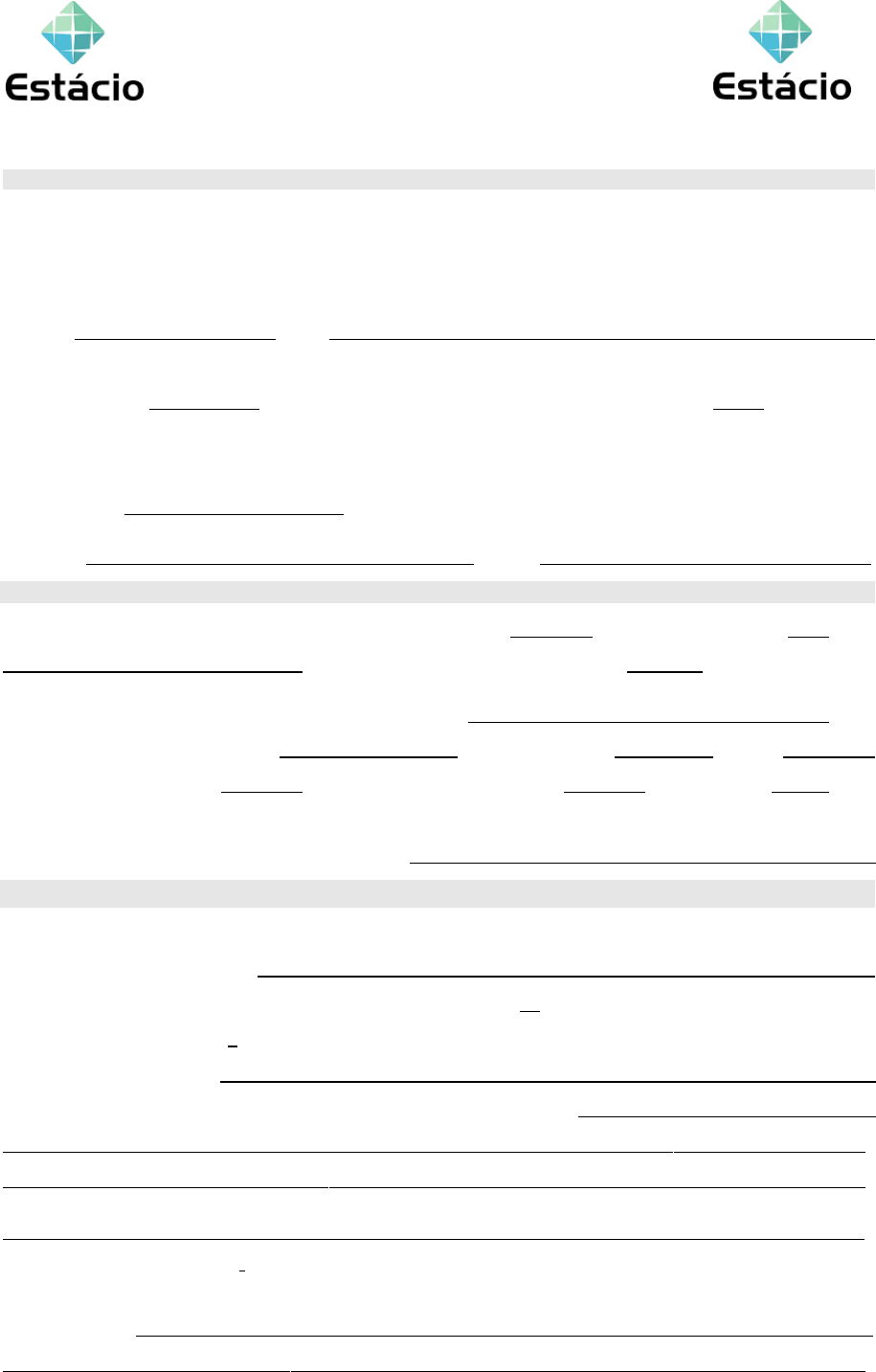 <p>CENTRO UNIVERSITÁRIO ESTÁCIO DE SERGIPE</p><p>CURSO DE NUTRIÇÃO</p><p>AMBULATÓRIO DE NUTRIÇÃO CLÍNICA</p><p>FICHA DE ANAMNESE NUTRICIONAL</p><p>DADOS DE IDENTIFICAÇÃO E HISTÓRIA SOCIAL</p><p>Nome:_____________________________________________________________________________________</p><p>NºPront.:_________ Data de nascimento:___/___/____ Idade:____ Sexo ( ) F ( ) M</p><p>Telefone: E-mail:</p><p>Estado conjugal: ( ) Solteiro(a) ( ) Casado(a) com companheiro(a) ( ) Separado(a) ( ) Viúvo(a)</p><p>Mora com alguém? ( )Sozinho. Se sim: N° de pessoas que mora na residência: ___</p><p>Escolaridade: ( ) Nunca frequentou, não sabe ler/escrever ( ) Nunca frequentou, sabe ler/escrever ( ) Fundamental</p><p>( ) Médio ( ) Superior ( ) Completo ( ) Incompleto</p><p>Renda Familiar:</p><p>Ocupação: Horário:</p><p>ESTILO DE VIDA</p><p>Tabagista: ( ) N ( ) S Se sim,Fumou/fuma há quanto tempo?________ Quantos cigarros por dia?</p><p>SE ex tabagista, há quanto tempo parou:</p><p>Bebidas alcoólicas: ( ) D ( ) S ( ) M ( ) N Tipo/Quantidade?</p><p>Atividade física: ( ) N ( ) S Tipo: Frequência/semana: Duração:</p><p>Horário que costuma dormir: h Horário que costuma acordar: h Sono: h/dia</p><p>Você considera que dorme bem? ( ) S ( ) Quase sempre ( ) Às vezes ( ) Quase nunca ( ) N</p><p>O local onde dorme é totalmente escuro? ( ) S ( ) N</p><p>DADOS CLÍNICOS E EXPECTATIVAS</p><p>Antecedentes familiares (irmão, pai, mãe e avós): ( ) DM ( ) HAS ( ) DCV ( ) CA ( ) Obesidade</p><p>( ) Hipercolesterolemia ( ) Outros</p><p>Doenças/problemas de saúde pessoais: ( ) HAS ( ) DM [tipo ] ( ) Obesidade ( ) Cardiopatias (</p><p>) Câncer ( ) IAM ( ) AVE [tipo ] ( ) Esteatose Hepática ( ) Dislipidemias ( ) Doenças Tireoidianas</p><p>( ) Doenças Renais Outras?</p><p>Faz uso de Medicamentos e/ou suplementos? ( ) Sim ( ) Não Qual(is)?</p><p>Objetivos da consulta:_________________________________________________________________________</p><p>Encaminhamento: ( ) Se sim, qual profissional? _____________ Demanda própria ( )</p><p>Já teve orientações anteriores sobre alimentação? ( ) S ( ) N Se sim, como foi a experiência?</p><p>Quem orientou?</p><p>CENTRO UNIVERSITÁRIO ESTÁCIO DE SERGIPE</p><p>CURSO DE NUTRIÇÃO</p><p>AMBULATÓRIO DE NUTRIÇÃO CLÍNICA</p><p>SEMIOLOGIA NUTRICIONAL</p><p>Cabeça: ( ) Dor de Cabeça ( ) Náuseas ( ) Vômitos ( ) Cabelos íntegros ( ) Despigmentação Capilar</p><p>( ) Queda de cabelo ( ) Cabelos ressecados ( ) Sem alterações visíveis</p><p>Mastigação: ( ) Normal ( ) Apresenta dificuldade ( ) Rápida ( ) Lenta</p><p>Deglutição: ( ) Disfagia ( ) Odinofagia ( ) Normal</p><p>Evacuações: ( ) Diária ( ) Alternada ( ) >2 dias ( ) >4 dias ( ) > semana</p><p>Usa laxante? ( ) N ( ) S Qual?</p><p>Classificação da Escala de Bistrol: ( ) I ( ) II ( ) III ( ) IV ( ) V ( ) VI ( ) VII</p><p>Urina: ( ) Anúria ( ) Oligúria ( ) Polaciúria ( ) Coloração escura ( ) Sente dor ao urinar (disúria)</p><p>DADOS DE CONSUMO E COMPORTAMENTO ALIMENTAR</p><p>Percepção sobre alimentação / Qual a sua relação com a comida:</p><p>Quem prepara suas refeições?</p><p>Preferências alimentares:</p><p>Aversões alimentares:</p><p>Alergias/Intolerâncias alimentares:</p><p>Ingestão hídrica? ______________________________________________________________</p><p>Ambiente alimentar___________________________________________________________________________</p><p>Mudanças no consumo alimentar aos finais de semana?</p><p>CENTRO UNIVERSITÁRIO ESTÁCIO DE SERGIPE</p><p>CURSO DE NUTRIÇÃO</p><p>AMBULATÓRIO DE NUTRIÇÃO CLÍNICA</p><p>R24h é habitual? ( ) N ( ) S</p><p>RECORDATÓRIO ALIMENTAR</p><p>REFEIÇÕES/</p><p>HORÁRIO</p><p>ALIMENTOS/PREPARAÇÕES</p><p>MARCA/SABOR</p><p>QUANTIDADE (MEDIDAS</p><p>CASEIRAS)</p><p>CENTRO UNIVERSITÁRIO ESTÁCIO DE SERGIPE</p><p>CURSO DE NUTRIÇÃO</p><p>AMBULATÓRIO DE NUTRIÇÃO CLÍNICA</p><p>EXAMES LABORATORIAIS</p><p>MARCADOR</p><p>Data</p><p>/ /</p><p>Data</p><p>/ /</p><p>Data</p><p>/ /</p><p>Data</p><p>/ /</p><p>Data</p><p>/ /</p><p>Data</p><p>/ /</p><p>Hemácias</p><p>Hemoglobina (HGB)</p><p>Hematócrito (HCT)</p><p>VCM</p><p>HCM</p><p>CHCM</p><p>RDW</p><p>Leucócitos Totais</p><p>Neutrófilos</p><p>Linfócitos</p><p>Plaquetas</p><p>Colesterol Total</p><p>LDL</p><p>HDL</p><p>VLDL</p><p>Triglicerídeos</p><p>Lipídeos Totais</p><p>Proteínas Totais</p><p>Albumina</p><p>Glicose de Jejum</p><p>Glicose pós-prandial</p><p>Hemoglobina glicada</p><p>AST / TGO</p><p>ALT / TGP</p><p>Gama GT</p><p>Cálcio iônico</p><p>25-hidroxi-vitamina D3</p><p>1,25-di-hidroxi-vitamina D3</p><p>Ferro sérico</p><p>Ferritina</p><p>Transferrina</p><p>Ácido Fólico</p><p>Ureia</p><p>Ácido Úrico</p><p>Creatinina</p><p>TSH</p><p>T3 Livre</p><p>T4 Livre</p><p>CENTRO UNIVERSITÁRIO ESTÁCIO DE SERGIPE</p><p>CURSO DE NUTRIÇÃO</p><p>AMBULATÓRIO DE NUTRIÇÃO CLÍNICA</p><p>EVOLUÇÃO ANTROPOMÉTRICA</p><p>DADOS ANTROPOMÉTRICOS</p><p>Data</p><p>/ /</p><p>Data</p><p>/ /</p><p>Data</p><p>/ /</p><p>Data</p><p>/ /</p><p>Data</p><p>/ /</p><p>Peso Atual (kg)</p><p>Peso Habitual (kg)</p><p>Estatura (cm)</p><p>Circunferência Pescoço (cm)</p><p>Circunferência Braço (cm)</p><p>Circunferência do Punho (cm)</p><p>Circunferência Cintura (cm)</p><p>Circunferência do abdômen (cm)</p><p>Circunferência da Panturrilha (cm)</p><p>DOBRAS CUTÂNEAS</p><p>Dobra Cutânea Bicipital (mm)</p><p>Dobra Cutânea Tricipital (mm)</p><p>Dobra Cutânea Subescapular (mm)</p><p>Dobra Cutânea Suprailíaca (mm)</p><p>∑ das Dobras Cutâneas*</p><p>IMC (kg/m²)</p><p>% de Adequação da CB</p><p>Circunferência Muscular do Braço (cm)</p><p>% de Adequação da CMB</p><p>Área de Gordura do Braço (cm²)</p><p>% de Adequação da DCT</p><p>Diagnósticos de Nutrição:</p><p>Resumo das evoluções:</p>