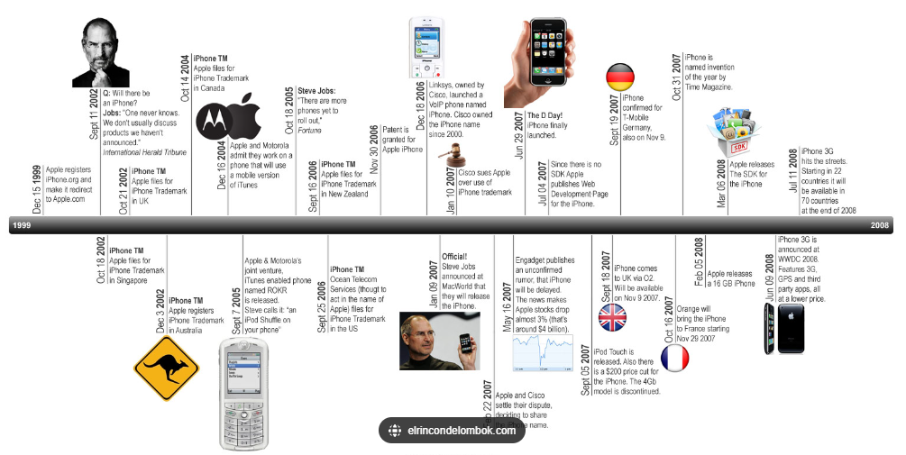 <p>TM iPhone is Apple files for 2007 named invention iPhone Trademark of the year by Canada owned by Steve Time Magazine Q: Will there be Cisco launched a an iPhone? "There are more iPhone phone named Jobs: "One never knows phones yet to confirmed for Cisco owned We don't usually discuss roll The Day! the name products we haven't Fortune Patent is Phone finally Germany since 2000 launched granted for also on Nov 9 Apple and Motorola International Herald Tribune Apple iPhone Phone 3G admit they work on a phone that will use iPhone TM Since there no Apple releases hits the streets Apple registers iPhone TM a mobile version Apple files for Cisco sues Apple SDK Apple The SDK for Starting 22 iPhone.org and Apple files for of Tunes Trademark over use of publishes Web the iPhone countries will make redirect Phone Trademark in New Zealand iPhone trademark Development Page be available in Apple.com UK for the 70 countries at the end of 2008 2008 Phone 3G is iPhone TM announced at Apple files for Apple Motorola's Engadget publishes WWDC 2008 iPhone Trademark joint TM Steve Jobs an unconfirmed iPhone comes Features 3G. enabled phone Ocean Telecom announced at in Singapore that iPhone to UK via 02 Apple releases a 16 GB iPhone GPS and third named ROKR Services (though to MacWorld that will be delayed Will be available party TM is released act the name of they will release The news makes on Nov 2007 at lower price Steve calls files for the iPhone Apple registers Apple stocks drop Orange will iPhone Trademark iPod Shuffle on Phone Trademark almost 3% (that's bring the iPhone in Australia your phone in US around $4 billion). to France starting Nov 29 2007 iPod Touch is released Also there is $200 price for the The 4Gb Apple and Cisco model discontinued settle their dispute, deciding to share elrincondelombok.com</p>