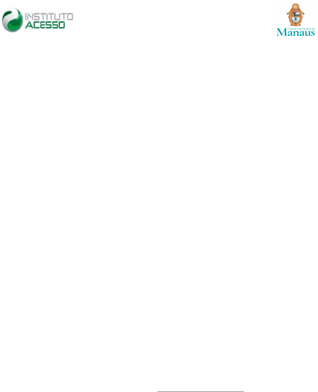 <p>CÂMARA MUNICIPAL DE MANAUS/AM</p><p>CONCURSO PÚBLICO Nº 001/2024</p><p>Página 1 de 24</p><p>EDITAL DE ABERTURA Nº 002/2024, DE 21 DE AGOSTO DE 2024</p><p>CONCURSO PÚBLICO PARA PROVIMENTO DE VAGAS E FORMAÇÃO DE CADASTRO DE RESERVA DA</p><p>CÂMARA MUNICIPAL DE MANAUS/AM</p><p>O Presidente da CÂMARA MUNICIPAL DE MANAUS/AM, no uso de suas atribuições legais, conferidas pelo art.</p><p>37, inc. II da Constituição da República Federativa do Brasil, pela Lei Orgânica do Município de Manaus/AM de</p><p>1990 e pelas Leis Municipais nº 552/2023 e suas alterações, por meio da Comissão Organizadora instituída pelo</p><p>Ato da Presidência nº 236/2024, torna pública a realização do Concurso Público nº 001/2024 da Câmara</p><p>Municipal de Manaus/AM para provimento de vagas e formação de cadastro de reserva para os cargos de Nível</p><p>Superior, mediante normas e condições estabelecidas neste edital.</p><p>1. DAS DISPOSIÇÕES PRELIMINARES</p><p>1.1. O concurso público será regido por este edital, seus anexos e eventuais retificações, sendo executado por</p><p>meio do INSTITUTO ACESSO DE ENSINO, PESQUISA, AVALIAÇÃO, SELEÇÃO E EMPREGO - INSTITUTO ACESSO.</p><p>1.2. Todas as datas relativas ao presente concurso público deverão ser acompanhadas pelos candidatos no</p><p>cronograma - anexo I deste edital, sem prejuízo das alterações realizadas no cronograma e demais avisos</p><p>publicados no site do INSTITUTO ACESSO, sendo definido como uma previsão de horário a partir das 17h.</p><p>1.3. A descrição das atribuições dos cargos consta no anexo II deste edital.</p><p>1.4. O conteúdo programático consta no anexo III deste edital.</p><p>1.5. Os itens deste edital, inclusive cronograma – anexo I, poderão sofrer eventuais alterações ou atualizações</p><p>enquanto não consumada a providência ou o evento que lhes disser respeito, circunstância que será publicada no</p><p>site do INSTITUTO ACESSO: www.institutoacesso.org.br, por meio de retificação do edital ou aviso.</p><p>1.6. Toda menção a horário, neste edital, terá como referência o horário de Brasília-DF, exceto a realização das</p><p>provas que obedecerá ao horário local, tendo em vista o fuso horário de 1 hora a menos em Manaus/AM.</p><p>1.7. Todas as etapas deste concurso público poderão ser realizadas em qualquer dia da semana, útil ou não,</p><p>com a prévia convocação dos candidatos. Não haverá segunda chamada para realização das etapas. O não</p><p>comparecimento na data e horário estabelecidos implicará na eliminação automática do candidato.</p><p>1.8. A inscrição do candidato implicará na concordância plena e integral com todos os termos deste edital e</p><p>deverá ser realizada exclusivamente no site www.institutoacesso.org.br.</p><p>1.9. É de exclusiva responsabilidade do candidato o acompanhamento de todas as publicações relativas a este</p><p>concurso público, no site www.institutoacesso.org.br, não podendo por essas, a qualquer tempo ou esfera, alegar</p><p>desconhecimento.</p><p>1.10. O concurso público destina-se ao preenchimento das vagas de Nível Superior indicadas neste edital,</p><p>obedecida a ordem classificatória, durante o prazo de validade previsto para este certame.</p><p>1.11. Todas os esclarecimentos relacionados que não estejam previstos no presente edital, deverão ser</p><p>encaminhados ao Serviço de Atendimento ao Candidato - SAC do INSTITUTO ACESSO, por meio do Fale Conosco</p><p>no site www.institutoacesso.org.br ou pelo e-mail saccmm@institutoacesso.org.br.</p><p>CÂMARA MUNICIPAL DE MANAUS/AM</p><p>CONCURSO PÚBLICO Nº 001/2024</p><p>Página 2 de 24</p><p>2. DOS CARGOS E DAS VAGAS EXISTENTES</p><p>2.1. Os cargos, o número de vagas, carga horária, remuneração e os requisitos são os seguintes:</p><p>2.1.1. NÍVEL SUPERIOR – ÁREA SAÚDE</p><p>2.1.2 – NÍVEL SUPERIOR – ÁREA ADMINISTRATIVA – AUDITOR DE CONTROLE INTERNO</p><p>2.1.3 - NÍVEL SUPERIOR – ÁREA ADMINISTRATIVA (DEMAIS CARGOS)</p><p>CÓD CARGO EFETIVO VAGAS AC¹ VAGAS PCD² CARGA</p><p>HORÁRIA</p><p>VENCIMENTO</p><p>INICIAL R$</p><p>Médico(Clínico Geral) 01 + CR4 - 20H R$ 7.000,00</p><p>Médico (Medicina do</p><p>Trabalho)</p><p>01 + CR4 - 20H R$ 7.000,00</p><p>Enfermeiro 01 + CR4 - 40H R$ 5.893,42</p><p>Enfermeiro (do</p><p>trabalho) 01 + CR4 - 40H R$ 5.893,42</p><p>Psicólogo 01 + CR4 - 40H R$ 5.893,42</p><p>Odontólogo 01 + CR4 - 30H R$ 5.893,42</p><p>Assistente Social 02 + CR4 - 40H R$ 5.893,42</p><p>CÓD CARGO EFETIVO VAGAS AC¹ VAGAS PCD² CARGA</p><p>HORÁRIA</p><p>VENCIMENTO</p><p>INICIAL R$</p><p>Auditor Controle Interno 02 + CR4 01 40H R$ 18.840,07</p><p>CÓD CARGO EFETIVO VAGAS AC¹ VAGAS PCD² CARGA</p><p>HORÁRIA</p><p>VENCIMENTO</p><p>INICIAL R$</p><p>Analista Legislativo</p><p>Municipal</p><p>12+ CR4 03 40H R$ 5.893,42</p><p>Biblioteconomista 01 + CR4 - 40H R$ 5.893,42</p><p>Contador 01 + CR4 - 40H R$ 5.893,42</p><p>Jornalista 02 + CR4 01 25H R$ 5.893,42</p><p>Revisor 03 + CR4 01 40H R$ 5.893,42</p><p>Redator 03 + CR4 01 40H R$ 5.893,42</p><p>CÂMARA MUNICIPAL DE MANAUS/AM</p><p>CONCURSO PÚBLICO Nº 001/2024</p><p>Página 3 de 24</p><p>2.1.4 – NÍVEL SUPERIOR – ÁREA INFORMÁTICA</p><p>AC¹= Ampla Concorrência</p><p>PCD² = Pessoa com Deficiência</p><p>CR4 Cadastro de Reserva</p><p>2.2. Os valores constantes na tabela são relativos à remuneração inicial e não incluem outros benefícios, conforme</p><p>Lei Municipal nº 552/2023, alterada a Lei Municipal n. 572/2024.</p><p>2.3. Os requisitos dos cargos de Nível Superior constantes neste edital, bem como suas atribuições são aquelas</p><p>que constam no anexo II:</p><p>3. DAS INSCRIÇÕES</p><p>3.1. Os candidatos, antes de realizarem a inscrição, devem se certificar que:</p><p>a) conhecem o edital, seus anexos e os métodos adotados em eventuais retificações;</p><p>b) atendam aos requisitos para participação nas etapas do concurso público, estabe