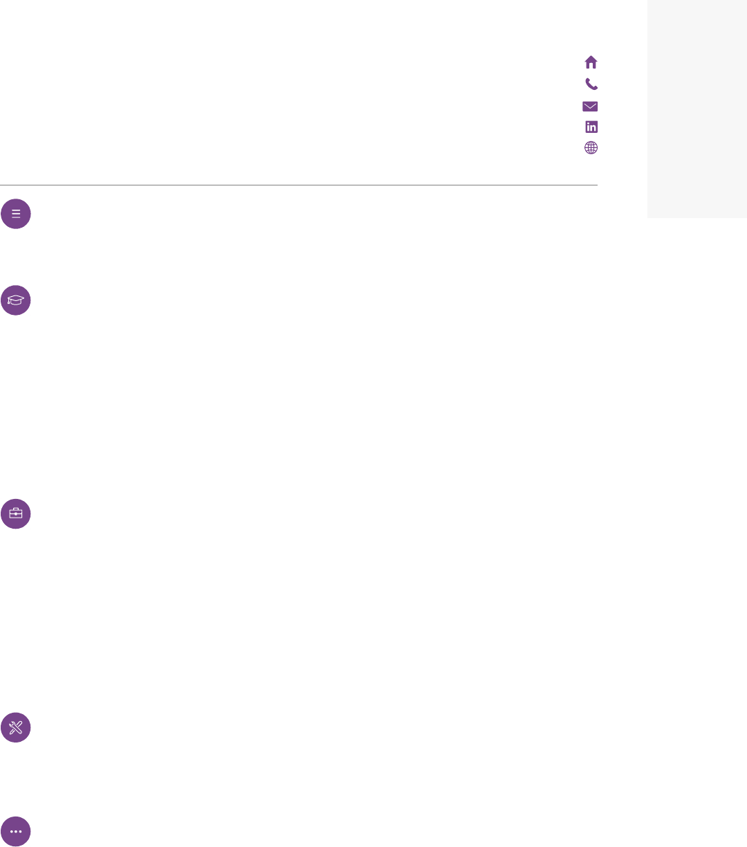 <p>First Name</p><p>Last Name</p><p>Address</p><p>Phone</p><p>Email</p><p>LinkedIn Profile</p><p>Twitter/Blog/Portfolio</p><p>Objective</p><p>To replace this text with you own, just click it and start typing. Briefly state your career objective, or summarize what makes you stand out. Use language from the job description as keywords.</p><p>Education</p><p>Degree Title | School</p><p>Dates From – To</p><p>It’s okay to brag about your GPA, awards, and honors. Feel free to summarize your coursework too.</p><p>Degree Title | School</p><p>Dates From – To</p><p>It’s okay to brag about your GPA, awards, and honors. Feel free to summarize your coursework too.</p><p>Experience</p><p>Job Title | Company</p><p>Dates From – To</p><p>Describe your responsibilities and achievements in terms of impact and results. Use examples, but keep in short.</p><p>Job Title | Company</p><p>Dates From – To</p><p>Describe your responsibilities and achievements in terms of impact and results. Use examples, but keep in short.</p><p>Skills</p><p>List your strengths relevant for the role you’re applying for</p><p>List one of your strengths</p><p>List one of your strengths</p><p>List one of your strengths</p><p>List one of your strengths</p><p>Activities</p><p>Use this section to highlight your relevant passions, activities, and how you like to give back. It’s good to include Leadership and volunteer experience here. Or show off important extras like publications, certifications, languages and more.</p><p>2</p>