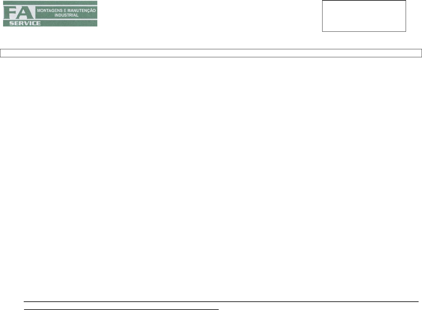 <p>Elaboração: 01/02/2012</p><p>Revisão: 000/2012</p><p>PT N° 011/12</p><p>PROCEDIMENTO DE TRABALHO – PT N° 011/2012</p><p>ASSUNTO: UTILIZACAO DE CESTO SUSPENSO POR GUINDASTE</p><p>OBJETIVO: OS PROCEDIMENTOS DE TRABALHO TÊM POR OBJETIVO, DESCREVER SITUAÇÕES DO AMBIENTE DE TRABALHO QUE</p><p>NECESSITAM DE CONTROLE OU MONITORAMENTO PARA SUA REALIZAÇÃO, ALÉM DE EXPOR AS MEDIDAS ADOTADAS PELA</p><p>EMPRESA PARA O CUMPRIMENTO DOS TRABALHOS DE ACORDO COM O ASSUNTO A SER TRATADO.</p><p>Aplicação: Todas as frentes de trabalho onde a empresa estiver prestando serviços.</p><p>Determinações e Responsabilidade: A aplicação deste procedimento é de responsabilidade do supervisor de obras e Segurança do</p><p>Trabalho.</p><p>Os Cestos suspensos são equipamentos regulamentados pelo anexo 12 na Norma Regulamentadora 12, contudo sua utilização na</p><p>empresa fica restrita a situações onde não houver outra forma de execução do trabalho de forma segura.</p><p>1- Fica a partir da divulgação deste procedimento EXPRESSAMENTE PROIBIDO o empréstimo do cesto suspenso de</p><p>propriedade da empresa a terceiros.</p><p>2- Para utilização do cesto suspenso é obrigatório a elaboração do Formulário de Planejamento e Autorização de Içamento de</p><p>Cesto Suspenso, este deve ser feito pela supervisão em conjunto com a segurança do trabalho.</p><p>3- Antes de ser solicitado o trabalho devem ser checadas todas as alternativas possíveis para execução do trabalho com</p><p>segurança, sendo o cesto utilizado em ultimo caso.</p><p>4- O Equipamento que for realizar o içamento (Guindaste/Munck) NÃO PODE POSSUIR DISPOSITIVO DE QUEDA LIVRE, em</p><p>hipótese alguma, ficando desde já PROIBIDO a execução deste tipo de trabalho com o (Guindaste de 13 T – Frota 21, bem</p><p>como com o Guindaste de 18 T – Frota 22) de propriedade da F.A Service.</p><p>5- No caso de equipamentos locados, o item anterior deve ser verificado antes da cogitação de içamento, sendo que em caso</p><p>proibido, fica este tipo de trabalho PROIBIDO ser realizado pela maquina.</p><p>6- Todas as maquinas liberadas para o içamento devem estar devidamente aterradas, com cabo terra, que deve ficar disponível</p><p>na maquina para este tipo de operação.</p><p>7- Fica proibido a utilização de cestos suspensos pelos funcionários da F.A Service, nos locais onde a empresa for prestar</p><p>serviços, que não possuam as diretrizes anteriores a este item.</p><p>Elaboração: 01/02/2012</p><p>Revisão: 000/2012</p><p>PT N° 011/12</p><p>8- E obrigatório a consulta das condições climáticas antes da execução do icamento devendo estas estar junto com o formulário</p><p>de liberação do trabalho.</p><p>9- Ë obrigatório o preenchimento e liberação da Autorização de Trabalhos de Risco (ATR), para os trabalhos com cestos</p><p>suspensos.</p><p>10-O Trabalho somente poderá ser executado com a liberação da segurança do trabalho.</p><p>11-O cesto ficará em local próximo ao contêiner, sendo o mesmo ficará trancado com cadeado e corrente, sendo que esta chave</p><p>estará de posse da segurança do trabalho, a quem competi a liberação equipamento após a checagem das condições de</p><p>utilização atenderem os itens anteriores.</p><p>12-Além das diretrizes da F.A Service, devem ser seguidas também das diretrizes do cliente onde a empresa estiver prestando</p><p>serviços, desde que sejam condizentes com o que pedi o anexo 12 da Nr 12, diretriz deste procedimento.</p><p>13-Em caso de duvidas consultar o departamento de segurança do trabalho.</p><p>Cesto Adequado conforme Anexo 12 na Norma Regulamentadora 12.</p><p>Elaboração: 01/02/2012</p><p>Revisão: 000/2012</p><p>PT N° 011/12</p><p>Anexo 1 – Formulario – MODELO</p><p>FORMULARIO DE PLANEJAMENTO E AUTORIZAÇÃO DE IÇAMENTO DE CESTO SUSPENSO</p><p>LOCAL: Guarani São José DATA: 06/01/2012</p><p>FINALIDADE DO IÇAMENTO: Retirar os cabos (eslingas) do guindaste principal no içamento da parte superior da chaminé da caldeira e tubulão</p><p>de vapor c/ dowcomers.</p><p>FABRICANTE DO S EQUIPAMENTOS DE IÇAMENTO: F. A Service MODELO: F.A 12-11 NUMERO: 01</p><p>(1) RAIO DE OPERACAO: 8 mt (MAXIMO) NO LOCAL DA OBRA.</p><p>(2) CARGA MAXIMA DE OCUPANTES: 300 kg</p><p>(3) IDENTIFICAÇÃO DO CESTO: F.A 12-11 n. 01 CAPACIDADE NOMINAL DE CARGA: 300 kg CAPACIDADE MAX. DE OCUPANTE: 03</p><p>(4) PESO DO CESTO: 610 kg NUMERO DE OCUPANTES DO CESTO: 02 PESO TOTAL C/ EQUIPAMENTOS: 910 kg</p><p>QUAIS AS ALTERNATIVAS PARA IÇAMENTO:</p><p>1- Montagem de andaime.</p><p>JUSTIFICATIVA DE NÃO UTILIZAÇÃO:</p><p>No caso em escopo como é um equipamento a ser montado (Chaminé e Tubulão de vapor c/ dowcomers), para soltar os cabos do guindaste</p><p>principal que levará o equipamento a ser içado, não é possível a montagem de andaime visto que o equipamento de guindaste principal teria que</p><p>ficar patolado ate a montagem da estrutura de andaime (cerca de 1 dia) devido a altura do equipamento após o içamento montado (50 mt de</p><p>altura), situação que pode se agravar com intemperies (vento / Chuva), no período noturno</p><p>INSTRUÇÃO DE PRÉ IÇAMENTO REALIZADA:</p><p>PARTICIPANTES:</p><p>NOME: FUNÇÃO: ASSINATURA:</p><p>________________________________________ _______________________ _________________</p><p>________________________________________ _______________________ _________________</p><p>________________________________________ _______________________ _________________</p><p>________________________________________ _______________________ _________________</p><p>________________________________________ _______________________ _________________</p><p>________________________________________ _______________________ _________________</p><p>RISCOS ASSOCIADOS AO TRABALHO:</p><p>Elaboração: 01/02/2012</p><p>Revisão: 000/2012</p><p>PT N° 011/12</p><p>OBSERVAÇÕES:_______________________________________________________________