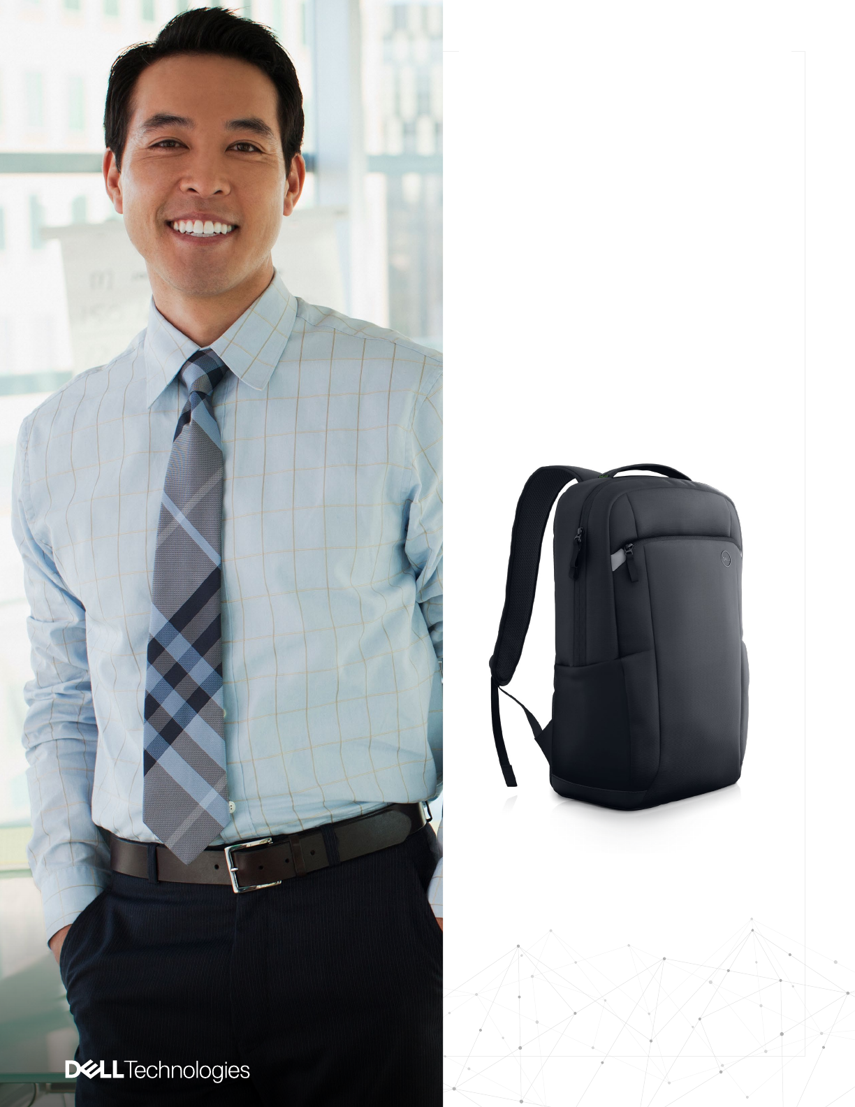 <p>D E L L E C O L O O P P R O</p><p>S L I M B A C K PA C K 1 5</p><p>An eco-conscious slim-fit</p><p>backpack designed for</p><p>on-the-go protection for</p><p>your Dell laptops.</p><p>D E L L E C O L O O P P R O S L I M B A C K PA C K 1 5</p><p>Capable carrier</p><p>It’s thoughtfully designed to</p><p>comfortably carry everything</p><p>you need in your daily commute</p><p>or business travel. Easily access</p><p>your tech and essentials with</p><p>the purpose built organizers and</p><p>dedicated laptop/tablet sleeves,</p><p>and the reflective accents</p><p>increase visibility in low light.</p><p>Complete protection</p><p>Built with 360° foam cushion</p><p>surrounding the laptop sleeve,</p><p>keeping your computing</p><p>devices protected from bumps</p><p>and knocks.</p><p>It’s made from heavy duty fabric</p><p>with PVB coating at the bottom</p><p>of the bag that makes it water</p><p>and dirt-resistant.</p><p>Designed with the</p><p>environment in mind</p><p>Dell EcoLoop™ labeled</p><p>backpack is produced with</p><p>select materials and/or methods</p><p>that reduce the environmental</p><p>impact compared to traditional</p><p>industry techniques. The</p><p>backpack’s exterior main fabric</p><p>is made with 100% recycled</p><p>plastic, reusing approximately</p><p>12 plastic bottles.1</p><p>1 Plastic bottle estimate assumes a 500ml plastic water bottle.</p><p>D E L L E C O L O O P P R O S L I M B A C K PA C K 1 5</p><p>Adjustable shoulder straps</p><p>and padded back panel</p><p>Complete protection with</p><p>360° foam cushioning</p><p>surrounding the laptop sleeve.</p><p>Exterior main fabric</p><p>made with 100%</p><p>recycled plastic1</p><p>Purpose-built</p><p>organizer for tech</p><p>accessories</p><p>Navigate airports</p><p>and train stations</p><p>easily with luggage</p><p>pass-through</p><p>S u s t a i n a b l y m a d e . Pa c k e d w i t h p ro te c t i o n .</p><p>Slim-fit backpack that’s sustainable and packed with protection. Made with durable, weather-resistant</p><p>and recycled materials and 360° protection. Our carrying cases are put through rigorous quality tests,</p><p>including water resistance, strap and zipper strength and fabric abrasion, proving their sturdiness and</p><p>long-lasting durability for the protection of your belongings.</p><p>The fabric coating on the bottom</p><p>of the bag is made from PVB</p><p>film* recovered from used car</p><p>windshields, keeping the material</p><p>out of landfills and repurposing it</p><p>for a tough backpack.</p><p>Durable fabric</p><p>Made with a responsible solution-</p><p>dyeing process for polyester that can</p><p>generate up to 90% less wastewater,</p><p>up to 62% less CO2 emissions and</p><p>uses up to 29% less energy than</p><p>traditional dyeing processes.2</p><p>The backpack comes in packaging</p><p>which is made of 100% recycled</p><p>content in the hang tag, hang loop</p><p>and plastic bag.</p><p>Dell EcoLoop Pro Slim Backpack</p><p>protects Dell laptops up to 15.6”</p><p>The Dell EcoLoop Pro Slim Backpack</p><p>exterior main fabric is made from</p><p>approximately 12 plastic bottles.1</p><p>* Based on internal analysis of published data on recycled PVB film recovered from used car windshields, March 2022.</p><p>1 Plastic bottle estimate assumes a 500ml plastic water bottle.</p><p>2 Based on internal analysis of published data on solution-dyed virgin polyester, January 2022</p><p>Two extra large mesh</p><p>pockets on either</p><p>side that expand out</p><p>and can hold larger</p><p>water bottles</p><p>Water resistant fabric</p><p>v.1 03/2023</p><p>Product availability varies by country. Contact your Dell representative or visit Dell.com to learn more.</p><p>1 Based on internal analysis of published data on solution-dyed virgin polyester, January 2022</p><p>2 Plastic bottle estimate assumes a 500ml plastic water bottle.</p><p>© 2023 Dell Inc. or its subsidiaries. All rights reserved. Dell Technologies, Dell, EMC, Dell EMC and other trademarks are trademarks of Dell Inc. or its subsidiaries. Other trademarks may be</p><p>trademarks of their respective owners.</p><p>MODEL</p><p>MODEL NUMBER</p><p>COLOR</p><p>LAPTOP COMPATIBILITY</p><p>FEATURES</p><p>UNIT DIMENSIONS</p><p>UNIT WEIGHT</p><p>DELL SKU NUMBERS</p><p>UPC CODE</p><p>EAN CODE</p><p>VPN CODE</p><p>WARRANTY</p><p>T E C H N I C A L S P E C I F I C AT I O NF E AT U R E</p><p>Dell EcoLoop Pro Slim Backpack 15</p><p>CP5724S</p><p>Black</p><p>Fits most laptops with screen sizes up to 15.6”</p><p>(Excluding Dell G Series Gaming, Alienware and Dell Rugged Laptop Series,</p><p>max laptop dimension: 400 x 270 x 25 mm)</p><p>• Made with solution-dyeing process for polyester that can generate up to 90%</p><p>less wastewater and up to 62% less CO2 emissions and uses up to 29% less</p><p>energy than traditional dyeing processes1</p><p>• Exterior main fabric is made with 100% recycled plastic, approximately</p><p>12 recycled plastic bottles2</p><p>• Recycled weatherproofing at the bottom of the bag</p><p>• Packaging made with 100% recycled content in the hang tag, hang loop,</p><p>plastic bag</p><p>• 360° foam cushioning for complete laptop protection</p><p>• Weather and dirt-resistant, heavy duty 600D body fabric</p><p>• Dedicated laptop and tablet padded sleeves</p><p>• Spacious compartment to store documents and everyday accessories</p><p>• Zippered front pocket with purpose-built organizers</p><p>• Large stretch side mesh pockets for water bottle and umbrella</p><p>• Luggage pass-through</p><p>• Grab handle, adjustable shoulder strap</p><p>• Reflective accents for increase visibility during low-light hours</p><p>315 x 445 x 140 mm (12.4 x 17.5 x 5.5 in)</p><p>0.59 kg</p><p>AMER:</p><p>460-BDRH</p><p>EMEA:</p><p>460-BDQP</p><p>APJ:</p><p>460-BDRP (Greater China & Japan)</p><p>460-BDRQ (India)</p><p>460-BDRX (Korea)</p><p>460-BDRW (Indonesia)</p><p>460-BDRV (Rest of APJ)</p><p>884116451792</p><p>5397184820353</p><p>Dell-CP5724S</p><