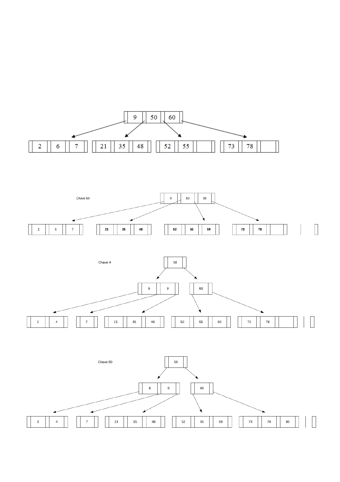 <p>ESTRUTURA DE DADOS II</p><p>ATIVIDADES DA AULA 07</p><p>Aluno: Rhuan Pablo da Silva</p><p>Dada a árvore B abaixo, com grau mínimo t = 2, demonstre a operação de inserção das chaves 59, 4, 80 e</p><p>25.</p><p>_____________________________________________________________________________________</p><p>_____________________________________________________________________________________</p><p>_____________________________________________________________________________________</p><p>_____________________________________________________________________________________</p>