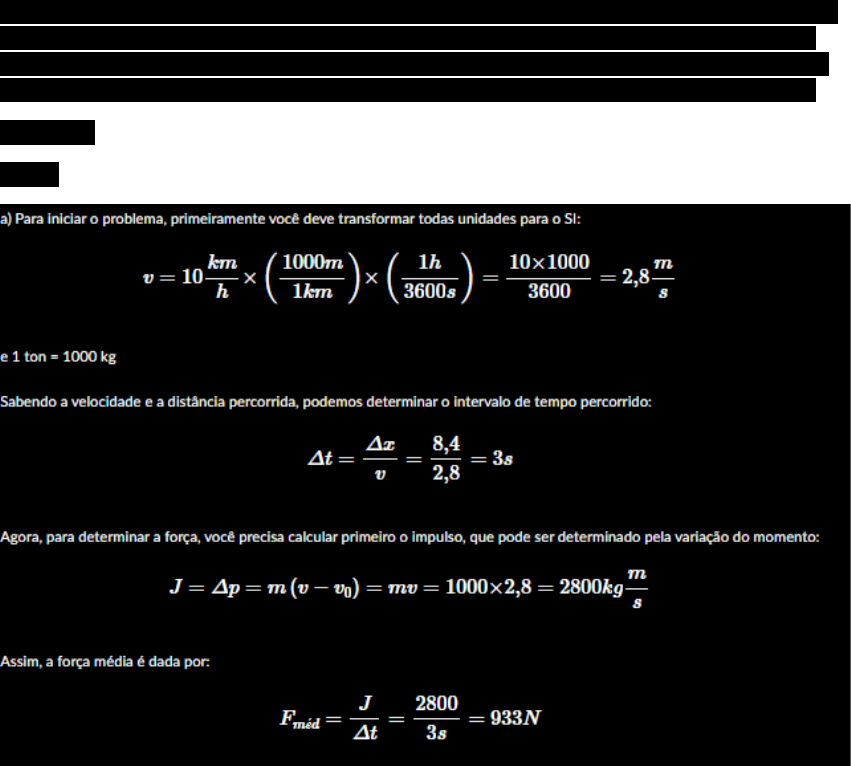 <p>Desafio:</p><p>Em um centro de distribuição uma empilhadeira carrega uma caixa de uma tonelada até o caminhão responsável pelo transporte desta carga. Partindo do repouso a empilhadeira precisa percorrer uma certa distância para atingir a sua velocidade máxima de operação, como indicado na figura. Determine a força média necessária para acelerar essa carga.</p><p>V=10km/h</p><p>M=8,4</p><p>1. A figura a seguir ilustra uma visão superior de uma mesa de sinuca, em que uma bola de massa 400g atinge a tabela com um ângulo de 60º com a normal e ricocheteia formando o mesmo ângulo com a normal. A velocidade da bola, de 9 m/s, altera apenas a direção do movimento durante o choque, que tem uma duração de 10ms. Qual o valor da força média da colisão da bola com a tabela?</p><p>360 N</p><p>2. Um bloco de massa 1kg move-se retilineamente com velocidade de módulo constante igual a 3m/s sobre urna superfície horizontal sem atrito. A partir de dado instante, o bloco recebe o impulso de sua força externa aplicada na mesma direção e sentido de seu movimento. A intensidade dessa força, em função do tempo, é dada pelo gráfico abaixo. A partir desse gráfico, pode-se afirmar que o módulo da velocidade do bloco após o impulso recebido é, em m/s de</p><p>9</p><p>3. Uma esfera de massa m é lançada do solo verticalmente para cima, com velocidade inicial V, em módulo e atinge o solo 1 s depois. Desprezando todos os atritos, a variação no momento linear entre o instante do lançamento e o instante imediatamente antes do retorno ao solo é, em módulo:</p><p>2mV</p><p>Adotando o sentido positivo para baixo e trabalhando algebricamente, temos:</p><p>4. Considere uma esfera metálica em queda livre sob a ação somente da força peso. Sobre o módulo do momento linear desse corpo, pode-se afirmar corretamente que:</p><p>Aumenta durante a queda.</p><p>Aumenta pois a aceleração gravitacional aumenta a velocidade e ela aumenta o momento linear.</p><p>5. Um objeto de massa igual a 2kg move-se em linha reta com velocidade constante de 4m/s. A partir de certo instante, uma força de módulo igual a 2N é exercida por 6s sobre o objeto, na mesma direção de seu movimento. Em seguida, o objeto colide frontalmente com um obstáculo e tem seu movimento invertido, afastando-se com velocidade de 3m/s. O módulo do impulso exercido pelo obstáculo e a variação da energia cinética do objeto, durante a colisão, foram, respectivamente:</p><p>. 26 Ns e -91 J.</p><p>image1.png</p><p>image2.png</p><p>image3.jpeg</p><p>image4.png</p>