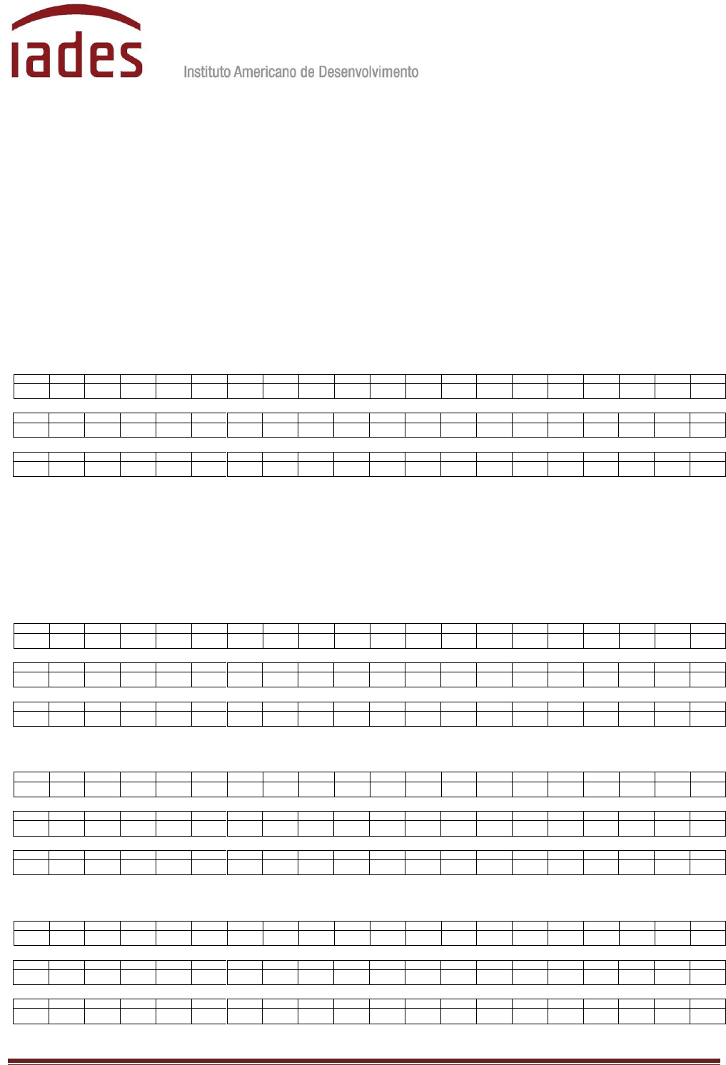 <p>Instituto Americano de Desenvolvimento - IADES – www.iades.com.br</p><p>SIBS Quadra 1 Conjunto A Lote 5 – Núcleo Bandeirante - Brasília – DF</p><p>Fone: (61) 3053.3444 – e-mail: residenciasp2021@iades.com.br Página 1</p><p>PREFEITURA DO MUNICÍPIO DE SÃO PAULO</p><p>SECRETARIA MUNICIPAL DA SAÚDE</p><p>ESCOLA MUNICIPAL DE SAÚDE / GERÊNCIA DE ENSINO</p><p>SELEÇÃO PÚBLICA PARA RESIDÊNCIA MULTIPROFISSIONAL E ÁREA PROFISSIONAL EM SAÚDE – 2022</p><p>GABARITOS DEFINITIVOS DAS PROVAS OBJETIVAS</p><p>(Gabarito divulgado em 29/12/2021)</p><p>Odontologia – (106) Profissional em Cirurgia e Traumatologia Buco Maxilo Facial e (706)</p><p>Multiprofissional em Saúde da Família.</p><p>Prova Tipo “U”</p><p>1 2 3 4 5 6 7 8 9 10 11 12 13 14 15 16 17 18 19 20</p><p>B D C A E C A E D B D B E C A C B D A E</p><p>21 22 23 24 25 26 27 28 29 30 31 32 33 34 35 36 37 38 39 40</p><p>D A B E A E C C E B D A E B A C D A D E</p><p>41 42 43 44 45 46 47 48 49 50 51 52 53 54 55 56 57 58 59 60</p><p>C A A D C B D B B C E E C B A D C E D B</p><p>Enfermagem – (201) Multiprofissional em Neonatologia, (301) Multiprofissional em Atenção</p><p>Urgência e Emergência, (401) Multiprofissional em Atenção à Terapia Intensiva, (501)</p><p>Multiprofissional em Práticas Integrativas e Complementares em Saúde e (701) Multiprofissional em</p><p>Saúde da Família.</p><p>Prova Tipo “A”</p><p>1 2 3 4 5 6 7 8 9 10 11 12 13 14 15 16 17 18 19 20</p><p>B D C A E C A E D B D B E C A C B D A E</p><p>21 22 23 24 25 26 27 28 29 30 31 32 33 34 35 36 37 38 39 40</p><p>C A D B E D B D A E C D A E B C E A C E</p><p>41 42 43 44 45 46 47 48 49 50 51 52 53 54 55 56 57 58 59 60</p><p>C B A B E C B A D B D A D C E B E C A D</p><p>Prova Tipo “B”</p><p>1 2 3 4 5 6 7 8 9 10 11 12 13 14 15 16 17 18 19 20</p><p>E C A E D B B D C A E C A C B D A E D B</p><p>21 22 23 24 25 26 27 28 29 30 31 32 33 34 35 36 37 38 39 40</p><p>B D A E C D A E B C E A C E C B A B E C</p><p>41 42 43 44 45 46 47 48 49 50 51 52 53 54 55 56 57 58 59 60</p><p>B A D B D A D C E B E C A D C A D B E D</p><p>Prova Tipo “C”</p><p>1 2 3 4 5 6 7 8 9 10 11 12 13 14 15 16 17 18 19 20</p><p>E D B B D C A E C A A C B D A E D B E C</p><p>21 22 23 24 25 26 27 28 29 30 31 32 33 34 35 36 37 38 39 40</p><p>B E C B A D B D A D C E B E C A D C A D</p><p>41 42 43 44 45 46 47 48 49 50 51 52 53 54 55 56 57 58 59 60</p><p>B E D B D A E C D A E B C E A C E C B A</p><p>Instituto Americano de Desenvolvimento - IADES – www.iades.com.br</p><p>SIBS Quadra 1 Conjunto A Lote 5 – Núcleo Bandeirante - Brasília – DF</p><p>Fone: (61) 3053.3444 – e-mail: residenciasp2021@iades.com.br Página 2</p><p>Enfermagem – (201) Multiprofissional em Neonatologia, (301) Multiprofissional em Atenção</p><p>Urgência e Emergência, (401) Multiprofissional em Atenção à Terapia Intensiva, (501)</p><p>Multiprofissional em Práticas Integrativas e Complementares em Saúde e (701) Multiprofissional em</p><p>Saúde da Família (continuação)</p><p>Prova Tipo “D”</p><p>1 2 3 4 5 6 7 8 9 10 11 12 13 14 15 16 17 18 19 20</p><p>C A B D A E C B E D A E D B E C A C B D</p><p>21 22 23 24 25 26 27 28 29 30 31 32 33 34 35 36 37 38 39 40</p><p>B E D C A D E C D A E B C E A C E C B A</p><p>41 42 43 44 45 46 47 48 49 50 51 52 53 54 55 56 57 58 59 60</p><p>B D A B E C A D B E C B A D B D A D C E</p><p>Farmácia – (202) Multiprofissional em Neonatologia, (302) Multiprofissional em Atenção Urgência e</p><p>Emergência, (402) Multiprofissional em Atenção à Terapia Intensiva e (502) Multiprofissional em</p><p>Práticas Integrativas e Complementares em Saúde.</p><p>Prova Tipo “U”</p><p>1 2 3 4 5 6 7 8 9 10 11 12 13 14 15 16 17 18 19 20</p><p>B D C A E C A E D B D B E C A C B D A E</p><p>21 22 23 24 25 26 27 28 29 30 31 32 33 34 35 36 37 38 39 40</p><p>B D A E C C D A E A E B B D E A D C E B</p><p>41 42 43 44 45 46 47 48 49 50 51 52 53 54 55 56 57 58 59 60</p><p>B B A E E B D C B C A # D A D C E D A C</p><p>Fisioterapia – (203) Multiprofissional em Neonatologia, (303) Multiprofissional em Atenção Urgência</p><p>e Emergência, (403) Multiprofissional em Atenção à Terapia Intensiva e (503) Multiprofissional em</p><p>Práticas Integrativas e Complementares em Saúde.</p><p>Prova Tipo “U”</p><p>1 2 3 4 5 6 7 8 9 10 11 12 13 14 15 16 17 18 19 20</p><p>B D C A E C A E D B D B E C A C B D A E</p><p>21 22 23 24 25 26 27 28 29 30 31 32 33 34 35 36 37 38 39 40</p><p>D A B C E C E A E D C B D B C # E B C C</p><p>41 42 43 44 45 46 47 48 49 50 51 52 53 54 55 56 57 58 59 60</p><p>D A E D B A E B C A E B # D C A C E A D</p><p>Fonoaudiologia – (204) Multiprofissional em Neonatologia e (504) Multiprofissional em Práticas</p><p>Integrativas e Complementares em Saúde.</p><p>Prova Tipo “U”</p><p>1 2 3 4 5 6 7 8 9 10 11 12 13 14 15 16 17 18 19 20</p><p>B D C A E C A E D B D B E C A C B D A E</p><p>21 22 23 24 25 26 27 28 29 30 31 32 33 34 35 36 37 38 39 40</p><p>C A B D B E C C E A C E A D B D B E A D</p><p>41 42 43 44 45 46 47 48 49 50 51 52 53 54 55 56 57 58 59 60</p><p>A E D B D C B A C E D C A E B E C A D B</p><p>Instituto Americano de Desenvolvimento - IADES – www.iades.com.br</p><p>SIBS Quadra 1 Conjunto A Lote 5 – Núcleo Bandeirante - Brasília – DF</p><p>Fone: (61) 3053.3444 – e-mail: residenciasp2021@iades.com.br Página 3</p><p>Nutrição – (205) Multiprofissional em Neonatologia, (305) Multiprofissional em Atenção Urgência e</p><p>Emergência, (405) Multiprofissional em Atenção à Terapia Intensiva e (505) Multiprofissional em</p><p>Práticas Integrativas e Complementares em Saúde.</p><p>Prova Tipo “U”</p><p>1 2 3 4 5 6 7 8 9 10 11 12 13 14 15 16 17 18 19 20</p><p>B D C A E C A E D B D B E C A C B D A E</p><p>21 22 23 24 25 26 27 28 29 30 31 32 33 34 35 36 37 38 39 40</p><p>D B E A C D A C B # E B A A C B D B A D</p><p>41 42 43 44 45 46 47 48 49 50 51 52 53 54 55 56 57 58 59 60</p><p>E D A C D A E D B B E C B A E C E E D C</p><p>Psicologia –
