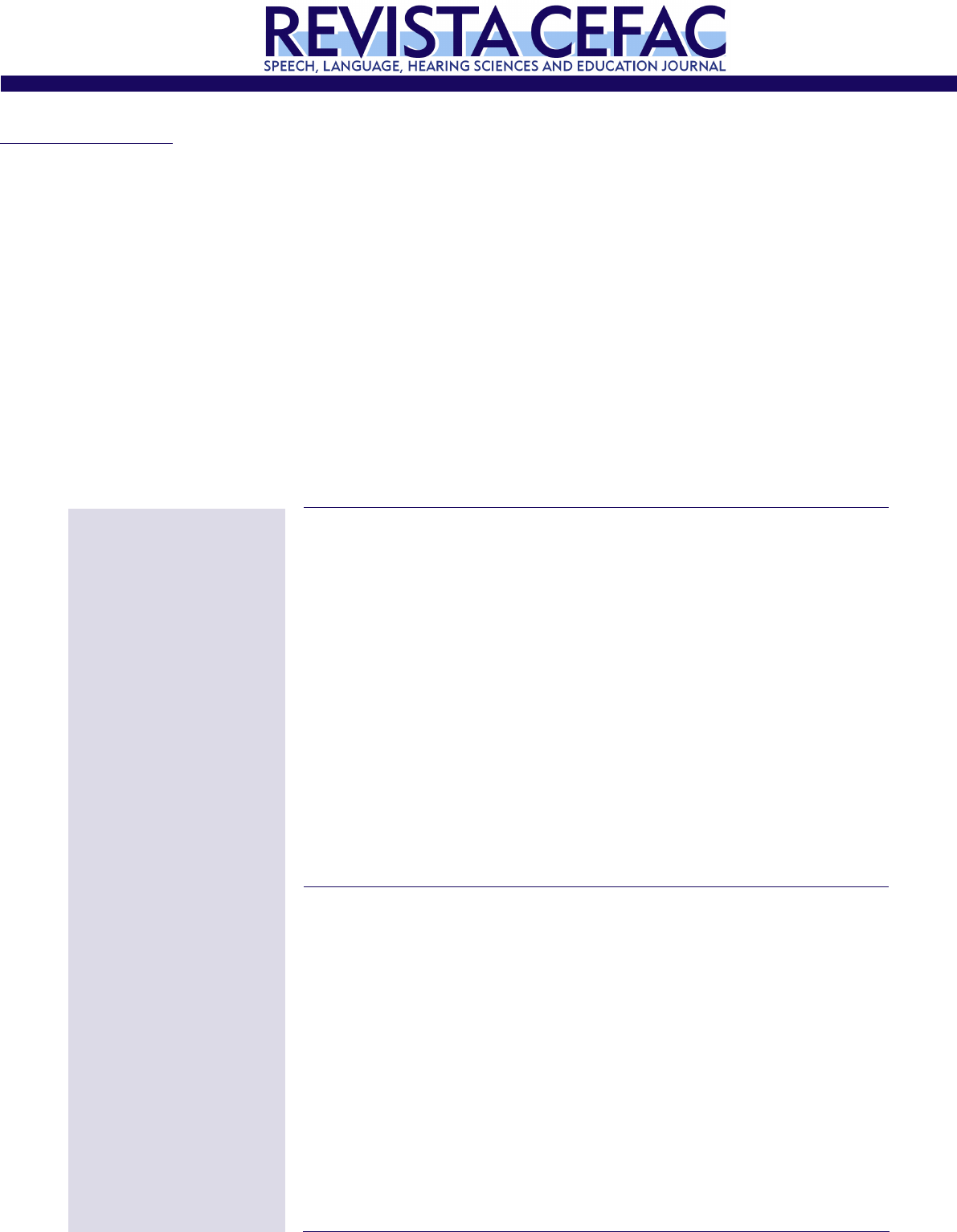 <p>(1) Faculdade de Odontologia de Bauru da</p><p>Universidade de São Paulo, Bauru (SP),</p><p>Brasil.</p><p>(2) Faculdade de Ciências Médicas da</p><p>Universidade Estadual de Campinas –</p><p>UNICAMP (SP), Brasil.</p><p>(3) Departamento de Neurologia da</p><p>Faculdade de Ciências Médicas da</p><p>Universidade Estadual de Campinas –</p><p>UNICAMP (SP), Brasil.</p><p>(4) Departamento de Fonoaudiologia da</p><p>Faculdade de Odontologia de Bauru da</p><p>Universidade Estadual de Campinas –</p><p>UNICAMP (SP), Brasil.</p><p>Conflito de interesses: inexistente</p><p>Desempenho do processamento fonológico, leitura e escrita em</p><p>escolares com transtorno de déficit de atenção e hiperatividade</p><p>Performance of children with attention deficit hyperactivity disorder in</p><p>phonological processing, reading and writing</p><p>Talita Fernanda Gonçalves-Guedim(1)</p><p>Iuri Victor Capelatto(2)</p><p>Cintia Alves Salgado-Azoni(2)</p><p>Sylvia Maria Ciasca(3)</p><p>Patrícia Abreu Pinheiro Crenitte(4)</p><p>Recebido em: 17/12/2015</p><p>Aceito em: 02/02/2017</p><p>Endereço para correspondência:</p><p>Talita Fernanda Gonçalves</p><p>Rua Canadá, 5-55, bl. 01, apto 306</p><p>Jardim Terra Branca, Bauru (SP), Brasil</p><p>CEP: 17054-070</p><p>E-mail: talita_fg@hotmail.com</p><p>RESUMO</p><p>Objetivo: comparar o desempenho do processamento fonológico, da leitura e escrita de palavras reais e</p><p>inventadas entre os escolares com transtorno de déficit de atenção e hiperatividade e escolares com bom</p><p>desempenho escolar.</p><p>Métodos: participaram deste estudo 30 escolares, na faixa etária de 9 a 12 anos, de ambos os gêne-</p><p>ros, do Ensino Fundamental de escolas públicas e particulares, divididos em: Grupo Experimental (15</p><p>escolares com diagnóstico interdisciplinar de transtorno de déficit de atenção e hiperatividade) e Grupo</p><p>Controle (15 escolares com bom desempenho escolar), pareado com o Grupo Experimental em idade,</p><p>gênero, escolaridade, tipo de instituição de ensino (pública e particular). Os instrumentos utilizados para</p><p>avaliação foram: Instrumento de Avaliação Sequencial (CONFIAS), Teste de Nomeação Seriada Rápida</p><p>(RAN), Prova de repetição de palavras sem significado e Prova de leitura e escrita. Os resultados foram</p><p>analisados por meio de testes estatísticos (Mann Whitney e Teste t de Student), adotando-se nível de</p><p>significância de 5% (0,05).</p><p>Resultados: os resultados analisados por meio de testes estatísticos revelaram diferenças significantes</p><p>entre o grupo experimental e o grupo controle nas provas avaliadas.</p><p>Conclusão: escolares com transtorno de déficit de atenção e hiperatividade apresentaram desempe-</p><p>nho inferior em habilidades de consciência fonológica, acesso ao léxico, memória operacional, leitura e</p><p>escrita de palavras, quando comparados aos escolares sem transtorno de déficit de atenção e hiperativi-</p><p>dade, com bom desempenho escolar.</p><p>Descritores: Criança; Avaliação; Aprendizagem; Leitura; Escrita</p><p>ABSTRACT</p><p>Purpose: to compare the performance of students with Attention Deficit / Hyperactivity Disorder and</p><p>students with good academic performance in Phonological Processing, Reading and Writing of real and</p><p>non real words.</p><p>Methods: 30 students, aged between 9 and 12 years old, of both genders, of the elementary school</p><p>in public and private education, participated in the study, divided into: Experimental Group (15 students</p><p>with Attention Deficit / Hyperactivity Disorder) and Control Group (15 students with good academic</p><p>performance), paired with Experimental Group as to age, gender, schooling, and type of educational</p><p>institution (public or private). The instruments used for assessment were: Sequential Assessment</p><p>Instrument (CONFIAS), Serial Rapid Naming Test (RAN), Test of Repetition of nonsense words and Test of</p><p>Reading and Writing. The results were analyzed by statistical tests (Mann Whitney Test and T of Student),</p><p>with a significance level of 5% (0.05), in order to compare the performance of the students.</p><p>Results: The results were analyzed by statistical tests and revealed significant differences between the</p><p>experimental and control group in the tests evaluated.</p><p>Conclusion: the students with Attention Deficit / Hyperactivity Disorder had lower performance in</p><p>phonological processing, reading, and writing words, when compared to students without Attention Deficit</p><p>/ Hyperactivity Disorder with good academic performance.</p><p>Keywords: Child; Assesment; Learning; Reading; Writing</p><p>Artigos originais</p><p>20815</p><p>Rev. CEFAC. 2017 Mar-Abr; 19(2):242-252 doi: 10.1590/1982-0216201719220815</p><p>Rev. CEFAC. 2017 Mar-Abr; 19(2):242-252</p><p>Leitura e escrita em escolares com TDAH | 243</p><p>INTRODUÇÃO</p><p>O Transtorno do Déficit de Atenção e Hiperatividade</p><p>(TDAH) é uma condição de caráter neurobiológico,</p><p>mais comum no gênero masculino, manifestado na</p><p>infância e na adolescência e que pode persistir até</p><p>a idade adulta em 60 a 70% dos casos. Evidências</p><p>indicam como possíveis causas fatores genéticos</p><p>e neurológicos, o que reduz, mas não se exclui o</p><p>papel socioambiental na contribuição do desenvolvi-</p><p>mento de comorbidades associadas. Sua prevalência</p><p>estimada é de 3 a 5% das crianças em idade escolar</p><p>e sua sintomatologia inclui dificuldades no compor-</p><p>tamento atencional, hiperatividade e impulsividade1.</p><p>Geralmente essas crianças são classificadas pela</p><p>sociedade escolar como indisciplinadas, distraídas,</p><p>impacientes e extremamente inquietas2. O diagnóstico</p><p>do TDAH é fundamentalmente clínico, usualmente</p><p>apoiado em critérios operacionais de sistemas classifi-</p><p>catórios como o DSM-V 3.</p><p>Além dos sintom