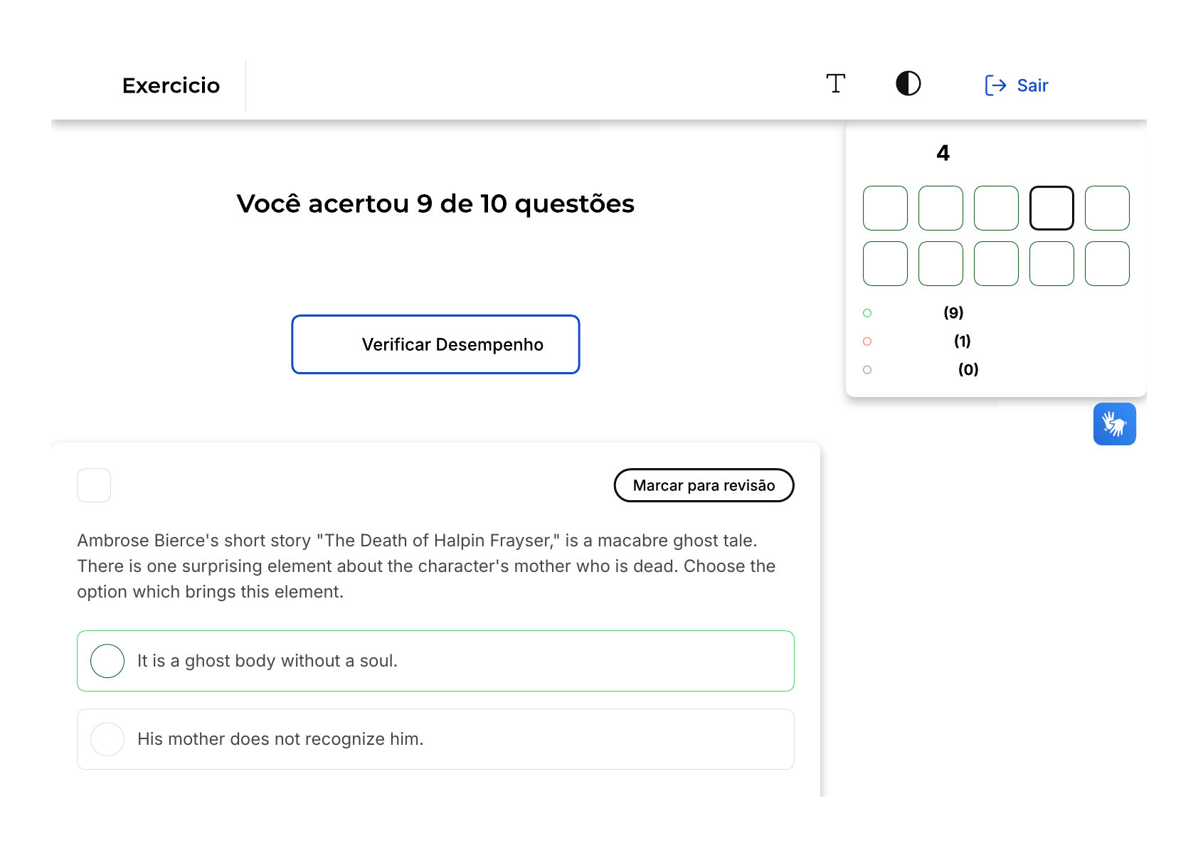 <p>Verifique o seu desempenho e continue treinando! Você pode refazer o exercício</p><p>quantas vezes quiser.</p><p>A</p><p>B</p><p>1</p><p>Ambrose Bierce's short story "The Death of Halpin Frayser," is a macabre ghost tale.</p><p>There is one surprising element about the character's mother who is dead. Choose the</p><p>option which brings this element.</p><p>It is a ghost body without a soul.</p><p>His mother does not recognize him.</p><p>Questão de 10</p><p>Corretas</p><p>Incorretas</p><p>Em branco</p><p>1 2 3 4 5</p><p>6 7 8 9 10</p><p>Literatura Fantástica Em Inglês</p><p>Firefox https://estacio.saladeavaliacoes.com.br/exercicio/66db8f63c669e5c9f4ef615c/gabarito/</p><p>1 of 15 06/09/2024, 20:26</p><p>C</p><p>D</p><p>E</p><p>His mother saves him from death.</p><p>It is a friendly zombie.</p><p>It is Halpin himself.</p><p>Parabéns, você selecionou a alternativa correta. Confira o gabarito</p><p>comentado!</p><p>Na história, é mencionado no epígrafe que algumas pessoas mortas retornam como</p><p>zumbis malignos, corpos sem alma, que é o caso da mãe de Frayser. A mãe</p><p>reconhece e mata ele; portanto, ela não é um "zumbi amigável". A alternativa</p><p>correta é a A, que afirma que a mãe de Frayser é um corpo fantasma sem alma, o</p><p>que está de acordo com a descrição dada na história.</p><p>2</p><p>"Alice's Adventures in Wonderland" é dividido em doze breves capítulos, cada um</p><p>Firefox https://estacio.saladeavaliacoes.com.br/exercicio/66db8f63c669e5c9f4ef615c/gabarito/</p><p>2 of 15 06/09/2024, 20:26</p><p>A</p><p>B</p><p>C</p><p>D</p><p>E</p><p>dividido em episódios isolados. Alice tem aventuras maravilhosas e bizarras com</p><p>criaturas estranhas. Qual é o possível significado metafórico das aventuras de Alice em</p><p>"Alice's Adventures in Wonderland"?</p><p>A luta contra a realidade</p><p>A necessidade de emoção</p><p>A busca por experiência</p><p>A curiosidade pelo futuro.</p><p>O desejo de superar o tédio</p><p>Parabéns, você selecionou a alternativa correta. Confira o gabarito</p><p>comentado!</p><p>Alice é uma criança, mas as experiências pelas quais ela passa ensinam-na a se</p><p>comportar e tomar decisões em diferentes situações, algumas delas potencialmente</p><p>Firefox https://estacio.saladeavaliacoes.com.br/exercicio/66db8f63c669e5c9f4ef615c/gabarito/</p><p>3 of 15 06/09/2024, 20:26</p><p>A</p><p>B</p><p>C</p><p>D</p><p>perigosas. Ela se torna mais madura ao longo do romance. Portanto, as aventuras</p><p>de Alice podem ser interpretadas metaforicamente como uma busca por</p><p>experiência, representando o processo de crescimento e amadurecimento. Isso é</p><p>evidenciado em suas interações com diferentes personagens e situações, onde ela</p><p>aprende a lidar com desafios e a tomar decisões. Portanto, a alternativa correta é a</p><p>"C� A busca por experiência".</p><p>3</p><p>Em histórias de Lewis, elementos de contos de fadas, medievalismo e alegoria cristã são</p><p>combinados para criar a terra mágica. Que figura bíblica o leão Aslan representa em As</p><p>Crônicas de Nárnia?</p><p>Moisés</p><p>Judas</p><p>Abel</p><p>Deus</p><p>Firefox https://estacio.saladeavaliacoes.com.br/exercicio/66db8f63c669e5c9f4ef615c/gabarito/</p><p>4 of 15 06/09/2024, 20:26</p><p>E</p><p>A</p><p>Caim</p><p>Parabéns, você selecionou a alternativa correta. Confira o gabarito</p><p>comentado!</p><p>Aslan é um ser divino, representando Deus/Jesus Cristo. Ele é o fundador de</p><p>Nárnia, o criador de suas criaturas e seu Rei. Além disso, Lucy, Edmund e Eustace</p><p>encontram um cordeiro, que se transforma em Aslan, em uma alusão óbvia a Jesus</p><p>Cristo. Portanto, a alternativa correta é a letra D, que afirma que Aslan representa</p><p>Deus nas Crônicas de Nárnia.</p><p>4</p><p>O estudo estruturalista de Tzvetan Todorov sobre o fantástico fornece um dos mais</p><p>importantes arcabouços para abordar o gênero. Como o teórico literário Tzvetan</p><p>Todorov define o fantástico na literatura?</p><p>O sobrenatural é aceito como impossível no mundo real</p><p>Firefox https://estacio.saladeavaliacoes.com.br/exercicio/66db8f63c669e5c9f4ef615c/gabarito/</p><p>5 of 15 06/09/2024, 20:26</p><p>B</p><p>C</p><p>D</p><p>E</p><p>A hesitação entre as leis deste e do outro mundo</p><p>O elemento sobrenatural é resolvido por uma explicação racional</p><p>A hesitação entre a crença e a descrença do sobrenatural</p><p>O sobrenatural é entendido como parte da vida cotidiana real</p><p>Opa! A alternativa correta é a letra D. Confira o gabarito comentado!</p><p>Firefox https://estacio.saladeavaliacoes.com.br/exercicio/66db8f63c669e5c9f4ef615c/gabarito/</p><p>6 of 15 06/09/2024, 20:26</p><p>A</p><p>B</p><p>De acordo com Todorov, o fantástico está relacionado à hesitação vivenciada por</p><p>uma pessoa que conhece as leis da natureza, ao confrontar um evento</p><p>aparentemente sobrenatural. Assim, o conceito do fantástico é definido em relação</p><p>aos conceitos do real e do irreal e pressupõe a presença do sobrenatural. Para</p><p>Todorov, quando o sobrenatural é aceito como impossível neste mundo, e apenas</p><p>possível em um mundo diferente, o gênero é definido como maravilhoso, e é</p><p>sinônimo de fantasia. Quando o sobrenatural é resolvido por uma explicação</p><p>racional, como uma manifestação da imaginação da pessoa, o gênero é o estranho.</p><p>O gênero que apresenta o sobrenatural como parte da realidade é chamado de</p><p>realismo mágico.</p><p>5</p><p>Em contextos anglofônicos, a literatura gótica pode ser rastreada até o século XVIII.</p><p>Quais são algumas convenções do gênero gótico?</p><p>Configurações arcaicas, castelos assombrados.</p><p>Missões perigosas, criaturas míticas.</p><p>Firefox https://estacio.saladeavaliacoes.com.br/exercicio/66db8f63c669e5c9f4ef615c/gabarito/</p><p>7 of 15 06/09/2024, 20:26</p><p>C</p><p>D</p><p>E</p><p>Animais falantes, a