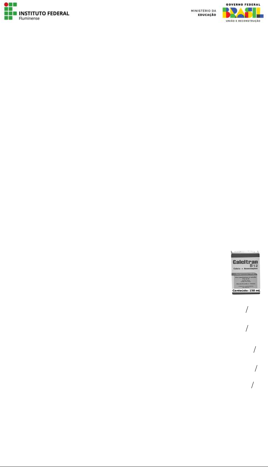 <p>Página 1 de 2</p><p>1ª Lista Exercício – QUÍMICA – 1ºBIM – Profa. Maysa Zampa – Turma:_________</p><p>Nome:_________________________________________________________________</p><p>*Pesquise todas as massas atômicas na Tabela Periódica, ok! Para exercitar!</p><p>Aula 1: Mol, Massa molar</p><p>01) Assinale a alternativa que contém a espécie de</p><p>"menor" massa molecular:</p><p>a) ácido acético CH3COOH</p><p>b) ácido iodídrico HI</p><p>c) ácido sulfúrico H2SO4</p><p>d) ácido fosfórico H3PO4</p><p>e) ácido fosforoso H3PO3</p><p>02) A massa molecular da espécie C2HxO2 é 60u, logo,</p><p>o valor de "x" é:</p><p>a) 1</p><p>b) 2</p><p>c) 3</p><p>d) 4</p><p>e) 5</p><p>03) (CFTSC2008) O sulfato de cobre pentaidratado</p><p>(CuSO4.5H2O) forma cristais azuis. Quantos mols de</p><p>água há em 100 g deste sal? *Considere as massas</p><p>atômicas arredondadas.</p><p>a) 1,8 mol.</p><p>b) 2,0 mol.</p><p>c) 4,0 mol.</p><p>d) 5,4 mol.</p><p>e) 1,0 mol.</p><p>04) (CFTCE2006) O ácido sulfúrico é um dos ácidos</p><p>mais utilizados na indústria química. Uma amostra</p><p>contendo 200 g de H2SO4 puro contém um número total</p><p>de quantos átomos?</p><p>a) 1,23 × 1024</p><p>b) 1,23 × 1023</p><p>c) 8,60 × 1023</p><p>d) 8,60 × 1024</p><p>e) 8,60 × 1022</p><p>05) (IFSP2017) Mol é a quantidade de matéria que</p><p>contém tantas entidades elementares quantos são os</p><p>átomos do isótopo 12C contidos em 12 x 10-3 kg de 12C.</p><p>Uma massa de 44 g de CO2 corresponde a 1,0 mol de</p><p>CO2 e ocupa, nas CNTPs, um volume fixo de 22,4 L.</p><p>Desse modo, assinale a alternativa que apresenta,</p><p>aproximadamente, o volume ocupado por 188 g de gás</p><p>carbônico (CO2).</p><p>a) 90 L</p><p>b) 80 L</p><p>c) 44 L</p><p>d) 96 L</p><p>e) 22 L</p><p>06) (Ufrgs 2016) O sal rosa do Himalaia é um sal</p><p>rochoso muito apreciado em gastronomia, sendo obtido</p><p>diretamente de uma reserva natural aos pés da</p><p>cordilheira. Apresenta baixo teor de sódio e é muito rico</p><p>em sais minerais, alguns dos quais lhe conferem a cor</p><p>característica. Considere uma amostra de 100g de sal</p><p>rosa que contenha em sua composição, além de sódio e</p><p>outros minerais, os seguintes elementos nas</p><p>quantidades especificadas:</p><p>Magnésio 36mg</p><p>Potássio 39mg</p><p>Cálcio 48mg</p><p>Os elementos, colocados na ordem crescente de</p><p>número de mols presentes na amostra, são:</p><p>a) K, Ca, Mg.</p><p>b) K, Mg, Ca.</p><p>c) Mg, K, Ca.</p><p>d) Ca, Mg, K.</p><p>e) Ca, K, Mg.</p><p>*Observe a composição do</p><p>remédio a seguir para responder</p><p>à questão 7.</p><p>Cada 1mL da suspensão oral,</p><p>contém:</p><p>1º. Fosfato de cálcio ..... 15mg mL</p><p>2º.</p><p>Glicerofosfato de</p><p>cálcio ...................</p><p>16mg mL</p><p>3º.</p><p>Cianocobalamina</p><p>(vitamina B12) .....</p><p>0,001mg mL</p><p>4º. Calciferol (vit D)..... 0,025mg mL</p><p>5º. Fluoreto sódio (NaF) 0,05mg mL</p><p>Google imagens. Disponível</p><p>em:<http://www.drogariaprimus.com.br/calcitran-b12-</p><p>150ml-p94362> Acesso em: 20 abr. 2015 (Com adaptações).</p><p>07) (IFSUL2015/Adaptado) Qual é a quantidade de</p><p>matéria (em mol), aproximadamente, de “NaF” que será</p><p>ingerida se um adulto consumir o conteúdo de remédio</p><p>correspondente a três frascos ao longo de um mês?</p><p>a) 225 x 10-1 c) 55 x 10-5</p><p>b) 75 x 10-1 d) 55 x 10-3</p><p>Página 2 de 2</p><p>08) (CFTCE2006) A dose diária recomendada de</p><p>vitamina C (C6H8O6) é aproximadamente 70 mg.</p><p>Quando uma pessoa ingere 500 mg de vitamina C, o</p><p>número de moléculas ingeridas foi de:</p><p>a) 1,71 × 1021</p><p>b) 1,71 × 1023</p><p>c) 1,71 × 1026</p><p>d) 1,71 × 1025</p><p>e) 1,71 × 1027</p><p>09) (Famerp 2020) O óxido de propileno (C3H6O) é</p><p>uma substância utilizada na produção de polímeros,</p><p>como o poliuretano. Sua fórmula estrutural está</p><p>representada a seguir.</p><p>A massa molar dessa substância é</p><p>a) 45 g/mol</p><p>b) 42 g/mol</p><p>c) 46 g/mol</p><p>d) 55 g/mol</p><p>e) 58 g/mol</p><p>10) Uece 2018/Adaptado) A má alimentação é</p><p>responsável por diversos problemas de saúde no ser</p><p>humano como, por exemplo, a obesidade. Para</p><p>contornar, em parte, essa situação, a indústria</p><p>alimentícia produz alimentos classificados como</p><p>“light”, que apresentam uma diferença para menos de</p><p>25% no valor energético ou de nutrientes do produto</p><p>original, e os que são classificados como “diet”,</p><p>formulados com modificações no conteúdo de</p><p>nutrientes. O aspartame (C14H18N2O5) é utilizado como</p><p>adoçante artificial tanto nos alimentos “light” quanto</p><p>nos alimentos “diet”.</p><p>Assinale a opção que apresenta corretamente a massa</p><p>molar do aspartame.</p><p>a) 292 g mol.</p><p>b) 282 g mol.</p><p>c) 283 g mol.</p><p>d) 294 g mol.</p><p>11) (Uerj 2019/Adaptado) A perfluorodecalina é uma</p><p>substância utilizada no preparo de sangue artificial. Sua</p><p>fórmula química pode ser escrita de uma forma</p><p>simplificada, quando se divide os índices de cada</p><p>componente da fórmula química por um mesmo</p><p>número, originando-se assim a chamada “fórmula</p><p>mínima”. Considere as informações a seguir sobre a</p><p>perfluorodecalina para responder corretamente o que se</p><p>pede abaixo:</p><p>Fórmula mínima: 5 9C F .</p><p>Massa molar: 462 g mol.</p><p>Sua fórmula molecular é representada por:</p><p>a) 25 45C F</p><p>b) 20 36C F</p><p>c) 15 27C F</p><p>d) 10 18C F</p><p>012) (CFTMG2017) Atletas de levantamento de peso</p><p>passam pó de magnésio (carbonato de magnésio) em</p><p>suas mãos para evitar que o suor atrapalhe sua</p><p>performance ou, até mesmo, cause acidentes. Suponha</p><p>que, em uma academia especializada, o conjunto de</p><p>atletas utilize 168,8 g de pó de magnésio por dia.</p><p>A massa mais aproximada