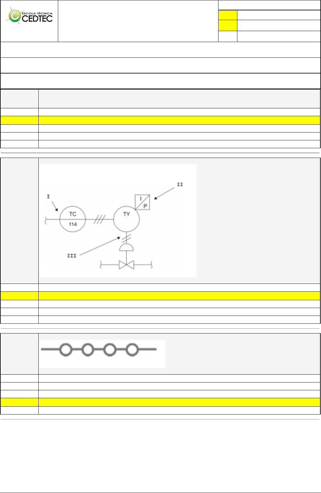 <p>Pincel Atômico - 19/08/2024 07:06:16 1/2</p><p>NILTON THIAGO</p><p>MARTINS CASTRO</p><p>Exercício Caminho do Conhecimento - Etapa 6 (26233)</p><p>Atividade finalizada em 12/08/2024 08:15:28 (2500506 / 2)</p><p>LEGENDA</p><p>Resposta correta na questão</p><p># Resposta correta - Questão Anulada</p><p>X Resposta selecionada pelo Aluno</p><p>Disciplina:</p><p>AUTOMAÇÃO ELÉTRICA [1029164] - Avaliação com 4 questões, com o peso total de 4,33 pontos [capítulos - 113]</p><p>Turma:</p><p>Curso Técnico: Eletrotécnica - Grupo: EAD - 02/24 - EAD ELE [113127]</p><p>Aluno(a):</p><p>91166439 - NILTON THIAGO MARTINS CASTRO - Respondeu 4 questões corretas, obtendo um total de 4,33 pontos como nota</p><p>[350019_180106]</p><p>Questão</p><p>001</p><p>O Dispositivo que emite um sinal de saída padronizado modificado, em relação à natureza do correspondente sinal de entrada, também</p><p>padronizado, é conhecido como:</p><p>Relé</p><p>X Conversor</p><p>Válvula de controle</p><p>Chave</p><p>Transmissor</p><p>[350021_180108]</p><p>Questão</p><p>002</p><p>No projeto de automação consta uma malha de controle, conforme figura abaixo.</p><p>Os elementos indicados em I, II e III, são, correta e respectivamente:</p><p>Transmissor de comando, instalado em bancada, controlador pneumático e sinal elétrico.</p><p>X Controlador de temperatura, instalado no campo, conversor eletropneumático e sinal pneumático.</p><p>Controlador de pressão, instalado no campo, conversor eletromagnético e sinal pneumático.</p><p>Conversor de temperatura, instalado em bancada, conversor magnético e sinal elétrico.</p><p>Controlador térmico, instalado em bancada, conversor eletrônico e sinal eletromagnético.</p><p>[350019_180107]</p><p>Questão</p><p>003</p><p>Considere a imagem abaixo.</p><p>A simbologia ilustrada, utilizada em projetos de automação de processos industriais, corresponde:</p><p>Ao sinal elétrico.</p><p>Ao tubo capilar.</p><p>À ligação mecânica.</p><p>X Ao sinal de software.</p><p>Ao sinal pneumático.</p><p>Pincel Atômico - 19/08/2024 07:06:16 2/2</p><p>[350018_180113]</p><p>Questão</p><p>004</p><p>A Norma S51 ISA (International Society of Automation) estabelece os símbolos gráficos para identificação dos instrumentos e dos</p><p>sistemas de instrumentação usados para medição e controle.</p><p>De acordo com a Norma S51 ISA, o símbolo da figura representa um instrumento:</p><p>Indicador controlador multivariável, montado no painel principal de controle.</p><p>Controlador independente de temperatura, montado atrás do painel principal de controle.</p><p>Controlador independente de umidade, montado atrás do painel principal de controle.</p><p>X Indicador controlador de umidade, montado no painel principal de controle.</p><p>Controlador independente multivariável, montado atrás do painel principal de controle.</p>