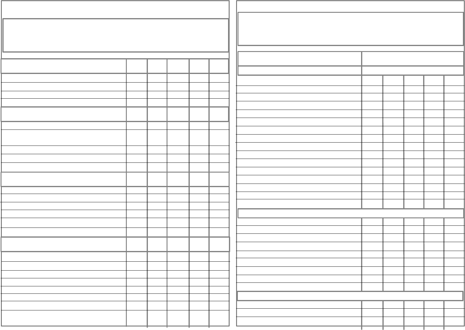 <p>ACOMPANHAMENTO DE HABILIDADES BÁSICAS</p><p>NOME: ____________________________________________________ NASC: ___/___/____</p><p>INSTITUIÇÃO DE ENSINO: _______________________________________________________</p><p>PROFESSOR (A): ___________________________________________ TURMA/ANO: ____________</p><p>MONITOR (A): ______________________________________________</p><p>ATENÇÃO</p><p>SENTAR</p><p>ESPERAR</p><p>CONTATO VISUAL</p><p>SE EXPRESSAR /INTERAGIR</p><p>IMITAÇÃO</p><p>IMITAR MOVIMENTOS MOTORES GROSSOS</p><p>IMITAR AÇÕES COM OBJETOS</p><p>IMITAR MOVIMENTOS MOTORES FINOS</p><p>IMITAR MOVIMENTOS FONOARTICULATÓRIOS</p><p>IMITAR MOVIMENTOS GROSSOS EM PÉ</p><p>IMITAR SEQUÊNCIA DE MOVIMENTOS</p><p>LINGUAGEM</p><p>SEGUIR INSTRUÇÕES DE UM PASSO</p><p>SEGUIR INSTRUÇÕES DE DOIS PASSOS</p><p>IDENTIFICAR PARTES DO CORPO</p><p>IDENTIFICAR PESSOAS FAMILIARES</p><p>IDENTIFICAR OBJETOS</p><p>IDENTIFICAR FIGURAS</p><p>LINGUAGEM</p><p>APONTAR EM DIREÇÃO A ITENS DESEJADOS</p><p>PRODUZIR SONS COM FUNÇÃO COMUNICATIVA</p><p>IMITAR SONS</p><p>AUMENTAR OS PEDIDOS VOCAIS</p><p>NOMEAR PESSOAS FAMILIARES</p><p>NOMEAR OBJETOS</p><p>NOMEAR FIGURAS</p><p>EXPRESSAR DESEJOS/SENTIMENTOS/DOR</p><p>HABILIDADES NO AMBIENTE ESCOLAR</p><p>BUSCA ATENÇÃO</p><p>BUSCA INTERAGIR COM COLEGAS</p><p>BUSCA INTERAGIR COM OS PROFISSIONAIS</p><p>COMPREENDE EXPRESSÕES FACIAIS</p><p>ATENDE A COMANDOS DOS COLEGAS</p><p>ATENDE A COMANDOS DOS PROFISSIONAIS</p><p>COMPREENDE REGRAS</p><p>ACEITA OBEDECER REGRAS</p><p>PARTICIPA DE MOMENTOS EM GRUPO</p><p>BRINCA DE FORMA ISOLADA</p><p>BRINCA COM OS COLEGAS</p><p>ACEITA AJUDA</p><p>SOLICITA AJUDA</p><p>ACEITA CONTATO FÍSICO</p><p>MANTÉM CONVERSAS</p><p>SE ISOLA</p><p>ACOMPANHAMENTO DE HABILIDADES BÁSICAS</p><p>NOME: ____________________________________________________ NASC: ___/___/____</p><p>INSTITUIÇÃO DE ENSINO: _______________________________________________________</p><p>PROFESSOR (A): ___________________________________________ TURMA/ANO: ____________</p><p>MONITOR (A): ______________________________________________</p><p>AVALIAÇÃO POR ESCALA DE CORES</p><p>SOCIALIZAÇÃO</p><p>COMUNICAÇÃO</p><p>FAZ CONTATO VISUAL</p><p>UTILIZA GESTOS</p><p>UTILIZA A LIGUAGEM ORAL</p><p>UTILIZA COMUNICAÇÃO VISUAL (IMAGENS)</p><p>APONTA PARA O QUE DESEJA</p><p>CONDUZ UMA PESSOA AO QUE DESEJA</p><p>MOSTRA /LOCALIZA O QUE LHE É SOLICITADO</p><p>COMPREENDE COMANDOS</p><p>EXPRESSA SENTIMENTOS OU DOR</p><p>CONSCIÊNCIA DO EU</p><p>SE RECONHECE EM ESPELHO</p><p>SE RECONHECE EM FOTOS</p><p>IDENTIFICA PARTES DO SEU CORPO</p><p>CONSCIÊNCIA DO OUTRO</p><p>RECONHECE PESSOAS EM FOTOS</p><p>RECONHECE COMPONETES FAMILIARES</p><p>RECONHECE COLEGAS DA ESCOLA</p><p>RECONHECE PROFISSIONAIS</p><p>ATIVIDADES FUNCIONAIS</p><p>UTILIZA FRALDA</p><p>UTILIZA O SANITÁRIO PARA XIXI</p><p>UTILIZA O SANITÁRIO PARA FEZES</p><p>SE LIMPA SOZINHO</p><p>SE LIMPA COM CERTA AJUDA</p><p>LAVA AS MÃOS SEM AUXÍLIO</p><p>ESCOVA OS DENTES SEM AUXÍLIO</p><p>BEBE ÁGUA SEM AUXÍLIO (BEBEDOURO OU GARRAFA)</p><p>ABRE MOCHILA/ESTOJO/LANCHEIRA SEM AUXÍLIO</p><p>SE ALIMENTA SEM AUXÍLIO</p><p>SE VESTE SEM AUXÍLIO</p><p>AMARRA CADARÇOS</p><p>COLOCA A MOCHILA SOZINHO</p><p>GUARDA SEUS PERTENCES SOZINHO</p><p>CORPORAL</p><p>LATERALIDADE</p><p>NOÇÃO DE ESPAÇO</p><p>EQUILÍBRIO</p><p>COORDENÇÃO MOTORA AMPLA</p><p>* PULA COM UM PÉ SÓ</p><p>* PULA COM OS DOIS PÉS</p><p>* SOBE DEGRAUS</p><p>* DESCE DEGRAUS UTILIZANDO OS DOIS PÉS PARA APOIO</p><p>* CORRE EM LINHA RETA</p><p>* SE AGACHA</p><p>* ENGATINHA</p><p>* PERPASSA OBSTÁCULOS</p><p>* ANDA NAS PONTAS DOS PÉS</p><p>* ROLA</p><p>* ESCORREGA</p><p>* SALTA</p><p>COORDENAÇÃO MOTORA FINA</p><p>* UTILIZA O LÁPIS</p><p>* RECORTA COM AS MÃOS</p><p>* RECORTA COM TESOURA</p><p>* COLA SEM AUXÍLIO</p><p>* ENCAIXA SEM AUXÍLIO</p><p>* PINTA DENTRO DOS ESPAÇOS</p><p>* DESENHA</p><p>* AMASSA</p><p>* ALINHAVA</p><p>* ABRE EMBALAGENS/OBJETOS</p><p>* FECHA EMBALAGENS/OBJETOS</p><p>* ENROSCA</p><p>* DESENROSCA</p><p>* MODELA</p><p>* MONTA</p><p>* DESMONTA</p><p>* PINÇA</p><p>* PUNÇÃO</p><p>* PRESSIONA</p><p>* APERTA</p><p>COGNITIVO</p><p>RECONHECE CORES E FORMAS</p><p>RECONHECE LETRAS E NÚMEROS</p><p>SEQUENCIA CORRETAMENTE</p><p>REALIZA PAREAMENTO</p><p>DIFERENCIA GRAVURAS/IMAGENS/DETALHES</p><p>DETÉM DE TEMPORALIDADE</p><p>MONTA QUEBRA-CABEÇAS</p><p>MONTA JOGOS COM PEÇAS</p><p>DIFERENCIA E RELACIONA OBJETOS/IMAGENS</p><p>MANTÉM ATENÇÃO CONCENTRADA</p><p>MANTÉM ATENÇÃO ALTERNADA</p><p>SE INTERESSA POR OUTRAS LÍNGUAS</p><p>SE INTERESSA PELA LINGUAGEM ESCRITA</p><p>SE INTERESSA POR ÁREAS EXATAS</p><p>SE INTERESSA POR ARTES</p><p>SE INTERESSA POR ÁREAS HUMANAS</p><p>REALIZA INFERÊNCIAS</p>
