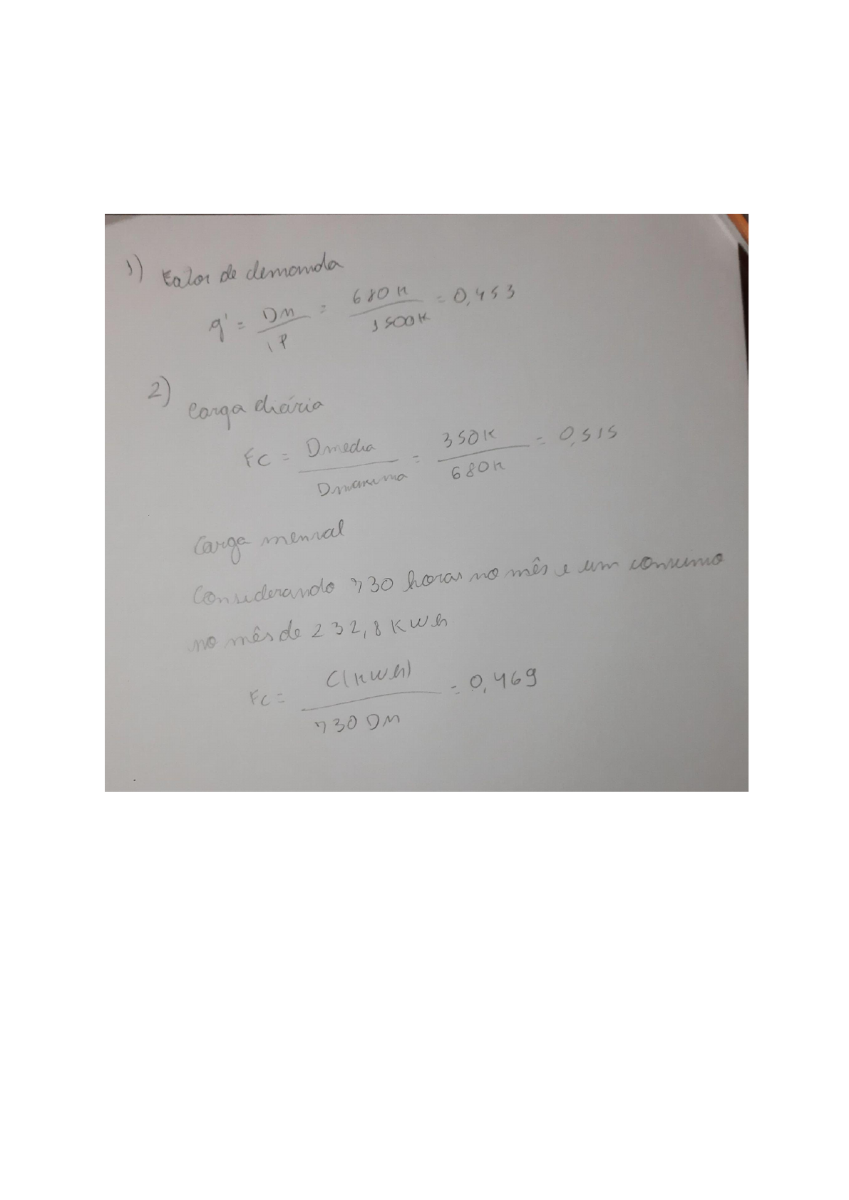 <p>Primeiro Trabalho de Industriais</p><p>Vinicius de Lucca Cota e Silva, 201910739</p><p>Figura 1: Resolução de (i) e (ii)</p><p>Fonte: do autor</p><p>(iii) De acordo com as disposições da Resolução Normativa ANEEL nº 1.000/2021 e do</p><p>Módulo 7 dos Procedimentos de Regulação Tarifária – Proret, as unidades consumidoras</p><p>pertencentes ao Grupo A englobam as categorias de Alta Tensão (Subgrupos A1, A2 e A3),</p><p>Média Tensão (Subgrupos A3a e A4), e sistemas subterrâneos (Subgrupo AS). A</p><p>determinação das tarifas ocorre mediante duas modalidades: a Horária Azul, que compreende</p><p>tarifas diferenciadas para consumo de energia elétrica e demanda de potência conforme os</p><p>postos tarifários ao longo do dia, aplicável a todos os subgrupos do Grupo A; e a Horária</p><p>Verde, que oferece tarifas distintas para o consumo de energia elétrica, considerando os</p><p>postos tarifários, e uma única tarifa para a demanda de potência, destinada aos subgrupos</p><p>A3a, A4 e AS.</p><p>A modalidade tarifária Horária Verde se caracteriza por uma tarifa única para a</p><p>demanda, sem segmentação horária, além de tarifas específicas para o consumo de energia</p><p>elétrica nos postos tarifários de ponta e fora de ponta. Por sua vez, a modalidade tarifária</p><p>Horária Azul é caracterizada por tarifas distintas para a demanda nos postos tarifários de</p><p>ponta e fora de ponta, assim como tarifas específicas para o consumo de energia elétrica nos</p><p>mesmos postos tarifários.</p><p>Os postos tarifários são definidos conforme a área de concessão ou permissão,</p><p>aplicando-se nos dias úteis. Nos finais de semana e feriados nacionais, todas as horas são</p><p>consideradas fora de ponta. O horário de ponta compreende um período diário de 3 horas</p><p>consecutivas, com exceção aos sábados, domingos e feriados nacionais, enquanto o horário</p><p>fora de ponta engloba as horas consecutivas e complementares ao horário de ponta e</p><p>intermediário.</p><p>É importante ressaltar que a tarifa verde possui um único valor para a demanda, com</p><p>um preço mais elevado no horário de ponta no transporte, enquanto a tarifa azul apresenta</p><p>dois valores de demanda, variando de acordo com as horas de utilização diária. Diante disso,</p><p>opto pela tarifa azul devido a informação de que a curva se repete diariamente, sendo a maior</p><p>demanda registrada no horário fora de ponta, o que se mostra mais vantajoso</p><p>financeiramente.</p><p>Para a classe industrial, são aplicadas as tarifas homologadas para o Grupo A. O</p><p>Grupo A é composto por unidades consumidoras com conexão em tensão igual ou superior a</p><p>2,3 kV, ou atendidas por sistema subterrâneo de distribuição em tensão inferior a 2,3 kV. Esse</p><p>grupo é subdividido nos seguintes subgrupos, cuja determinação depende da tensão de</p><p>conexão:</p><p>a) Subgrupo A1: tensão de conexão igual ou superior a 230 kV;</p><p>b) Subgrupo A2: tensão de conexão igual ou superior a 88 kV e igual ou inferior a 138 kV;</p><p>c) Subgrupo A3: tensão de conexão igual a 69 kV;</p><p>d) Subgrupo A3a: tensão de conexão igual ou superior a 30 kV e igual ou inferior a 44 kV;</p><p>e) Subgrupo A4: tensão de conexão igual ou superior a 2,3 kV e igual ou inferior a 25 kV;</p><p>f) Subgrupo AS: tensão de conexão inferior a 2,3 kV, proveniente de sistema subterrâneo de</p><p>distribuição.</p><p>Dado que não há informações específicas sobre a tensão de conexão para determinar o</p><p>subgrupo, optou-se por designar apenas o pertencimento ao Grupo A.</p>