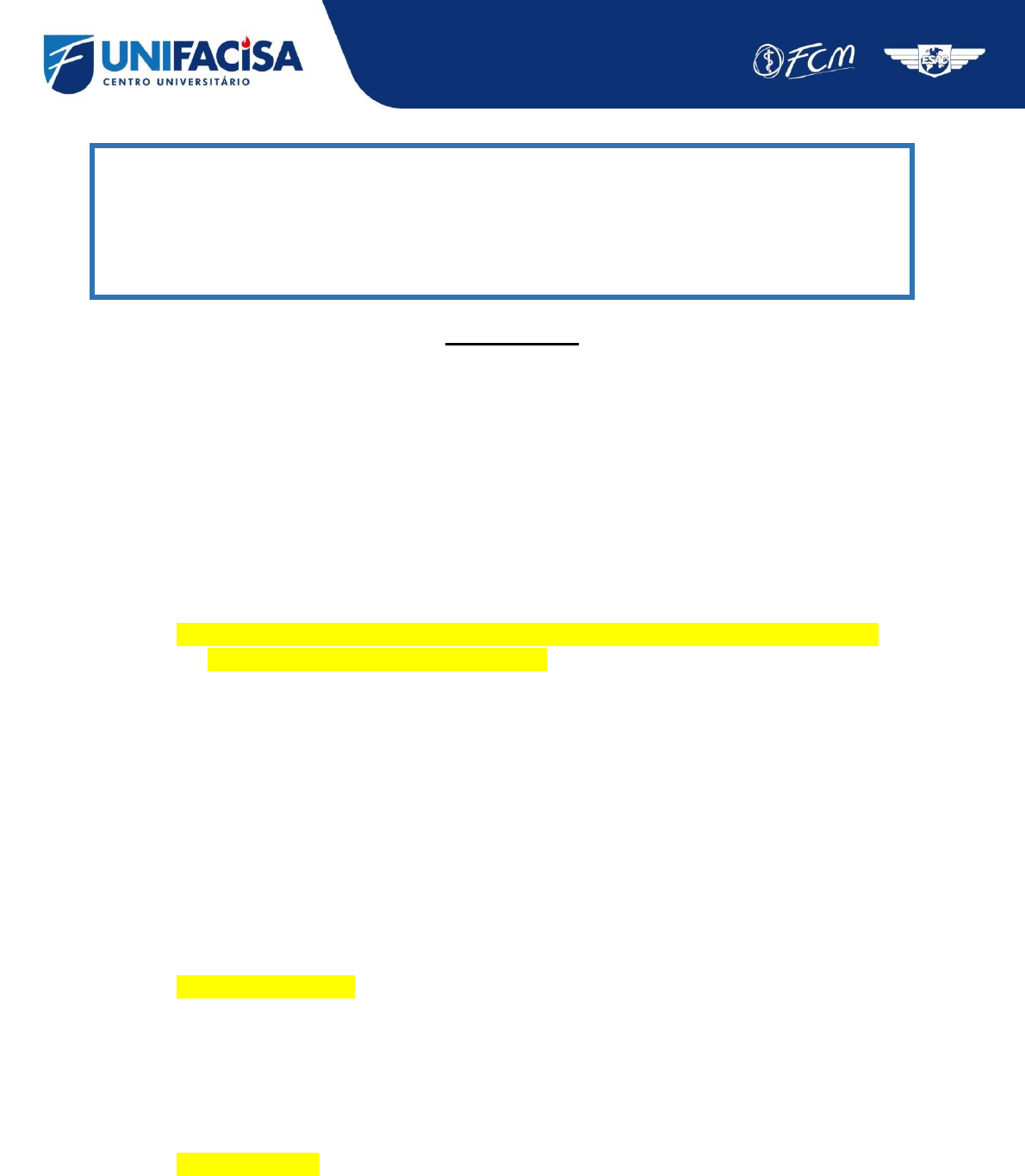 <p>DISCIPLINA: Metodologia Científica – AVALIAÇÃO DE I UNIDADE SEMESTRE: 2018.2</p><p>PROFESSORA: Roumayne Fernandes</p><p>ALUNO: __________________________________________________________________</p><p>N</p><p>O</p><p>DE MATRÍCULA: _________________________</p><p>DATA: _____ / ______ / ______</p><p>AVALIAÇÃO</p><p>1- (UFSC-2017) Em um estudo de intervenção que objetivava verificar a associação do uso de</p><p>ácido acetilsalicílico (ASS) com estreptoquinase para reduzir a mortalidade pós-infarto agudo</p><p>do miocárdio, foi encontrado o Número Necessário para Tratar de 20 (NNT=20). Quanto ao</p><p>impacto dessa intervenção, segundo o referido estudo, é correto afirmar.</p><p>a) 20 pacientes morrem pós-infarto agudo do miocárdio em cada 100 pacientes que são</p><p>tratados com ASS e estreptoquinase</p><p>b) ASS e estreptoquinase</p><p>c) 20 pacientes morrem pós-infarto agudo do miocárdio em cada 20 pacientes tratados</p><p>com ASS e estreptoquinase</p><p>d) 20 pacientes devem ser tratados com com ASS e estreptoquinase para que uma morte</p><p>pós-infarto agudo do miocárdio seja evitada</p><p>e) 2 pacientes morrem pós-infarto agudo do miocárdio em cada 10 pacientes tratados</p><p>com ASS e estreptoquinase</p><p>2- (INCA- 20178) Uma equipe de profissionais que atua num programa de Hanseníase deseja</p><p>realizar um estudo científico para conhecer a interferência do estado nutricional como fator de</p><p>risco para o aparecimento de reações hansênica em pacientes com a forma multibacilar da</p><p>doença. Após o consentimento dos participantes, através do termo livre e esclarecido,</p><p>realizaram a avaliação nutricional de todos os casos novos multibacilares com diagnóstico de</p><p>janeiro a dezembro do ano de 2016 e que serão acompanhados até o aparecimento da reação</p><p>hansênica. O caso é um estudo epidemiológico do tipo:</p><p>a) Seccional</p><p>b) Caso-controle</p><p>c) Coorte prospectivo</p><p>d) Coorte retrospectivo</p><p>e) Ecológico</p><p>3- Um estudo quantitativo, para avaliar a incidência de uma doença em um grupo de pessoas</p><p>que inicialmente, não a possuem, utiliza-se, como medida de efeito:</p><p>a) Risco relativo</p><p>b) Risco absoluto</p><p>c) Risco atribuível</p><p>d) Razão de chances</p><p>e) Razão de prevalência</p><p>4- Uma companhia farmacêutica mostrou em um artigo: 1500 sujeitos com um resfriado foram</p><p>tratados com um medicamento. Dentro de 3 dias, 95% destes estavam assintomáticos e este</p><p>resultado se revelou estatisticamente significativo. A companhia diz que o medicamento é</p><p>eficaz. Esta conclusão está fundamentada nos achados do estudo?</p><p>a) Sim, pois o efeito foi muito grande (95% dos sujeitos se beneficiaram do tratamento)</p><p>b) Não, pois a significância estatística indicou que a hipótese nula (ausência de efeito) estava</p><p>correta.</p><p>c) Não, porque não havia grupo de comparação no estudo.</p><p>d) Sim, porque o efeito do tratamento não poderia ser explicado pela chance</p><p>e) Não, porque a amostra do estudo era muito pequena</p><p>5- (UFRJ-2015) O Hospital Universitário Gaffrée e Guinle é referência no atendimento aos</p><p>portadores de infecção HIV/Aids. Alunos de pós-graduação formularam um projeto para</p><p>estudar prevalência de tuberculose nestes pacientes. O melhor desenho de estudo é</p><p>a) Ensaio Clinico duplo cego e randomizado.</p><p>b) Estudo Caso Controle.</p><p>c) Transversal.</p><p>d) Ensaio Clinico.</p><p>e) Estudo de coorte.</p><p>6- Uma companhia farmacêutica mostrou em um artigo: 1500 sujeitos com um resfriado foram</p><p>tratados com um medicamento. Dentro de 3 dias, 95% destes estavam assintomáticos e este</p><p>resultado se revelou estatisticamente significativo. A companhia diz que o medicamento é</p><p>eficaz. Esta conclusão está fundamentada nos achados do estudo?</p><p>a) Sim, pois o efeito foi muito grande (95% dos sujeitos se beneficiaram do tratamento)</p><p>b) Não, pois a significância estatística indicou que a hipótese nula (ausência de efeito) estava</p><p>correta.</p><p>c) Não, porque não havia grupo de comparação no estudo.</p><p>d) Sim, porque o efeito do tratamento não poderia ser explicado pela chance</p><p>e) Não, porque a amostra do estudo era muito pequena</p><p>7- assinale a alternativa que apresenta, corretamente, os tipos de estudos observacionais</p><p>adequados para investigar o risco de desenvolver uma doença ou evento adverso à saúde:</p><p>a) Ensaios clínicos aleatórios controlados e estudos ecológicos</p><p>b) Ensaios clínicos aleatórios controlados e estudos de coorte</p><p>c) Estudos seccionais e estudos do tipo caso-controle</p><p>d) Estudos de coorte e estudos do tipo caso-controle</p><p>e) Estudos ecológicos e estudos seccionais</p><p>8- Um ensaio clínico foi realizado para investigar a efetividade de uma nova droga na redução</p><p>da mortalidade pós-infarto do miocárdio. A nova droga e o placebo foram preparados e</p><p>injetados em de forma que os pacientes não soubessem quem estava tomando a nova droga</p><p>ou o placebo. Qual o nome desse procedimento e qual o seu objetivo?</p><p>a) mascaramento. Reduzir o viés de seleção</p><p>b) mascaramento. Reduzir o viés de aferição</p><p>c) randomização. Reduzir o viés de seleção</p><p>d) randomização. Reduzir o viés de aferição</p><p>e) randomização. Garantir chances iguais entre os participantes dos dois grupos</p><p>9- Um estudo foi realizado com o objetivo de identificar os fatores associados ao abandono do</p><p>tratamento para aids em pacientes atendidos no Centro de Saúde A. Foram selecionados</p><p>retrospectivamente 100 pacientes, sendo 38 pacientes que abandonaram o tratamento e 62</p><p>pacientes que foram escolhidos aleatoriamente por sorteio dentre aqueles que concluíram o</p><p>tratamento. Os dados foram obtidos através de revisão de prontuário, com preenchimento de</p><
