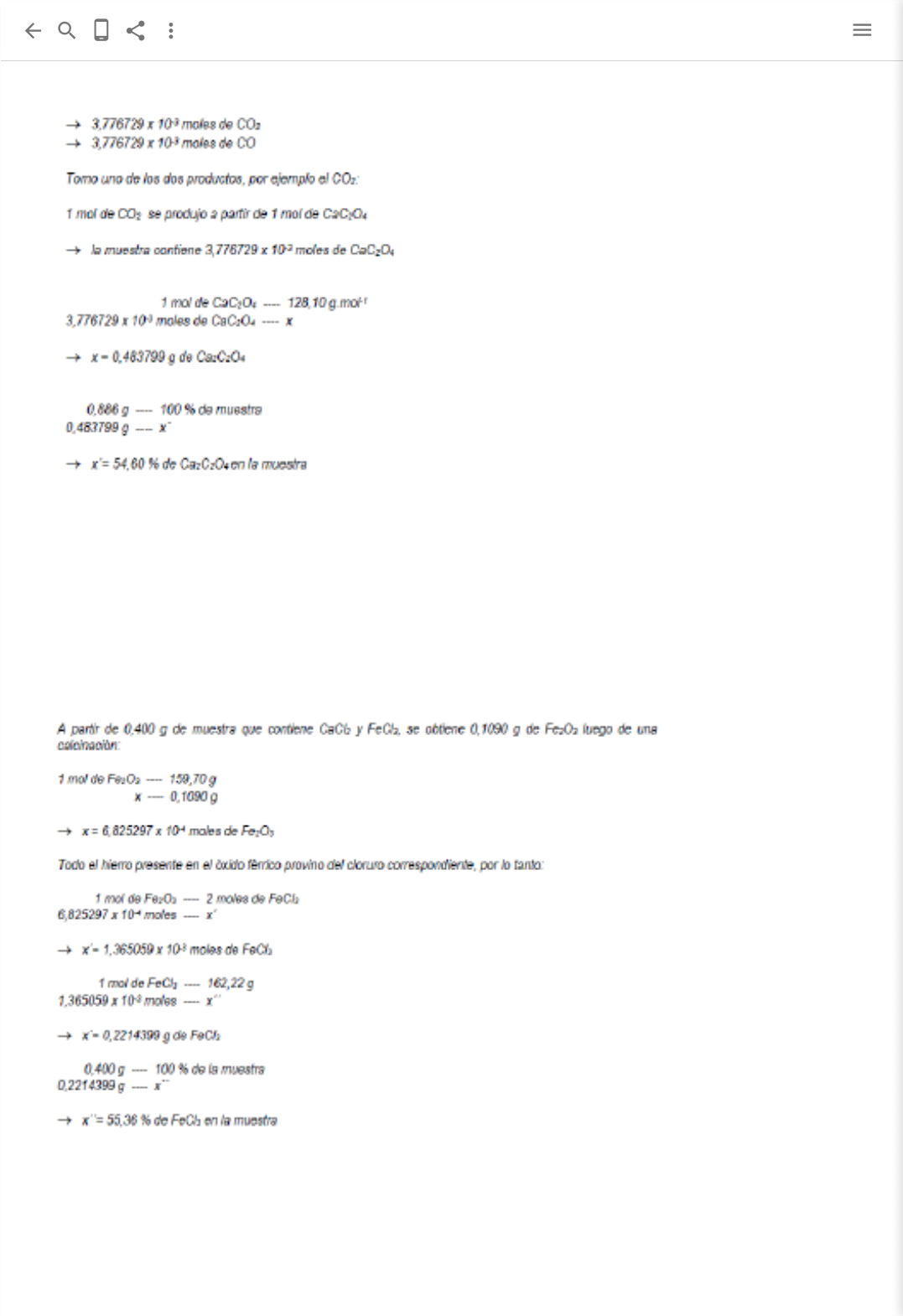 <p>Sobre • Central de ajuda •</p><p>Gamification • Trabalhe conosco •</p><p>Blog • Política de privacidade •</p><p>Termos de uso</p><p>© 2019 Passei Direto</p><p>Materiais de estudo</p><p>Perguntas e respostas</p><p>Minhas disciplinas</p><p>Cálculo Numérico</p><p>Mecânica Geral</p><p>Hidráulica I</p><p>Topografia I</p><p>Resistência dos Materi…</p><p>Meu Perfil</p><p>Listas 1</p><p>Histórico</p><p>Enviados</p><p> Buscar material de estudo e e… 1 Samuel</p><p>6.103.860º Seja Pr</p><p>Conteúdo 3 de 3 este mês. Para estudar ilimitado, ganhe pontos ou assine o Premium</p><p>3. Para determinar o conteúdo de cloreto de cálcio e cloreto de ferro (III) numa amostra se procedeu da seguinte maneira:</p><p> 0,4000 g de amostra foram dissolvidos em solução amoniacal diluída e aquecida à ebulição. O precipitado obtido foi calcinado, g</p><p>massa de óxido de ferro (III) de 0,1090 g.</p><p> 0,6500 g da mesma amostra foram dissolvidos em ,00 mL de água destilada. Desta solução tomou-se uma alíquota de 10,00 100</p><p>titulada com nitrato de prata 0,1000 M, resultando num volume gasto até o ponto final da titulação equivalente a 9,05 mL.</p><p>Calcule as percentage de cloreto de cálcio e de cloreto de Fe(III) na amostra. ns</p><p>MM (Fe ) = 159,70 g.mol2O3</p><p>-1</p><p>MM (CaCl ) = 110,99 g.mol2</p><p>-1</p><p>MM (FeCl ) = 162,22 g.mol3</p><p>-1</p><p>Resposta: 55,36 % de FeCl e 20,15 % de CaCl . 3 2</p><p> Salvar</p><p>https://saibamais.passeidireto.com/sobre-nos</p><p>https://centraldeajuda.passeidireto.com/</p><p>https://www.passeidireto.com/gamificacao</p><p>https://saibamais.passeidireto.com/carreiras</p><p>https://www.passeidireto.com/blog</p><p>https://www.passeidireto.com/privacidade</p><p>https://www.passeidireto.com/termos-de-uso</p><p>https://www.passeidireto.com/</p><p>https://www.passeidireto.com/perguntas-respostas</p><p>https://www.passeidireto.com/disciplina/seguindo</p><p>https://www.passeidireto.com/disciplina/calculo-numerico/</p><p>https://www.passeidireto.com/disciplina/mecanica-geral/</p><p>https://www.passeidireto.com/disciplina/hidraulica-i/</p><p>https://www.passeidireto.com/disciplina/topografia-i/</p><p>https://www.passeidireto.com/disciplina/resistencia-dos-materiais-i/</p><p>https://www.passeidireto.com/perfil/47733126/materiais</p><p>https://www.passeidireto.com/perfil/47733126/listas</p><p>https://www.passeidireto.com/perfil/47733126/historico</p><p>https://www.passeidireto.com/perfil/47733126/enviados</p><p>https://www.passeidireto.com/</p>