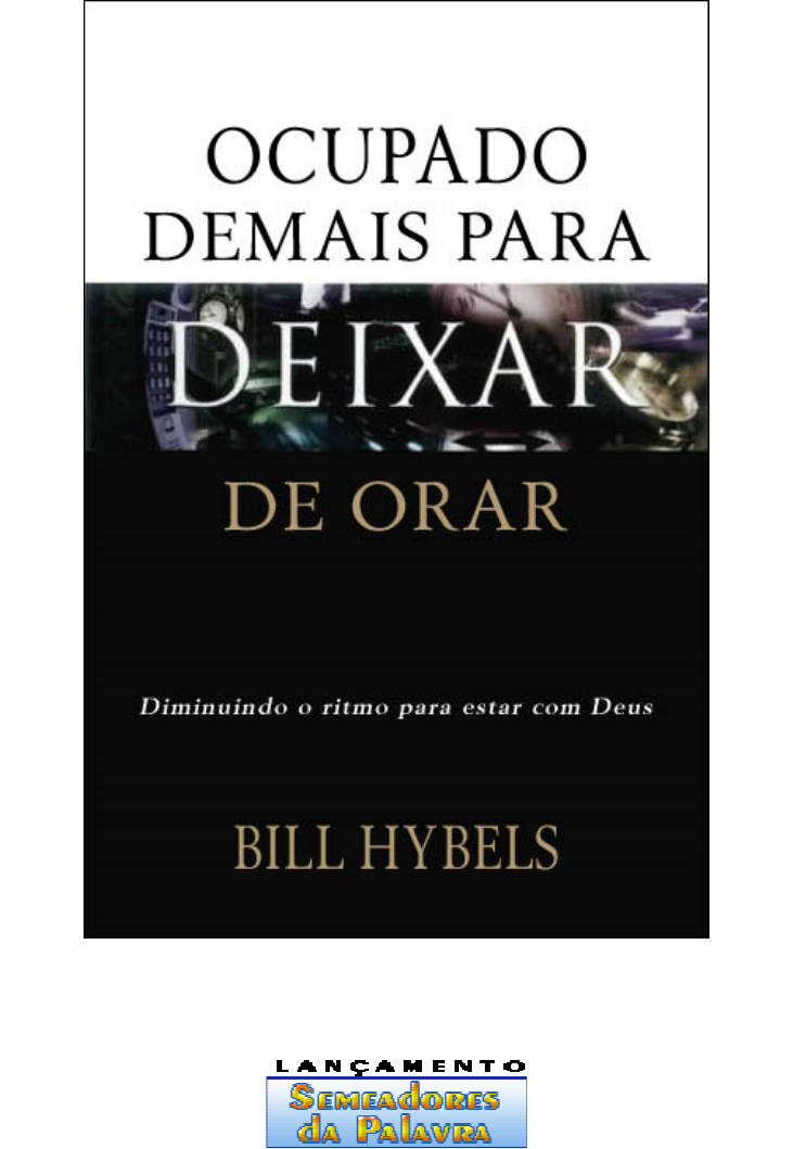 <p>Digitalizado por Luis Carlos</p><p>HTTP://SEMEADORESDAPALAVRA.QUEROUMFORUM.COM</p><p>Copyright © 1998 Bill Hybels Copyright ®</p><p>1999 Editora United Press Ltda.</p><p>Título do Original: Too Busy Not To Pray: lOth Anniversary Edition InterVarsity Press</p><p>Capa: Red Beans Design</p><p>Tradução: Magaly Fraga Moreira</p><p>Revisão: M. Cândida Becker e Elmira Pasquini</p><p>Supervisão Editorial e de Produção: Vera Villar</p><p>Supervisão da Capa: Cario André Carrenho</p><p>Ia Edição— 1999</p><p>Dados Internacionais de Catalogação na Publicação (CIP)</p><p>(Câmara Brasileira do Livro, SP, Brasil)</p><p>Hybels, Bill.</p><p>Ocupado Demais para Deixar de Orar / Bill Hybels;</p><p>Tradução Magaly Fraga Moreira.</p><p>— Campinas, SP: Editora United Press, 1999.</p><p>—</p><p>Título original: Too busy not to pray.</p><p>ISBN 85-243-0139-2 1. Oração I. Título.</p><p>99-0606____________________________________________CDD-248.38</p><p>Índices para catálogo sistemático</p><p>1. Oração: Prática religiosa: Cristianismo 248.32</p><p>Publicado no Brasil com a devida autorização pela Editora United Press Ltda.</p><p>Rua Taquaritinga 118, 13036-530 Campinas - SP Tel/Fax (019) 278-3144</p><p>Visite nosso website:</p><p>http://www.unitedpress.com</p><p>A Joel Jager,</p><p>um amigo para sempre</p><p>Sumário</p><p>DEUS NOS CHAMA À SUA PRESENÇA</p><p>1- A Presença de Deus, O Poder de Deus 5</p><p>2- Deus Está Pronto 11</p><p>3- Deus É Poderoso 20</p><p>DEUS NOS CONVIDA A CONVERSAR COM ELE</p><p>4- Hábitos Edificantes para o Coração 28</p><p>5- Orando com Jesus 33</p><p>6- Um Padrão de Oração 41</p><p>7- A Oração Que Move Montanhas 51</p><p>DEUS DERRUBA AS BARREIRAS QUE NOS SEPARAM DELE</p><p>8- A Dor da Oração Não Respondida 59</p><p>9- Destruidores de Oração 67</p><p>10- Esfriando na Oração 75</p><p>DEUS FALA AOS NOSSOS CORAÇÕES</p><p>11- Diminuindo o Ritmo 83</p><p>12- A Importância de Ouvir 90</p><p>13- Como Ouvir a Orientação de Deus 97</p><p>14- O Que Fazer com as Orientações 103</p><p>15- Vivendo na Presença de Deus 112</p><p>PERGUNTAS PARA REFLEXÃO E DISCUSSÃO 121</p><p>GUIA PARA ORAÇÃO EM GRUPO OU PESSOAL 127</p><p>1</p><p>A Presença de Deus, o Poder de Deus</p><p>A oração é um ato antinatural</p><p>Desde o nascimento aprendemos as regras da autoconfiança enquanto nos</p><p>esforçamos e batalhamos para ganhar auto-suficiência. A oração vai contra</p><p>estes valores profundamente estabelecidos. É um atentado à autonomia</p><p>humana, uma ofensa à independência do viver. Para as pessoas que vivem</p><p>apressadas, determinadas a vencer por si mesmas, orar é uma interrupção</p><p>desagradável.</p><p>A oração não faz parte de nossa orgulhosa natureza humana. No entanto,</p><p>em algum momento, quase todos nós chegamos ao ponto em que caímos</p><p>de joelhos, inclinamos a cabeça, fixamos nossa atenção em Deus e oramos.</p><p>Podemos até nos certificar de que ninguém esteja olhando, podemos ficar</p><p>envergonhados, mas, a despeito de tudo isto, nós oramos.</p><p>Porque somos induzidos a orar? Creio que existem duas explicações</p><p>possíveis.</p><p>Rodeados pela presença de Deus</p><p>Oramos porque, por intuição ou experiência, compreendemos que a</p><p>comunhão mais íntima com Deus só se obtém por intermédio da oração.</p><p>Pergunte às pessoas que enfrentaram tragédias ou provações, dor ou</p><p>sofrimento profundo, fracasso ou derrota, solidão ou discriminação.</p><p>Pergunte o que ocorreu em suas almas quando, finalmente, caíram de</p><p>joelhos e derramaram o coração diante do Senhor.</p><p>Pessoas assim me confessaram: "Não consigo explicar, mas senti como se</p><p>Deus me compreendesse."</p><p>Outras disseram: "Senti-me rodeada por sua presença, ou senti um conforto</p><p>e uma paz que jamais experimentei."</p><p>O apóstolo Paulo viveu esta experiência. Escrevendo aos cristãos de</p><p>Filipos, disse:</p><p>"Não andeis ansiosos de cousa alguma; em tudo, porém, sejam conhecidas,</p><p>diante de Deus, as vossas petições, pela oração e pela súplica, com ações</p><p>de graças. E a paz de Deus, que excede todo o entendimento, guardará o</p><p>vosso coração e a vossa mente em Cristo Jesus" (Filipenses 4. 6-7).</p><p>Anos atrás, meu pai, ainda relativamente jovem e muito ativo, morreu</p><p>vítima de um ataque cardíaco. Enquanto dirigia para a casa de minha mãe,</p><p>em Michigan, eu ia pensando em como sobreviveria sem a pessoa que,</p><p>mais que qualquer outra, acreditara em mim.</p><p>Aquela noite, na cama, lutei com Deus. "Por que foi acontecer uma coisa</p><p>destas? Como vou entender o que aconteceu? Será que vou me recuperar</p><p>da perda do meu pai? Se o Senhor me ama de verdade, como pode fazer</p><p>isso comigo?"</p><p>De súbito, no meio da noite, tudo mudou. Foi como se eu tivesse dobrado</p><p>uma esquina e me visse diante de uma nova direção. Deus falou comigo:</p><p>"Eu sou poderoso. A minha suficiência é o bastante. No momento você</p><p>pode ter dúvidas, mas confie em mim."</p><p>Esta experiência talvez pareça irreal, porém os resultados foram notáveis.</p><p>Depois daquela noite cheia de desespero e de</p><p>lágrimas, jamais fui torturado por dúvidas, quer em relação ao cuidado de</p><p>Deus para comigo, quer em relação à minha capacidade de viver sem meu</p><p>pai. Pesar, sim, pois a morte dele me entristeceu demais e sentirei sua falta</p><p>para sempre. Porém não me vi lançado à deriva, sem âncora e sem bússola.</p><p>No meio da noite mais negra da minha vida, um instante íntimo e poderoso</p><p>com Deus me proporcionou coragem, tranquilidade e esperança.</p><p>Um relacionamento íntimo</p><p>A oração nem sempre foi um dos meus pontos fortes. Durante muitos anos</p><p>fui pastor de uma grande igreja e sabia muito a respeito de oração mas a</p><p>praticava pouco em minha vida. Tenho a índole de um caval