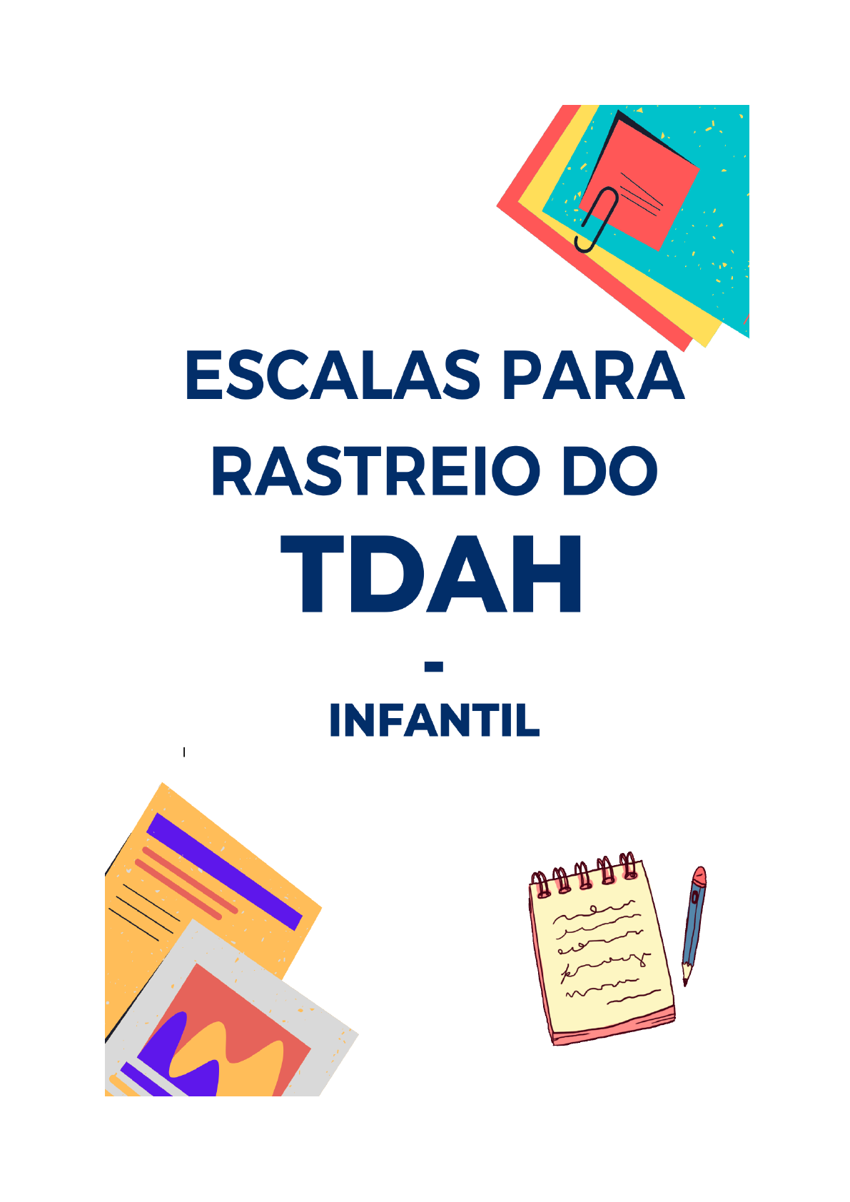 <p>Patrícia Walléria Araújo dos Santos Pimentel</p><p>Licenciado para - A</p><p>ci H</p><p>annah de A</p><p>raújo M</p><p>ota - 06306378499 - P</p><p>rotegido por E</p><p>duzz.com</p><p>TESTE DE TDAH PARA CRIANÇAS</p><p>Nome Paciente:_____________________________________ Idade:_______</p><p>S N</p><p>1. Fica esfregando as mãos, os pés ou fica se contorcendo na</p><p>cadeira?</p><p>2. É bagunceira e deixa tudo fora do lugar?</p><p>3. É difícil para ela(e) ficar parado assistindo um filme até o fim?</p><p>4. Parece que não escuta quando você conversa com ela e te</p><p>deixa falando sozinho?</p><p>5. É agitada demais e sobe em móveis ou armários mesmo</p><p>quando isso é totalmente inapropriado?</p><p>6. Não gosta nada de atividades calmas e serenas como aula de</p><p>Yoga ou meditação?</p><p>7. Tem dificuldade de esperar sua vez e passa na frente dos</p><p>outros?</p><p>8. Tem alguma dificuldade para permanecer sentado por mais de</p><p>1 hora?</p><p>9. Se distrai facilmente na escola, ou quando você conversa com</p><p>ela?</p><p>10. Fica muito agitada quando ouve música ou está num</p><p>ambiente novo, com muitas pessoas?</p><p>11. Gosta de se machucar com arranhões ou mordidas fazendo</p><p>isso de propósito?</p><p>12. Tem dificuldade para seguir as instruções que outra pessoa</p><p>dá?</p><p>13. Tem dificuldade para prestar atenção na escola e se distrai</p><p>mesmo num jogo que goste muito?</p><p>14. Tem dificuldade de completar uma tarefa porque se distrai e</p><p>começa logo outra?</p><p>15. Tem dificuldade para brincar de forma tranquila e sossegada?</p><p>16. Fala muito?</p><p>17. Costuma interromper ou incomodar os outros?</p><p>18. Parece não escutar o que está sendo dito, de forma</p><p>Patrícia Walléria Araújo dos Santos Pimentel</p><p>Licenciado para - A</p><p>ci H</p><p>annah de A</p><p>raújo M</p><p>ota - 06306378499 - P</p><p>rotegido por E</p><p>duzz.com</p><p>frequente?</p><p>19. Está sempre perdendo as coisas necessárias para tarefas ou</p><p>atividades na escola ou em casa?</p><p>20. Gosta de participar de atividades perigosas sem levar em</p><p>consideração as possíveis consequências?</p><p>Qual a predominância na maioria das respostas? ( ) S – Sim ( ) N – Não</p><p>Quantidade: S - __________ N - _________</p><p>Patrícia Walléria Araújo dos Santos Pimentel</p><p>Licenciado para - A</p><p>ci H</p><p>annah de A</p><p>raújo M</p><p>ota - 06306378499 - P</p><p>rotegido por E</p><p>duzz.com</p><p>PROTOCOLO DE CORREÇÃO DO TESTE DE TDAH PARA CRIANÇAS</p><p>Nome:______________________________________________Idade:_______</p><p>( ) MAIS OPÇÕES SIM - RESULTADO:</p><p>Atenção: A criança tem alto risco de ter déficit de atenção e hiperatividade.</p><p>É possível que a criança tenha déficit de atenção e hiperatividade, por isso realize o</p><p>encaminhamento da criança ao neuropediatra e/ou pediatra para identificar se</p><p>realmente o diagnóstico é esse, para então aprender a lidar melhor com esse tipo</p><p>de comportamento e, se necessário, iniciar o tratamento conforme determinação</p><p>médica.</p><p>( ) MAIS OPÇÕES NÃO - RESULTADO:</p><p>Atenção: A criança tem um baixo risco de ter hiperatividade.</p><p>É provável que a criança não tenha TDAH e esteja apenas passando por algum</p><p>momento difícil, onde em certas ocasiões seu mau comportamento chama a</p><p>atenção. Basta um pouco de atenção dos pais e professores para conseguir</p><p>identificar o que a criança tem e se é necessário continuar investigando e realizando</p><p>outros testes, entrevistas, anamneses, sondagens, atividades, enfim.</p><p>Patrícia Walléria Araújo dos Santos Pimentel</p><p>Licenciado para - A</p><p>ci H</p><p>annah de A</p><p>raújo M</p><p>ota - 06306378499 - P</p><p>rotegido por E</p><p>duzz.com</p><p>ESCALA TDAH CRIANÇA - ATÉ 16 ANOS</p><p>Nome Paciente:_____________________________________ Idade:_______</p><p>Marque apenas uma alternativa no itens abaixo:</p><p>1- Não consegue prestar muita atenção a detalhes ou comete erros por descuido</p><p>nos trabalhos da escola ou tarefas.</p><p>( ) Nem Um Pouco</p><p>( ) Só Um Pouco</p><p>( ) Bastante</p><p>( ) Demais</p><p>2- Tem dificuldade para manter a atenção em tarefas ou atividades de lazer.</p><p>( ) Nem Um Pouco</p><p>( ) Só Um Pouco</p><p>( ) Bastante</p><p>( ) Demais</p><p>3- Parece não estar ouvindo quando se fala diretamente com ele.</p><p>( ) Nem Um Pouco</p><p>( ) Só Um Pouco</p><p>( ) Bastante</p><p>( ) Demais</p><p>4- Não segue instruções até o fim e não termina deveres de escola, tarefas e</p><p>obrigações.</p><p>( ) Nem Um Pouco</p><p>( ) Só Um Pouco</p><p>( ) Bastante</p><p>( ) Demais</p><p>5- Tem dificuldade para organizar tarefas e atividades.</p><p>( ) Nem Um Pouco</p><p>Patrícia Walléria Araújo dos Santos Pimentel</p><p>Licenciado para - A</p><p>ci H</p><p>annah de A</p><p>raújo M</p><p>ota - 06306378499 - P</p><p>rotegido por E</p><p>duzz.com</p><p>( ) Só Um Pouco</p><p>( ) Bastante</p><p>( ) Demais</p><p>6- Evita, não gosta ou se envolve contra a vontade em tarefas que exigem esforço</p><p>mental prolongado.</p><p>( ) Nem Um Pouco</p><p>( ) Só Um Pouco</p><p>( ) Bastante</p><p>( ) Demais</p><p>7- Perde coisas necessárias para atividades (por exemplo, brinquedos, deveres da</p><p>escola, lápis ou livros).</p><p>( ) Nem Um Pouco</p><p>( ) Só Um Pouco</p><p>( ) Bastante</p><p>( ) Demais</p><p>8- Distrai-se com estímulos externos.</p><p>( ) Nem Um Pouco</p><p>( ) Só Um Pouco</p><p>( ) Bastante</p><p>( ) Demais</p><p>9- É esquecido em atividades do dia a dia.</p><p>( ) Nem Um Pouco</p><p>( ) Só Um Pouco</p><p>( ) Bastante</p><p>( ) Demais</p><p>10- Mexe com as mãos ou os pés ou se remexe na cadeira.</p><p>( ) Nem Um Pouco</p><p>( ) Só Um Pouco</p><p>( ) Bastante</p><p>Patrícia Walléria Araújo dos Santos Pimentel</p><p>Licenciado para - A</p><p>ci H</p><p>annah de A</p><p>raújo M</p><p>ota - 063