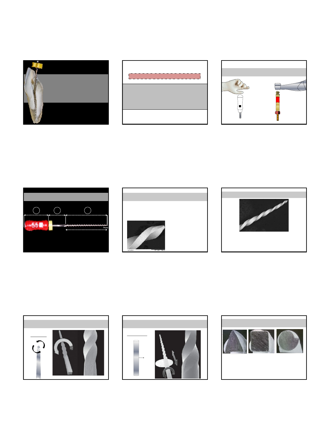 <p>6/13/2020</p><p>1</p><p>Instrumentos endodônticos,</p><p>Esvaziamento e Odontometria</p><p>do</p><p>Sistema de Canais Radiculares</p><p>Prof. Hermano camelo paiva</p><p>1. Acionamento</p><p>2. Processo de fabricação</p><p>3. Desenho da parte de trabalho</p><p>4. Natureza da liga metálica</p><p>Classificação dos instrumentos endodônticos</p><p>1. Acionamento</p><p>15</p><p>Instrumentos</p><p>Endodônticos</p><p>F</p><p>O</p><p>U</p><p>SP</p><p>F</p><p>O</p><p>U</p><p>SP</p><p>FOUSP</p><p>FOUSP</p><p>Partes do instrumento</p><p>Instrumentos Endodônticos</p><p>1-Cabo</p><p>2- Haste</p><p>Intermediária</p><p>Ponta</p><p>3-Haste de corte</p><p>Limitador (stop)</p><p>1 2 3</p><p>16mm</p><p>D0D16</p><p>Partes do instrumento: PONTA</p><p>Instrumentos Endodônticos</p><p>•Guiar e facilitar a penetração do</p><p>instrumento no interior do canal</p><p>Cônica, cônica piramidal, cônica circular</p><p>Ativa X Inativa</p><p>Partes do instrumento: HASTE DE CORTE</p><p>Instrumentos Endodônticos</p><p>F</p><p>O</p><p>U</p><p>SP</p><p>Corte ou raspagem das paredes do canal radicular quando o</p><p>instrumento é acionado por meio de alargamento ou limagem</p><p>Segmento da parte de trabalho sulcada, estendendo-se desde a</p><p>base da ponta até o intermediário do instrumento</p><p>2. Processo de Fabricação</p><p>Instrumentos Endodônticos</p><p>TORÇÃO</p><p>2. Processo de Fabricação</p><p>Instrumentos Endodônticos</p><p>USINAGEM</p><p>3. Desenho da parte de trabalho</p><p>Instrumentos Endodônticos</p><p>Corte</p><p>Flexibilidade</p><p>Resistência</p><p>6/13/2020</p><p>2</p><p>4. Natureza da liga metálica</p><p>1961</p><p>Cr 12% - protetor</p><p>Resistência à corrosão e à fratura</p><p>Grande tenacidade e dureza</p><p>AÇO INOXIDÁVEL</p><p>NÍQUEL-TITÂNIO</p><p>Instrumentos Endodônticos</p><p>Walia et.al 1988</p><p>Maior elasticidade e menor rigidez</p><p>Alta resistência à deformação</p><p>plástica e à torçãoLogar Salud</p><p>Padronização dos instrumentos</p><p>1ª SÉRIE</p><p>Instrumentos Endodônticos</p><p>2ª SÉRIE</p><p>*3ª SÉRIE</p><p>Instrumentos Endodônticos</p><p>Padronização dos instrumentos:</p><p>SÉRIE</p><p>ESPECIAL</p><p>Dimensões do instrumento</p><p>Instrumentos Endodônticos</p><p>Dimensões do instrumento: COMPRIMENTO</p><p>21mm</p><p>25mm</p><p>31mm</p><p>Parte de trabalho</p><p>16mm</p><p>Instrumentos Endodônticos</p><p>Dimensões do instrumento: Diâmetro e Conicidade</p><p>Instrumentos Endodônticos</p><p>Conicidade</p><p>de</p><p>0,02mm/mm</p><p>D0</p><p>D16</p><p>CONICIDADE:</p><p>O quanto o instrumento aumenta de</p><p>diâmetro a cada milímetro que se</p><p>caminha em direção ao cabo</p><p>Dimensões do instrumento: Diâmetro e Conicidade</p><p>Instrumentos Endodônticos</p><p>Conicidade</p><p>0,02mm/mm</p><p>D0</p><p>D16</p><p>0,55mm</p><p>0,57mm</p><p>0,59mm</p><p>0,61mm</p><p>0,63mm</p><p>0,65mm</p><p>0,67mm</p><p>0,69mm</p><p>0,71mm</p><p>0,73mm</p><p>0,75mm</p><p>0,77mm</p><p>0,79mm</p><p>0,83mm</p><p>0,81mm</p><p>0,85mm</p><p>D1</p><p>0,87mm</p><p>D2</p><p>D3</p><p>D4</p><p>D5</p><p>D6</p><p>D7</p><p>D8</p><p>D9</p><p>D10</p><p>D11</p><p>D12</p><p>D13</p><p>D14</p><p>D15</p><p>Tipos de instrumentos</p><p>•Ponta aguda</p><p>•Resistência a torção</p><p>•Rigidez</p><p>•Guia de penetração</p><p>com poder de corte</p><p>LIMAS K CONVENCIONAIS</p><p>25</p><p>Instrumentos Endodônticos</p><p>EXPLORAÇÃO</p><p>MODELAGEM</p><p>6/13/2020</p><p>3</p><p>LIMAS K FLEXÍVEIS</p><p>25</p><p>Instrumentos Endodônticos</p><p>• Maior torção</p><p>• Maior flexibilidade</p><p>• Guia de penetração sem poder de corte</p><p>MODELAGEM</p><p>LIMAS HEDSTROM</p><p>25</p><p>Instrumentos Endodônticos</p><p>Grande poder de corte</p><p>Pouca massa (fratura)</p><p>PULPECTOMIA</p><p>U</p><p>N</p><p>A</p><p>MLIMAGEM</p><p>Anatomia do Terço Apical</p><p>M</p><p>a</p><p>ch</p><p>a</p><p>d</p><p>o,</p><p>2</p><p>0</p><p>17</p><p>Câmara Pulpar</p><p>Porção Coronária</p><p>Canal Radicular</p><p>Porção Radicular</p><p>C</p><p>a</p><p>vid</p><p>a</p><p>d</p><p>e P</p><p>u</p><p>lp</p><p>a</p><p>r</p><p>F</p><p>O</p><p>U</p><p>SP</p><p>Didaticamente dividido em terços</p><p>trajeto cônico</p><p>Cervical > médio > apical</p><p>terço cervival</p><p>terço médio</p><p>terço apical</p><p>FO</p><p>U</p><p>SP</p><p>Biologicamente dividido em</p><p>Canal dentinário</p><p>Canal cementário</p><p>FO</p><p>U</p><p>SP</p><p>Cemento-dentina canal</p><p>(CDC)</p><p>Constrição apical</p><p>(maior atresiamento)FO</p><p>U</p><p>SP</p><p>CANAL CEMENTÁRIO: 0,5 a 0,7 mm (Kutler, 1955)</p><p>Deposição contínua de cemento:</p><p>Forame cada vez mais extenso.</p><p>M</p><p>a</p><p>ch</p><p>a</p><p>d</p><p>o,</p><p>2</p><p>0</p><p>17</p><p>FO</p><p>U</p><p>SP</p><p>Complexidade</p><p>Porção apical do canal principal</p><p>COMPLEXIDADE</p><p>FO</p><p>U</p><p>SP</p><p>6/13/2020</p><p>4</p><p>Complexidade</p><p>Porção apical do canal principal</p><p>Forame apical</p><p>COMPLEXIDADE</p><p>FO</p><p>U</p><p>SP</p><p>Complexidade</p><p>Porção apical do canal principal</p><p>Forame apical</p><p>Ramificações</p><p>COMPLEXIDADE</p><p>FO</p><p>U</p><p>SP</p><p>Complexidade</p><p>Porção apical do canal principal</p><p>Forame apical</p><p>Ramificações</p><p>Delta apical</p><p>COMPLEXIDADE</p><p>FO</p><p>U</p><p>SP</p><p>IMPREVISIBILIDADE</p><p>CONTROVÉRSIAS</p><p>- Limite apical</p><p>- Instrumentação</p><p>- Obturação</p><p>- Dimensão do alargamento</p><p>FO</p><p>U</p><p>SP</p><p>FO</p><p>U</p><p>SP</p><p>Em 68% dos dentes em</p><p>pacientes jovens e 80% em</p><p>pacientes adultos, o canal</p><p>cementário não segue a</p><p>direção do canal dentinário e</p><p>nem acaba no vértice apical</p><p>(Kuttler, 1955).</p><p>FO</p><p>U</p><p>SP</p><p>COMPLEXIDADE</p><p>CDC:</p><p>Término do tecido pulpar</p><p>Início tecido periodontal(Kutler, 1955; Machado e Britto, 2007; Baugh e Wallace, 2005)</p><p>FO</p><p>U</p><p>SP</p><p>CDC