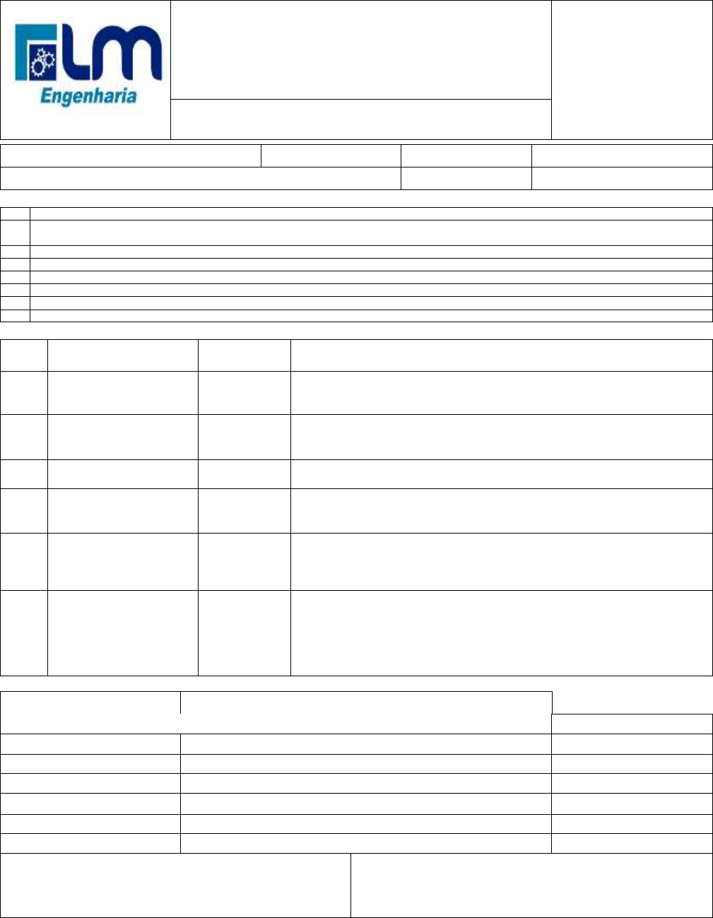 <p>Check-list de inspeção em</p><p>Cinto de Seg. e Talabarte</p><p>R – SMS – 62</p><p>REV: 00</p><p>OBRA: SISTEMA DE GESTÃO LM ENGENHARIA</p><p>Seg</p><p>TAG: DATA: MÊS: HORA:</p><p>EXECUTANTE: MAT: FUNÇÃO:</p><p>Instruções de Segurança ( Leia antes do uso)</p><p>1 Examine detalhadamente o equipamento antes do uso, seguindo o formulário de inspeção.</p><p>2</p><p>Certifique-se que o equipamento está completo, montado corretamente e se oferece um perfeito ajuste (nem muito apertado nem</p><p>muito largo).</p><p>3 Verifique se a argola dorsal está centralizada na parte superior das costas.</p><p>4 Selecione sempre um ponto de ancoragem que esteja acima da argola dorsal.</p><p>5 Durante o uso, proteja o cinto e talabarte contra os riscos da atividade (queimadura, cortes, ataques químicos, etc.).</p><p>6 Não faça nenhuma modificação no cinto de segurança e talabarte com relação as tiras e componentes metálicos.</p><p>7 Todo cinto e talabarte que tenha atuado numa queda, deve ser descartado e substituído.</p><p>8 Toda limpeza deverá ser realizada com água e sabão neutro e a secagem em local ventilado e à sombra.</p><p>1 – Padrão</p><p>Item</p><p>Ponto de</p><p>verificação</p><p>Referência Condição Desejada</p><p>1</p><p>Identificação do cinto</p><p>de segurança e</p><p>talabarte.</p><p>Manual do</p><p>Fabricante</p><p>- Possuir em caráter indelével e bem visível o nome do fabricante ou</p><p>importador e o nº do C.A. e seu TAG de identificação.</p><p>2</p><p>Tiras dos ombros,</p><p>peito, cintura, coxas e</p><p>tiras do talabarte.</p><p>Manual do</p><p>Fabricante</p><p>- Não apresentar dobras, desfiamentos, costuras abertas, manchas ou</p><p>marcas ( óleo, graxa, pintura ou queimadura), descoloração ou</p><p>deformação.</p><p>3</p><p>Argolas do cinto de</p><p>segurança e talabarte.</p><p>Manual do</p><p>Fabricante</p><p>- Estarem isentas de qualquer tipo de dano mecânico (corrosão, trinca,</p><p>fissuras, rupturas, etc.) e deformação estrutural.</p><p>4</p><p>Fivelas do cinto de</p><p>segurança e talabarte</p><p>Manual do</p><p>Fabricante</p><p>- Estarem isentas de qualquer tipo de dano mecânico (corrosão, trinca,</p><p>fissuras, rupturas, etc.) e deformação estrutural.</p><p>- Não permitir a abertura acidental e/ou o deslizamento das tiras.</p><p>5 Mosquetões.</p><p>Manual do</p><p>Fabricante</p><p>- Possuir dupla trava de segurança com travamento automático por</p><p>pressão de mola.</p><p>- Estarem isentos de qualquer tipo de dano mecânico (corrosão, trinca,</p><p>fissuras, rupturas, etc.) e deformação estrutural.</p><p>6 Amortecedor de queda</p><p>Manual do</p><p>Fabricante</p><p>- Possuir em caráter indelével e bem visível o nome do fabricante ou</p><p>importador e o nº do C.A. e seu TAG de identificação.</p><p>- Não apresentar dobras, desfiamentos, costuras abertas, manchas ou</p><p>marcas ( óleo, graxa, pintura ou queimadura), descoloração ou</p><p>deformação.</p><p>- Revestimento plástico intacto e sem violação.</p><p>2 – Lista de Verificação - ( C – Conforme / NC – Não Conforme / NA – Não Aplicável )</p><p>Ponto de verificação Equipamentos – TAG’s</p><p>Legenda</p><p>1 Identificação do cinto de segurança e talabarte.</p><p>2 Tiras dos ombros, peito, cintura, coxas e tiras do talabarte.</p><p>3 Argolas do cinto de segurança e talabarte.</p><p>4 Fivelas do cinto de segurança e talabarte.</p><p>5 Mosquetões.</p><p>6 Amortecedor de queda.</p><p>Responsável pela Inspeção :</p><p>DATA:</p><p>Visto ( Técnico de Segurança) :</p><p>DATA:</p><p>OBS: Todas as alternativas NC - (Não Conforme) deverão ser relacionadas nos formulários de IPS (Inspeção</p><p>Planejada de Segurança).</p>