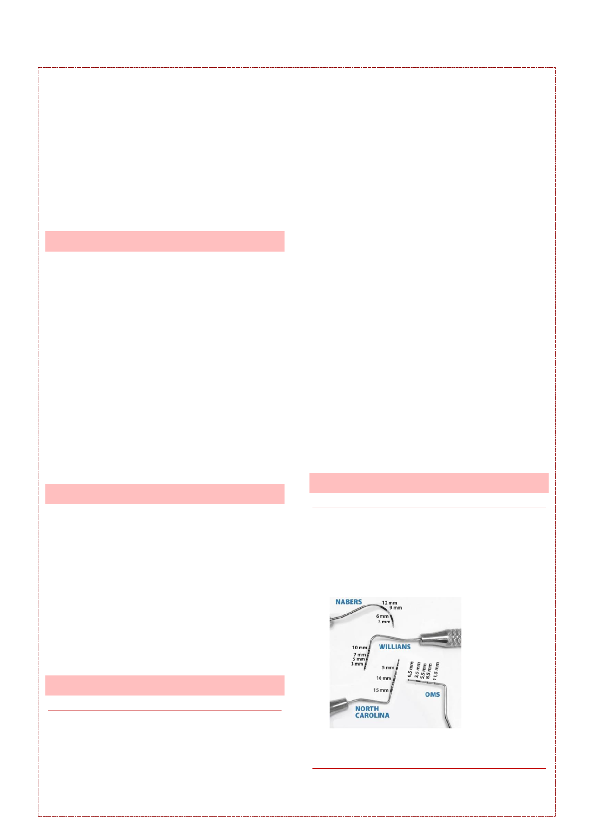 <p>Impresso por Kassia Andrezia Andrezia, E-mail kaandrezia@gmail.com para uso pessoal e privado. Este material pode ser protegido por</p><p>direitos autorais e não pode ser reproduzido ou repassado para terceiros. 05/06/2024, 17:49:28</p><p>ODONTOLOGIA UNICHRISTUS –</p><p>DEBORA SIMPLICIO</p><p>EXAMES CLÍNICOS:</p><p>Qual a importância de se realizar?</p><p>• Exames periodontais e odontograma:</p><p>verificar a situação atual de saúde</p><p>bucal</p><p>• Podem ser utilizadas para</p><p>identificação (arcada dentária possui</p><p>características que não são perdidas</p><p>após um acidente, por exemplo).</p><p>✓ Exame P iodontal Simplificado (PSR)er</p><p>✓ Índice de Sangramento Gengival (ISG)</p><p>✓ Índice de Placa bacteriana</p><p>✓ Odontograma</p><p>EXAMES CLÍNICOS:</p><p>1. Anamnese + exames físicos</p><p>2. ISG</p><p>3. PSR</p><p>4. Profilaxia</p><p>5. Odontograma</p><p>6. Exames complementares (quando</p><p>houver necessidade)</p><p>7. Organização de um plano de cuidado</p><p>EXAMES PERIODONTAIS:</p><p>OBJETIVOS:</p><p>• Diagnóstico de doenças do</p><p>periodonto de proteção (gengiva</p><p>marginal, gengiva inserida, gengiva</p><p>interdentária)</p><p>• Diagnóstico de doenças do</p><p>periodonto de sustentação (cemento,</p><p>osso alveolar, ligamento periodontal)</p><p>• Para o diagnóstico de gengivite</p><p>(processo inflamatório no periodonto</p><p>de proteção)</p><p>• Para o diagnóstico de periodontite</p><p>(doença inflamatória do periodonto</p><p>de sustentação)</p><p>• Avaliar a condição estética</p><p>• Considerar os exames para o</p><p>tratamento periodontal de forma</p><p>cirúrgica</p><p>SONDAGEM:</p><p>INSTRUMENTOS: SONDAS</p><p>• Sonda OMS</p><p>• Sonda Carolina do norte n º15</p><p>• Sonda Willians</p><p>• Sonda Nabers</p><p>SONDAGEM:</p><p>Exames clínicosExames clínicosExames clínicosExames clínicosExames clínicos</p><p>periodontais periodontais periodontais periodontais periodontais</p><p>Impresso por Kassia Andrezia Andrezia, E-mail kaandrezia@gmail.com para uso pessoal e privado. Este material pode ser protegido por</p><p>direitos autorais e não pode ser reproduzido ou repassado para terceiros. 05/06/2024, 17:49:28</p><p>ODONTOLOGIA UNICHRISTUS –</p><p>DEBORA SIMPLICIO</p><p>• A sonda deve ser posicionada ao</p><p>longo eixo do dente nas faces livres e</p><p>interproximal de dentes anteriores</p><p>• Sonda paralela ao longo eixo do dente</p><p>• Sonda levemente inclinada com o</p><p>apoio no ponto de contato em</p><p>direção ao col. Gengival –</p><p>interproximal de dentes posteriores</p><p>• Pontos de sondagem: mesial, medial e</p><p>distal do dente (vestibular e</p><p>palatina/lingual)</p><p>• O que pode verificar na sondagem/</p><p>✓ → Sulco gengival: 2 a 3 mm sulco</p><p>normal</p><p>✓ Se há presença de sangramento</p><p>marginal</p><p>✓ Se há presença de bolsa</p><p>periodontal (se tiver perda de</p><p>tecido de sustentação maior que</p><p>3mm); bolsa verdadeira ou falsa</p><p>bolsa (geralmente em 3º molar)</p><p>✓ Recessão gengival</p><p>✓ Lesão de furca: grau I < 3mm – bom;</p><p>Grau II ≥ 3mm – duvidoso; grau III</p><p>(quando a sonda atravessa para o</p><p>outro lado) - ruim</p><p>O QUE PODE INFLUENCIAR NA</p><p>SONDAGEM:</p><p>• Espessura da sonda</p><p>• Posição da sonda (inclinação apenas</p><p>perto na papila col, em dentes</p><p>posteriores)</p><p>• Anatomia dental</p><p>• Pressão aplicada (25g)</p><p>• Mobilidade</p><p>• Grau de mobilidade:</p><p>• Indicativo para decidir se faz</p><p>exodontia ou raspagem</p><p>• Instrumental: pressão digital + cabo</p><p>rígido do espelho clinico ou outro</p><p>instrumento rígido metálico</p><p>• É indicado posicionar os instrumentos</p><p>em face opostas e aplicar força</p><p>controlado. Observar se há</p><p>movimentação dos dentes.</p><p>• Metodologia: Classificação de Miller</p><p>1950:</p><p>• Grau 0: mobilidade “fisiológica” – entre</p><p>0.1 a 0.2 mm na direção horizontal do</p><p>alvéolo.</p><p>• Grau 1 aumento da mobilidade do :</p><p>dente, no máximo 1mm na ireção</p><p>horizontal < 1 mm vestíbulo-lingual</p><p>(pouca mobilidade)</p><p>• Grau 2: aumento da mobilidade do</p><p>dente > 1mm na direção horizontal -</p><p>vestíbulo-lingual (muita mobilidade)</p><p>• Grau 3 grave mobilidade na direção :</p><p>horizontal e/ou vertical , interferindo na</p><p>função do dente mobilidade ocluso-</p><p>apical ocorre a intrusão do dente– .</p><p>• Envolvimento da Furca</p><p>• Sonda Nabers</p><p>• Sondagem na região de furca dos</p><p>dentes</p><p>• Metodologia: classificação de</p><p>posteriores</p><p>• Grau I: sonda penetra menos que</p><p>3mm da largura (Prognóstico bom)</p><p>• Grau II: sonda penetra mais que 3mm</p><p>da largura (Prognóstico duvidoso)</p><p>• Grau III: sonda ultrapassa raízes até o</p><p>outro lado (Prognóstico ruim).</p><p>Impresso por Kassia Andrezia Andrezia, E-mail kaandrezia@gmail.com para uso pessoal e privado. Este material pode ser protegido por</p><p>direitos autorais e não pode ser reproduzido ou repassado para terceiros. 05/06/2024, 17:49:28</p><p>ODONTOLOGIA UNICHRISTUS –</p><p>DEBORA SIMPLICIO</p><p>ISG: INDICE DE SANGRAMENTO</p><p>GENGIVAL:</p><p>• Diagnostico de gengivite</p><p>• Inflamação gengival, sangramento,</p><p>• Não pode ter estimulo na gengiva</p><p>antes</p><p>• Introduzir a sonda da OMS no sulco</p><p>gengival (a ponta esférica da sonda</p><p>→0,5mm)</p><p>• Friccionar a sonda por toda a margem</p><p>gengival (V,L,M,D)</p><p>• Anotar pontos sangrantes</p><p>• Instrumental: sonda milimetrada da</p><p>OMS</p><p>• Metodologia: sondagem marginal</p><p>% de superfícies sangrantes</p><p>Introduzir a sonda da OMS no sulco</p><p>gengival (a ponta esférica da sonda</p><p>→0,5mm)</p><p>Friccionar a sonda por toda a margem</p><p>gengival (V/P
