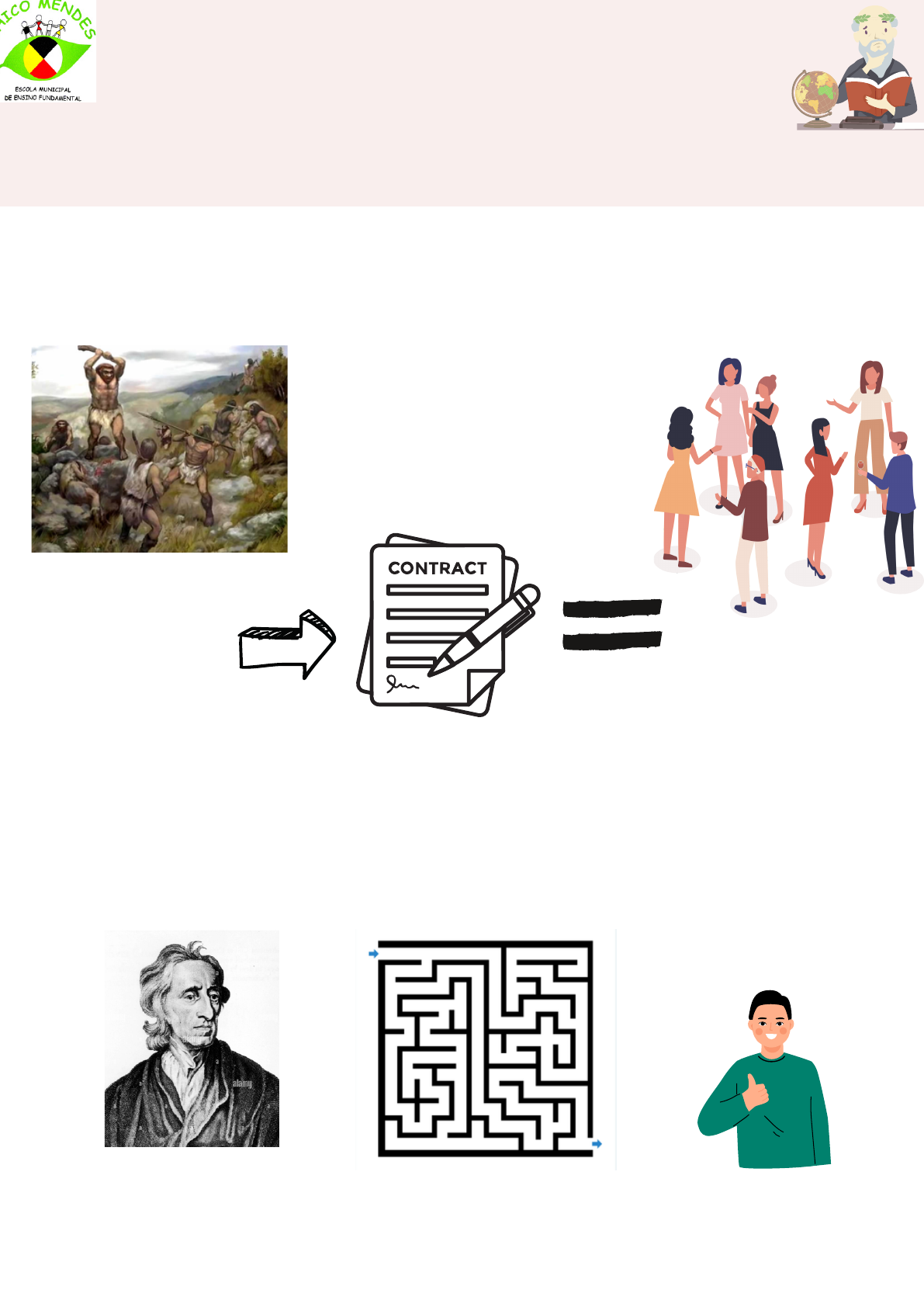 <p>ESCOLA MUNICIPAL DE ENSINO FUNDAMENTAL CHICO MENDES</p><p>ALUNO: _______________ TURMA: ________</p><p>FILOSOFIA</p><p>Prof. Rhaylla</p><p>o contrato socialo contrato socialo contrato social</p><p>ESTADO DE</p><p>NATUREZA SOCIEDADE</p><p>John Locke</p><p>“O HOMEM É</p><p>BOM”</p><p>“O HOMEM É</p><p>BOM”</p><p>os contratualistas:os contratualistas:os contratualistas:</p><p>Jean-Jacques</p><p>Rousseau</p><p>Thomas</p><p>Hobbes</p><p>“O HOMEM É</p><p>MAU”</p><p>“O HOMEM É</p><p>BOM”</p><p>os contratualistas:os contratualistas:os contratualistas:</p><p>JUNTE AS SÍLADAS: ELAS TEM ‘SOM” DE QUE? 1.</p><p>CON TRA TO</p>