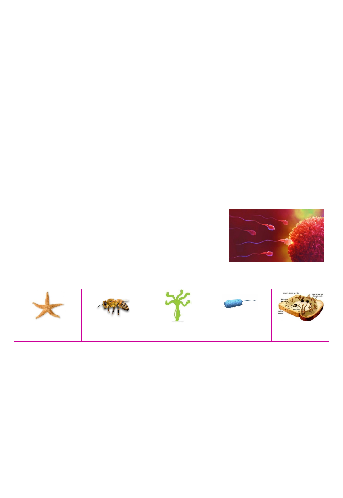<p>Exercícios de revisão – Tipos de reprodução e reprodução assexuada</p><p>1) Enumere as vantagens e as desvantagens das duas formas de reprodução, sexuada e assexuada.</p><p>2) (FUVEST -SP) A reprodução sexuada, do ponto de vista evolutivo, é mais importante do que a reprodução assexuada porque:</p><p>a) assegura a perpetuação da espécie.</p><p>b) promove maior variabilidade genética.</p><p>c) permite produzir maior número de descendentes.</p><p>d) ocorre somente nos animais e vegetais pluricelulares.</p><p>3) Escolha a alternativa correta em relação às formas de reprodução assexuada e sexuada.</p><p>a) A reprodução assexuada forma indivíduos mais bem adaptados que seu progenitor.</p><p>b) A reprodução assexuada é relativamente lenta em relação à reprodução sexuada.</p><p>c) A reprodução sexuada é a forma pela qual ocorre mais rapidamente aumento da população.</p><p>d) A reprodução sexuada permite que haja maior variabilidade na população de uma espécie.</p><p>4) A reprodução dos seres vivos pode ser dividida em assexuada e sexuada, sendo que elas se diferenciam porque, na reprodução sexuada:</p><p>a) há maior variabilidade genética.</p><p>b) ocorre menor gasto de energia.</p><p>c) os descendentes são idênticos.</p><p>d) são gerados mais descendentes.</p><p>5) O tipo de reprodução apresentado na imagem abaixo é importante para a evolução das espécies, porque:</p><p>a) gera descendentes com alta variabilidade genética.</p><p>b) gera descendentes com características idênticas.</p><p>c) gera descendentes em um curto espaço de tempo.</p><p>d) gera descendentes sem troca de material genético.</p><p>Fonte: https://materprime.com.br/tudo-sobre-a-fecundacao/</p><p>6) Indique o tipo de reprodução assexuada dos organismos apresentados abaixo.</p><p>Estrela-do-mar</p><p>Abelha</p><p>Hidra</p><p>Bactéria</p><p>Bolor de pão</p><p>7) A reprodução é a capacidade de um ser vivo de produzir descendentes, ou seja, de propagar a sua espécie. Por muito tempo, acreditou-se que micro-organismos eram incapazes de se reproduzir, entretanto, hoje se sabe que até mesmo bactérias apresentam reprodução. Nesses organismos, geralmente, observa-se a divisão de uma célula em duas, em um tipo de reprodução conhecido como:</p><p>a) Bipartição</p><p>b) brotamento</p><p>c) esporulação</p><p>d) Fragmentação</p><p>8) As hidras apresentam uma forma peculiar de reprodução assexuada. Nesses organismos, forma-se uma massa de células dividindo-se por mitose, gerando uma pequena hidra que se separa do organismo parental e inicia a vida livre. Esse processo é conhecido como:</p><p>a) Bipartição</p><p>b) partenogênese</p><p>c) brotamento</p><p>d) propagação vegetativa</p><p>9) As planárias são pequenos platelmintos que se destacam pela sua grande capacidade de regeneração. Se cortamos uma planária ao meio, dividindo-a em duas partes, ela é capaz de dar origem a dois indivíduos. Esse tipo de reprodução assexuada é conhecido como:</p><p>a) brotamento</p><p>b) fragmentação</p><p>c) esporulação</p><p>d) bipartição</p><p>10) Os escorpiões amarelos (Tityus serrulatus) são animais que só possuem fêmeas em sua população. Como se pode explicar esse fenômeno e quais as consequências em termos de variabilidade para essa espécie?</p><p>11) Leia o trecho abaixo.</p><p>“Assim sendo, cada vez que, espontaneamente ou acidentalmente, um dos braços das estrela-do-mar for cortado, este braço irá desenvolver-se, originando um novo ser.”</p><p>Disponível em: https://www.portalsaofrancisco.com.br/biologia/estrela-do-mar</p><p>O tipo de reprodução descrito no trecho é denominado de:</p><p>a) esporulação</p><p>b) fragmentação</p><p>c) partenogênese</p><p>d) bipartição</p><p>12) Considere os seguintes processos reprodutivos.</p><p>I – Uma planária fragmenta-se em três pedaços, originando três novas planarias.</p><p>II – Uma população de microcrustáceos é formada somente por fêmeas que põem ovos dos quais se desenvolvem novas fêmeas.</p><p>III – Um rato macho acasala-se com uma fêmea, produzindo seis filhotes.</p><p>Pode-se afirmar que a variabilidade genética é uma das características dos descendentes resultantes somente de:</p><p>a) I.</p><p>b) II.</p><p>c) III.</p><p>d) II e III.</p><p>13) Analise as afirmativas sobre os tipos de reprodução.</p><p>I – O brotamento é um processo de reprodução assexuada, que tem como fator positivo o fato de necessitar de um gasto energético menor, uma vez que dispensa o acasalamento.</p><p>II – A partenogênese, processo em que o óvulo não fecundado desenvolve um novo indivíduo, é um mecanismo que pode ser encontrado em invertebrados, como abelhas, e algumas espécies de vertebrados, como os peixes.</p><p>III – A reprodução sexuada, processo que requer a união de gametas, é, de todos os mecanismos reprodutivos, aquele que promove a menor variabilidade genética.</p><p>Está correto apenas o que se afirma em:</p><p>a) I.</p><p>b) II.</p><p>c) III.</p><p>d) I e II.</p><p>14) Considere as afirmativas sobre reprodução assexuada.</p><p>I – Não ocorre em animais.</p><p>II – Pode ser desfavorável para a espécie no caso de grandes mudanças ambientais, por exemplo.</p><p>III – É um processo demorado e com grande gasto de energia.</p><p>IV – Os descendentes gerados são clones dos progenitores.</p><p>Está CORRETO o que se afirma em:</p><p>a) I e II</p><p>b) I e III.</p><p>c) II e III.</p><p>d) II e IV.</p><p>15) As fêmeas de algumas espécies, como a do tubarão zebra e a do dragão-de-komodo, quando se encontram em regiões isoladas ou um local sem machos, conseguem se reproduzir assexuadamente.</p><p>O tipo de reprodução assexuada realizada pelas fêmeas dessas espécies é:</p><p>a) Fragmentação.</p><p>b) Esporulação.</p><p>c) Partenogênese.</p><p>d) Fecundação.</p><p>16) Relacione cada mecanismo de reprodução assexuada ao