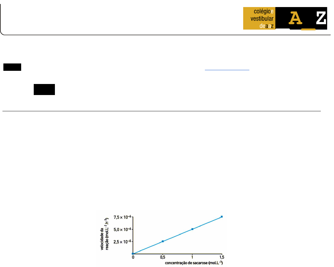 <p>ensino médio e pré-vestibular</p><p>A questão abaixo foi resolvida em vídeo pela Equipe de Ensino do Colégio e Curso Pré-Vestibular _A_Z, líder em aprovação nas carreiras</p><p>mais concorridas, com ensino de alta qualidade e atendimento personalizado. Acesse o site deaaz.com.br/videos-deaaz e procure pelo</p><p>CÓDIGO abaixo. Conheça outros materiais de preparação para o vestibular e o ENEM em http://deaaz.com.br.</p><p>questão com resolução em vídeo/Química</p><p>CÓDIGO: Q0368</p><p>QUESTÃO</p><p>O açúcar invertido é composto por uma mistura de glicose e frutose; já o açúcar comum é constituído somente por sacarose.</p><p>A solução aquosa do açúcar invertido mantém-se no estado líquido sob condições ambientes, pois possui menor temperatura de</p><p>congelamento do que a do açúcar comum.</p><p>Observe a equação química que representa a produção do açúcar invertido:</p><p>H</p><p>12 22 11 2 6 12 6 6 12 6</p><p>sacarose glucose frutose</p><p>C H O H O C H O C H O</p><p>+</p><p>+ → +</p><p>Em um processo de fabricação de açúcar invertido, a velocidade da reação foi medida em função da concentração de sacarose, uma vez</p><p>que a concentração de água não afeta essa velocidade.</p><p>O gráfico abaixo indica os resultados obtidos:</p><p>Determine a constante cinética dessa reação. Em seguida, aponte o fator responsável pela menor temperatura de congelamento da</p><p>solução aquosa de açúcar invertido.</p>