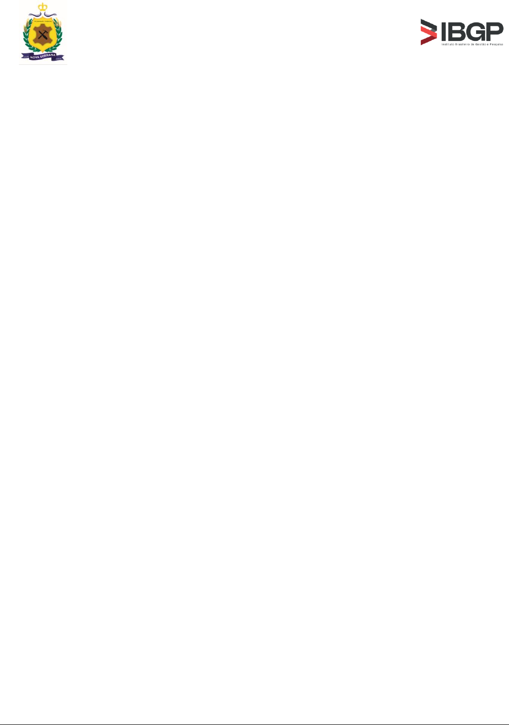 <p>CONCURSO PÚBLICO DO MUNICÍPIO DE NOVA</p><p>SERRANA/MG - EDITAL Nº 01/2024</p><p>Página 1 de 47</p><p>CONCURSO PÚBLICO PARA PROVIMENTO DE CARGOS/ESPECIALIDADES PÚBLICOS(AS)</p><p>PARA O QUADRO DE PESSOAL DO MUNICÍPIO DE NOVA SERRANA/MG</p><p>EDITAL Nº 01/2024</p><p>O Município de Nova Serrana/MG e o Instituto Brasileiro de Gestão e Pesquisa - IBGP, tornam</p><p>público e estabelecem normas para a realização de Concurso Público, destinado a selecionar candidatos</p><p>para o provimento de cargos/especialidades para Quadro Permanente de Pessoal e cadastro de reserva do</p><p>Município de Nova Serrana/MG, que reger-se-ão pelas disposições contidas na Constituição da</p><p>República Federativa do Brasil; na Lei Federal nº 11.350, de 5 de outubro de 2006, que “Regulamenta</p><p>o § 5º do art. 198 da Constituição, dispõe sobre o aproveitamento de pessoal amparado pelo parágrafo</p><p>único do art. 2º da Emenda Constitucional no 51, de 14 de fevereiro de 2006, e dá outras providências.”;</p><p>na Portaria Federal nº 2.436, de 21 de setembro de 2017, do Ministério da Saúde, que “Dispõe sobre a</p><p>revisão das diretrizes para a organização da Atenção Básica, no âmbito do Sistema Único de Saúde</p><p>(SUS).”; na Lei Federal nº 13.708, de 14 de agosto de 2018, que “Altera a Lei nº 11.350, de 5 de outubro</p><p>de 2006, para modificar normas que regulam o exercício profissional dos Agentes Comunitários de Saúde</p><p>e dos Agentes de Combates às Endemias.”; na Lei Federal nº 13.595, de 5 de janeiro de 2018, que “Altera</p><p>a Lei nº 11.350, de 5 de outubro de 2006, para dispor sobre a reformulação das atribuições, a jornada e</p><p>as condições de trabalho, o grau de formação profissional, os cursos de formação técnica e continuada e</p><p>a indenização de transporte dos profissionais Agentes Comunitários de Saúde e Agentes de Combate às</p><p>Endemias.”; na Lei Orgânica do Município de Nova Serrana/MG, de 21 de março de 1990; na Lei</p><p>Complementar Municipal nº 2.537, de 04 de maio de 2018, que “Institui a isenção de taxa de inscrição</p><p>nos concursos públicos municipais e a meia-entrada em locais públicos de cultura, esporte e lazer no</p><p>município de Nova Serrana para doadores regulares de sangue, bem como para doadores de órgão ou</p><p>medula óssea.”; na Lei Municipal nº 2.708, de 11 de outubro de 2019, que “Dispõe sobre a isenção de</p><p>taxas de inscrição concedida a mesários eleitorais em concursos públicos realizados pelo Poder Público</p><p>Municipal no âmbito de Nova Serrana.”; na Lei Complementar Municipal nº 15, de 19 de dezembro de</p><p>2019, que “Dispõe sobre a reestruturação do Plano de Cargos e Carreiras e Remuneração dos</p><p>Profissionais da Administração do Poder Executivo de Nova Serrana, estabelece normas gerais de</p><p>enquadramento, institui nova tabela de vencimentos e dá outras providências.”; na Lei Complementar</p><p>Municipal nº 16, de 19 de dezembro de 2019, que “Dispõe sobre a reestruturação do Plano de Cargos e</p><p>Carreiras e Remuneração dos Profissionais da Saúde do Poder Executivo de Nova Serrana, estabelece</p><p>normas gerais de enquadramento, institui nova tabela de vencimentos e dá outras providências.”; na Lei</p><p>Complementar Municipal nº 038, de 28 de fevereiro de 2023, que “Dispõe sobre a reestruturação do</p><p>Plano de Cargos e Carreiras e Remuneração dos Profissionais da Secretaria Municipal de</p><p>Desenvolvimento Social do Poder Executivo de Nova Serrana, estabelece normas gerais de</p><p>enquadramento, institui nova tabela de vencimentos e dá outras providências.”; na Lei Complementar</p><p>Municipal nº 47, de 30 de maio de 2023, que “Dispõe sobre a reestruturação do Plano de Cargos e</p><p>Carreiras e Remuneração dos Profissionais do Magistério Público Municipal de Nova Serrana, estabelece</p><p>normas gerais de enquadramento, institui nova tabela de vencimentos e dá outras providências.”; na Lei</p><p>Complementar Municipal nº 48, de 30 de maio de 2023, que “Dispõe sobre a reestruturação do Plano</p><p>de Cargos e Carreiras e Remuneração dos Profissionais de Apoio à Educação Pública Municipal de Nova</p><p>Serrana, estabelece normas gerais de enquadramento, institui nova tabela de vencimentos e dá outras</p><p>providências.”; e na Lei Municipal nº 52, de 21 de dezembro de 2023, que “Dispõe sobre o Estatuto dos</p><p>Servidores Públicos do Município de Nova Serrana, e dá outras providências.”; bem como alterações</p><p>posteriores e ainda nas legislações complementares e demais normas contidas neste Edital.</p><p>1. DAS DISPOSIÇÕES PRELIMINARES</p><p>1.1. O Concurso Público será regido por este Edital, por anexos, avisos, atos complementares e</p><p>eventuais retificações.</p><p>CONCURSO PÚBLICO DO MUNICÍPIO DE NOVA</p><p>SERRANA/MG - EDITAL Nº 01/2024</p><p>Página 2 de 47</p><p>1.2. O Concurso Público será realizado pelo Instituto Brasileiro de Gestão e Pesquisa (IBGP), em</p><p>todas as respectivas etapas, visando ao preenchimento das vagas dispostas no Anexo I, durante o</p><p>respectivo prazo de validade previsto no item 1.6. deste Edital.</p><p>1.3. A Comissão Especial para Organização, Acompanhamento e Fiscalização do Concurso Público do</p><p>Município de Nova Serrana/MG, instituída pelo Decreto Municipal no 079/2024, de 16 de julho</p><p>de 2024, e alterações posteriores, publicada no Quadro de Avisos da Prefeitura Municipal,</p><p>acompanhará toda a execução do certame.</p><p>1.4. O certame de que trata este Edital constará das seguintes etapas:</p><p>ETAPA DESCRIÇÃO CARGO/ESPECIALIDADE CRITÉRIO</p><p>1ª</p><p>Prova Objetiva de</p><p>Múltipla Escolha</p><p>Todos(as) os(as) cargos/especialidades do</p><p>Concurso Público.</p><p>Eliminatório e</p><p>Classificatório</p><p>2ª Prova de Títu